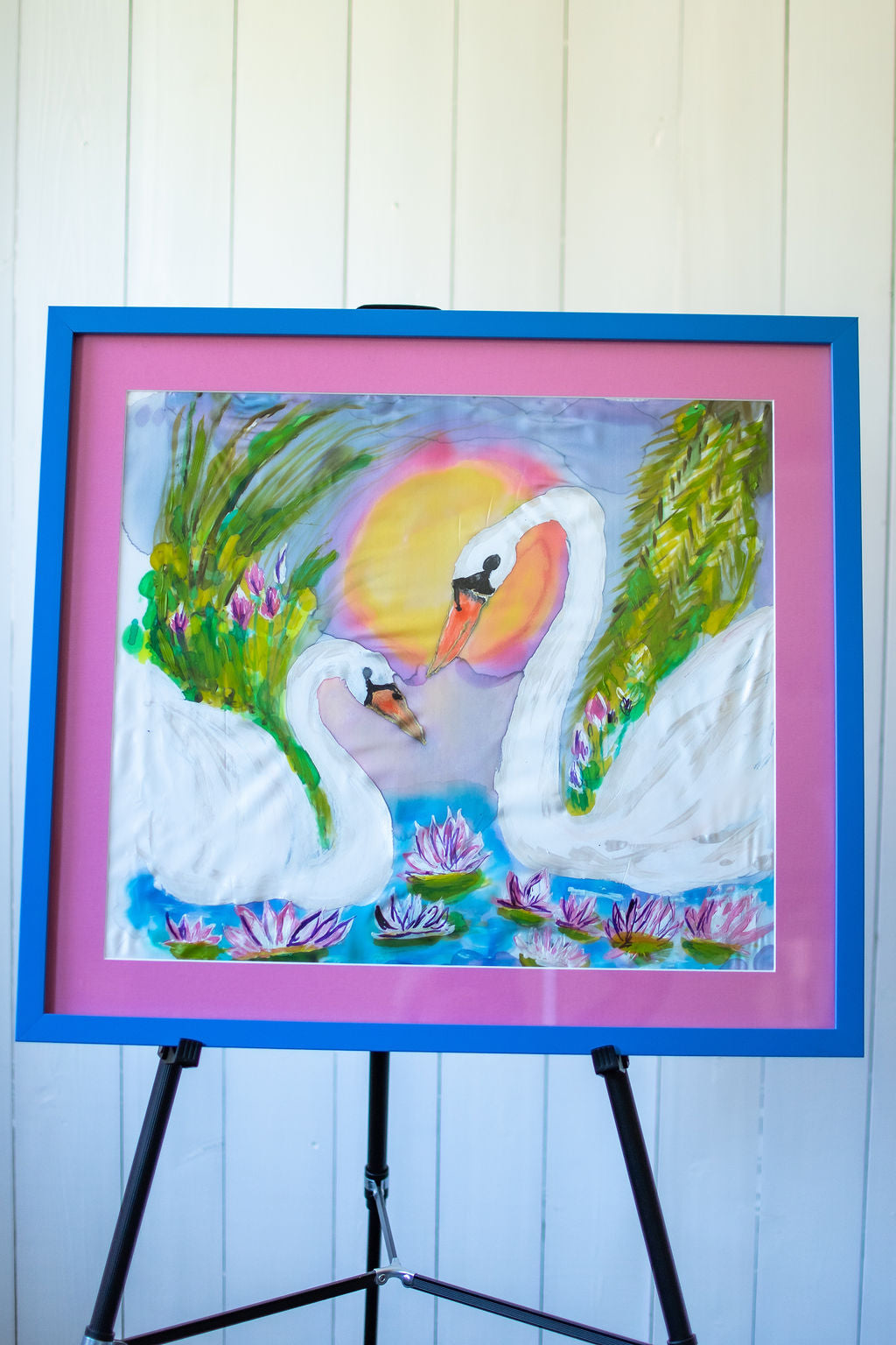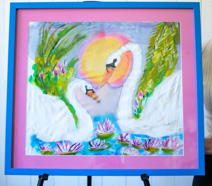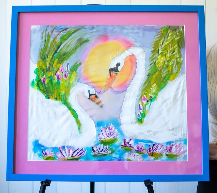 D-126 AN ORIGINAL SILK PAINTING by CYDNEY EVERLASTING LOVE : SWANS
