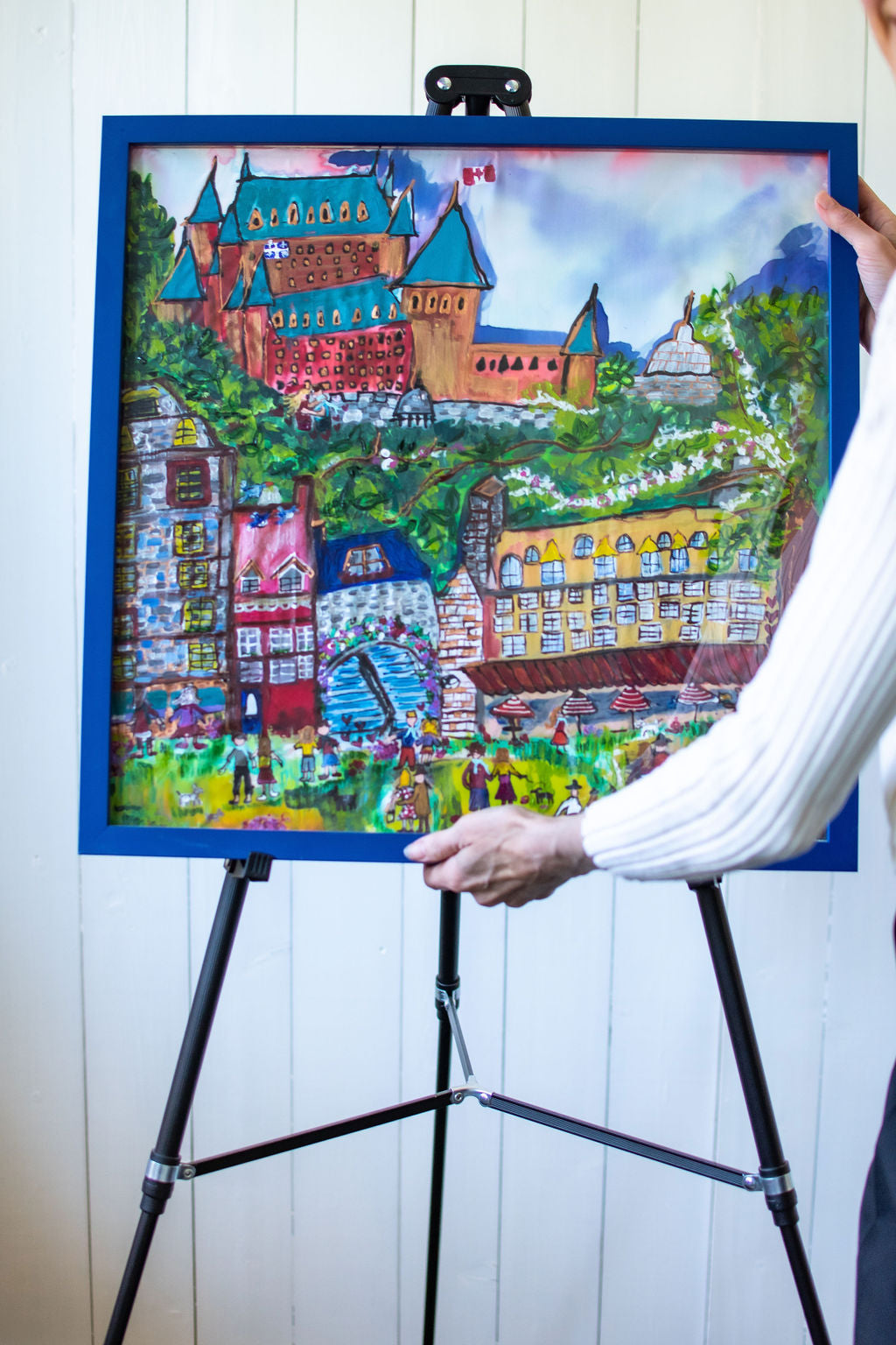 D-169   AN ORIGINAL SILK PAINTING by CYDNEY     A PAINTING FOR QUEBEC CITY: ENTER THE GATES OF LOVE