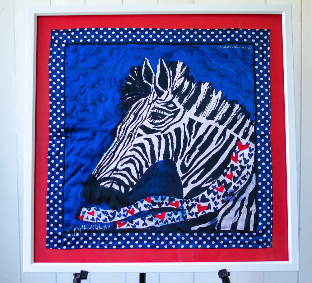 Original silk painting of    THE HEALING STRIPES OF THE ZEBRA.