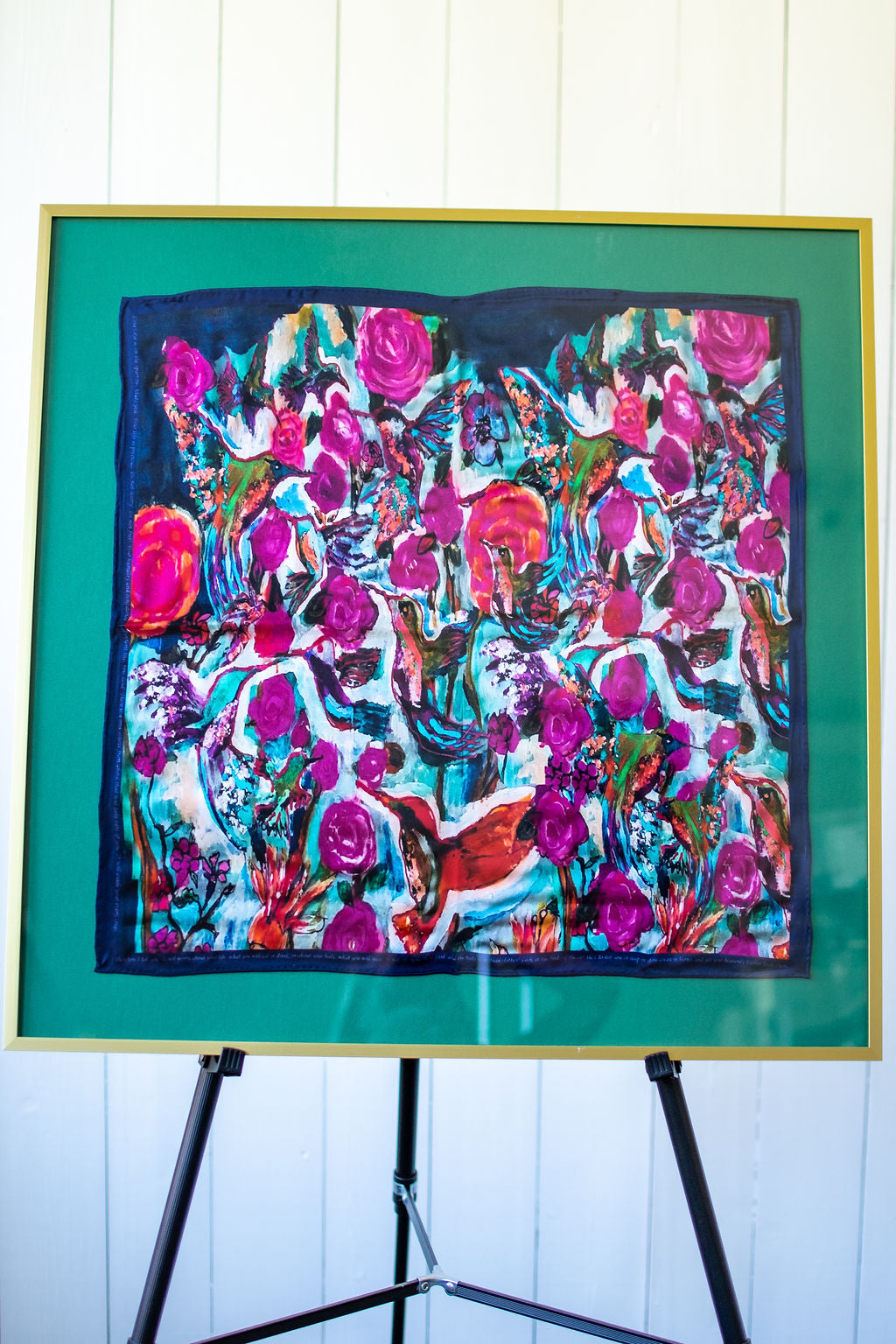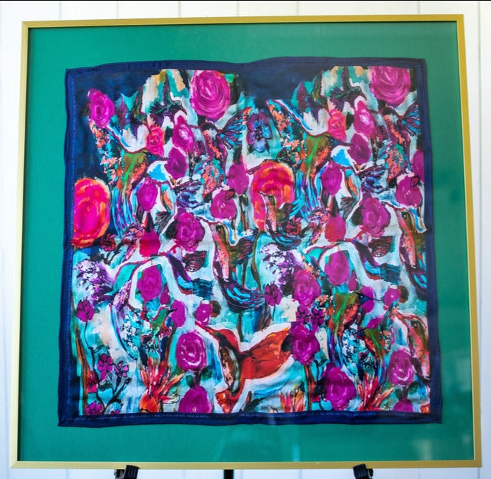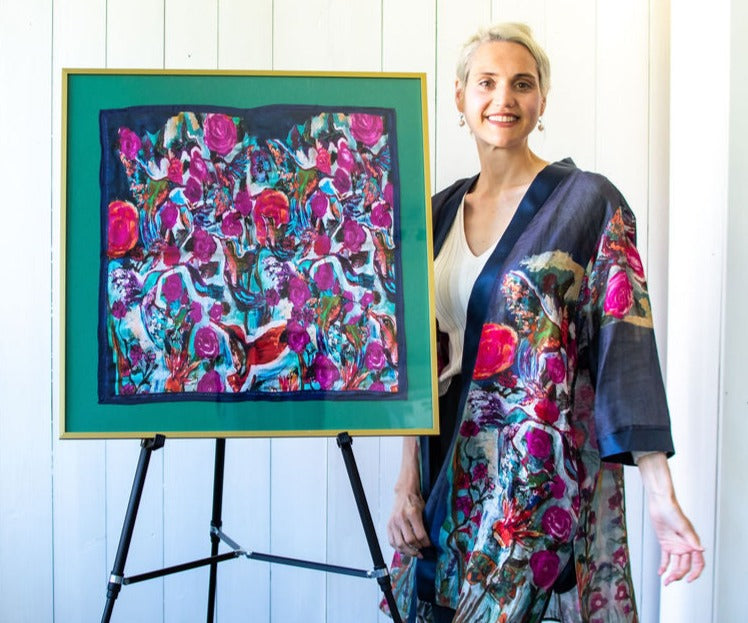 Created by Cydney and painted on silk.  The creative joy and humour of the artist radiates and celebrates with colour and imagination.