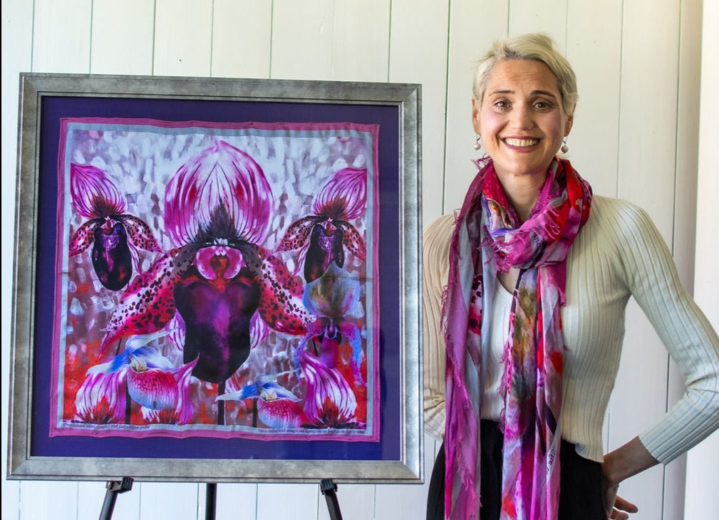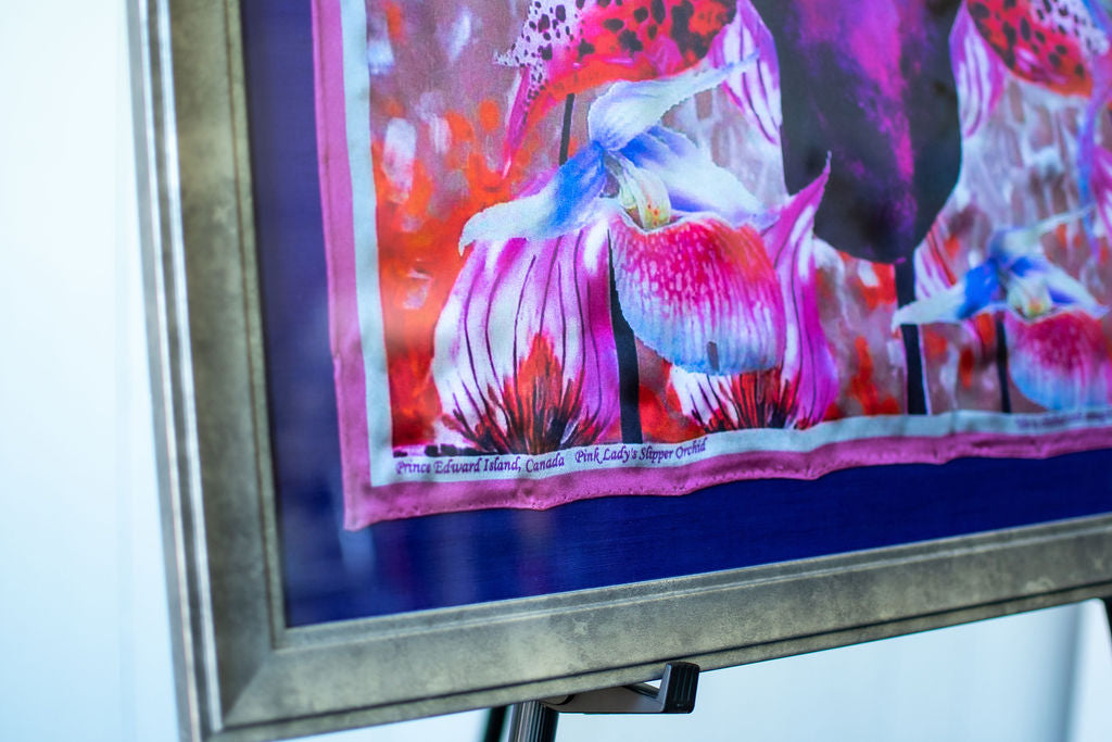 D-223 SILK PAINTING by CYDNEY - THE PINK LADYSLIPPER ORCHID - A TRUE FACHION WORSHIPPER