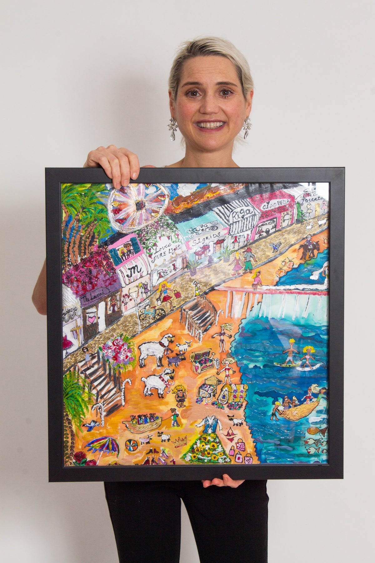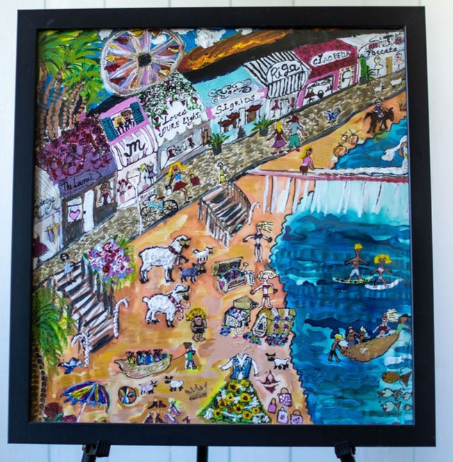 Original silk painting of THE RHYTHM OF THE BEACH.