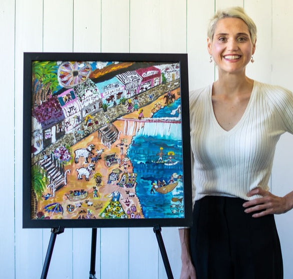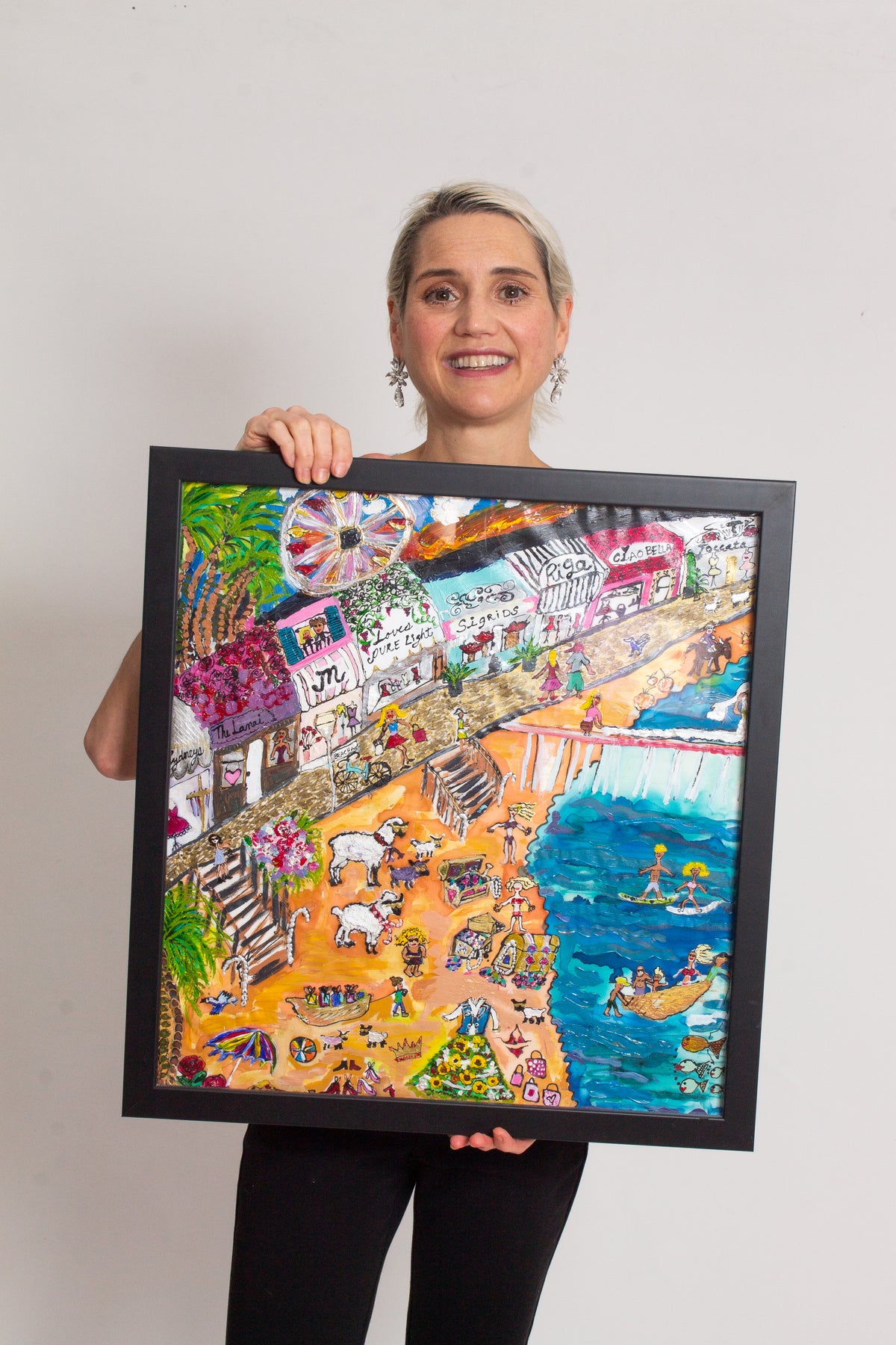 Created by Cydney and painted on silk.  The creative joy and humour of the artist radiates and celebrates with colour and imagination.
