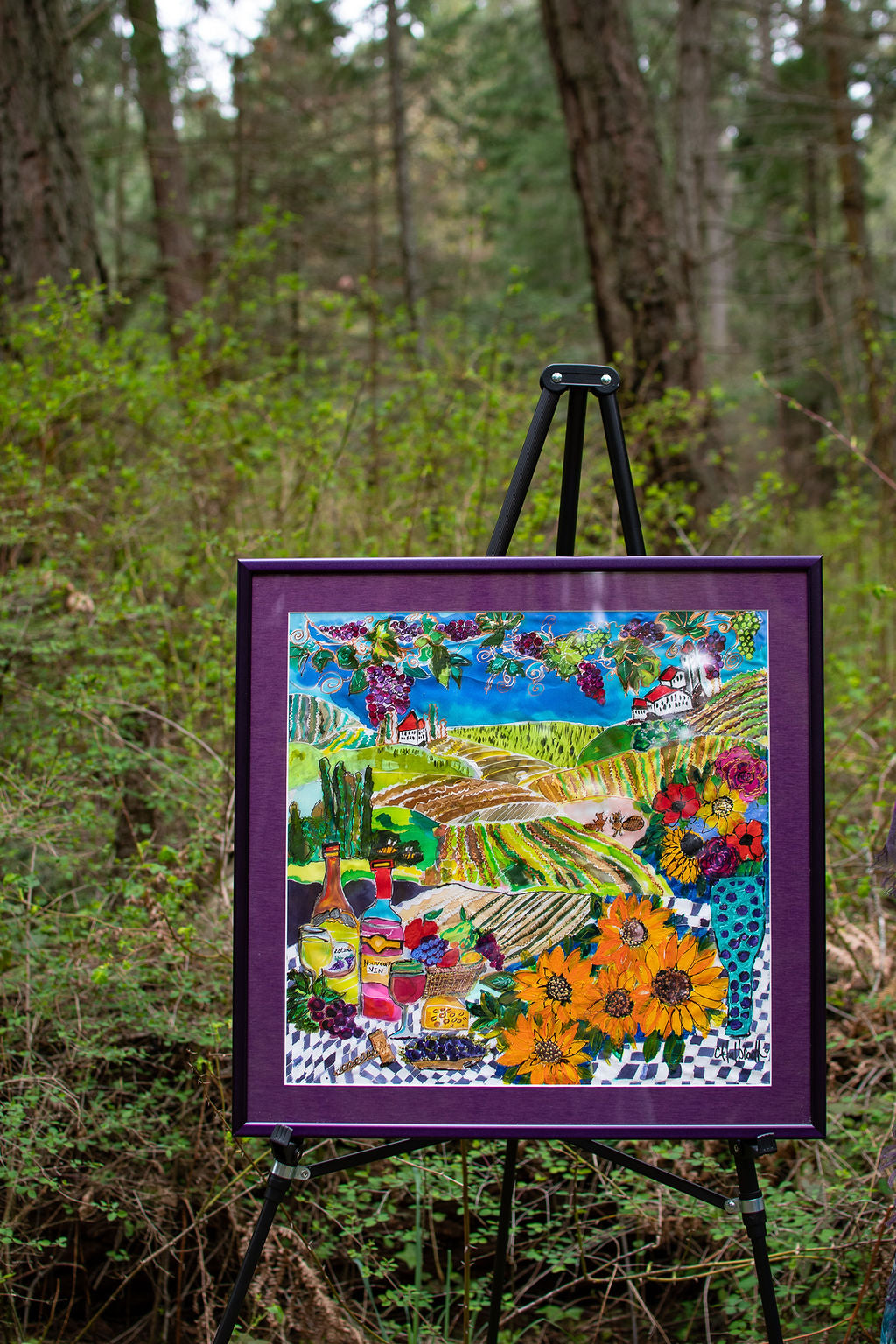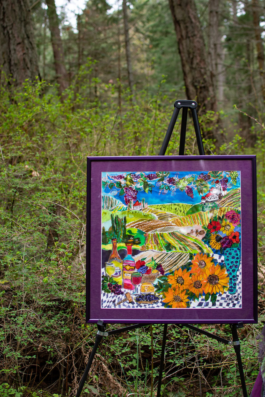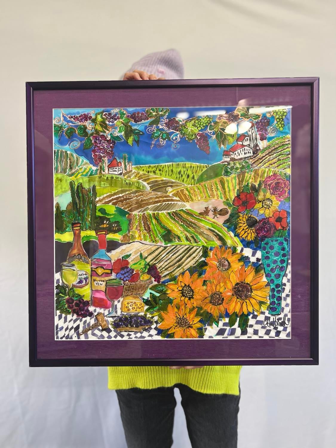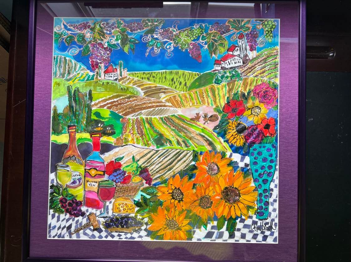 MY FATHERS VINEYARD- NEW WINE ORIGINAL SILK PAINTING BY CYDNEY