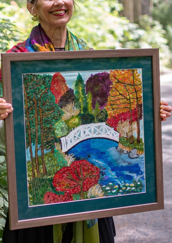 Created by Cydney and painted on silk.  The creative joy of the artist radiates and celebrates with colour and imagination.