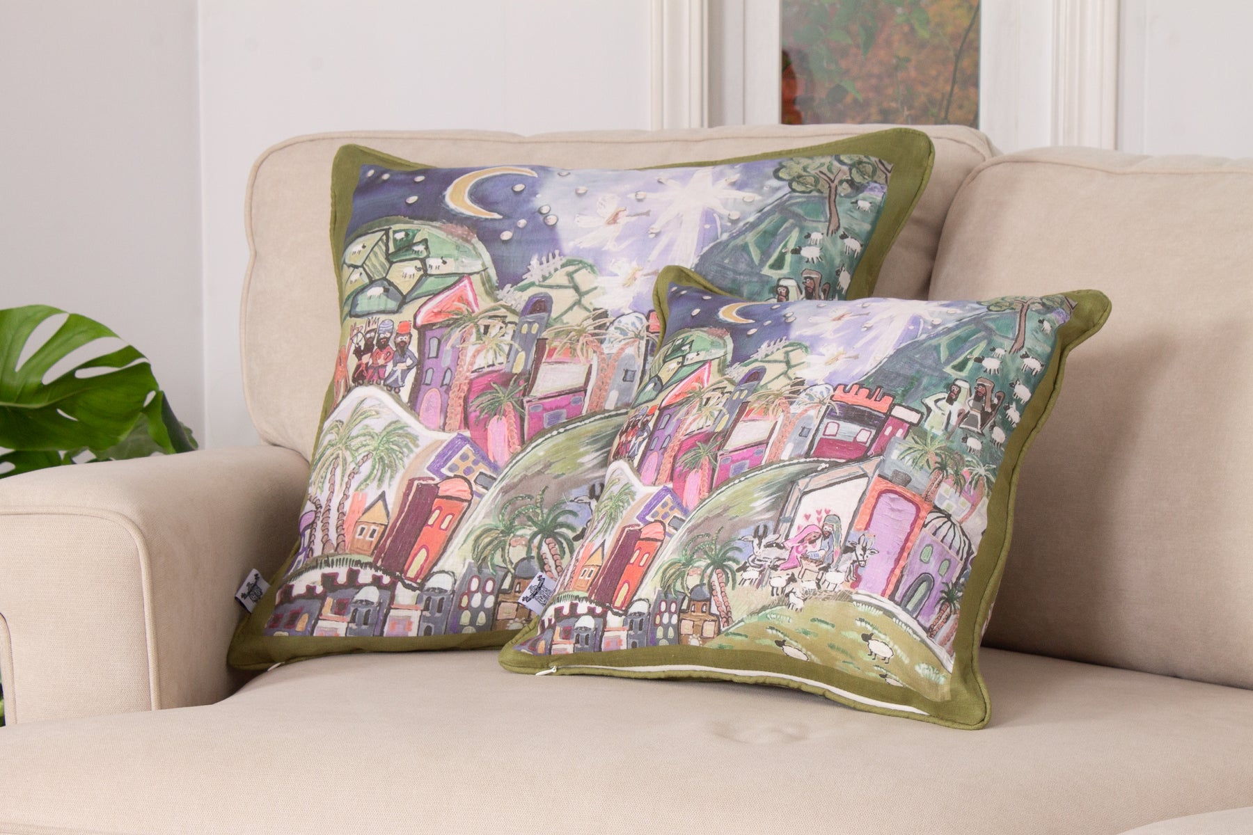 D-481 CATCH THE INEXPRESSIBLE JOY OF CHRISTMAS - Large Hand Painted Luxury Organic Linen Sham, 22" x 22"