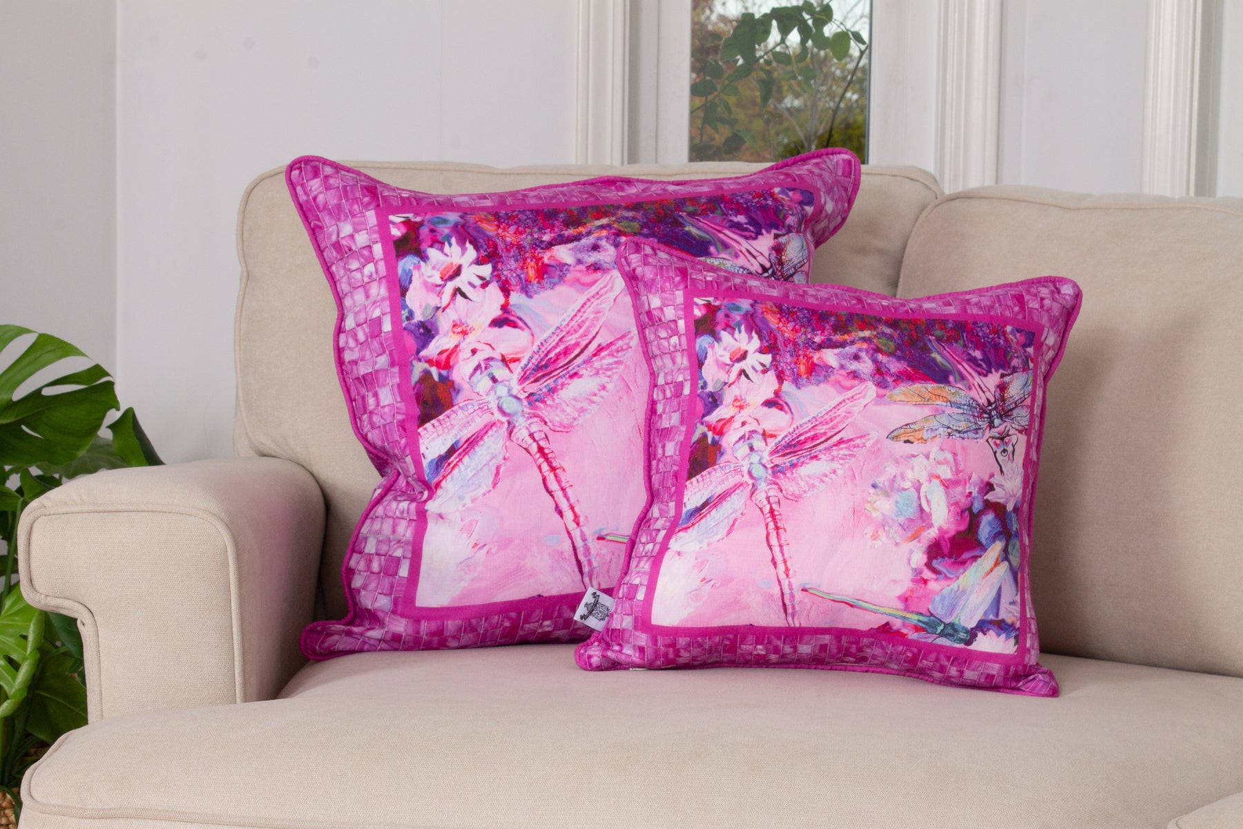 D-587 BE HEALED - PINK DRAGONFLY - Large Luxury Organic Linen Sham, 22" x 22"