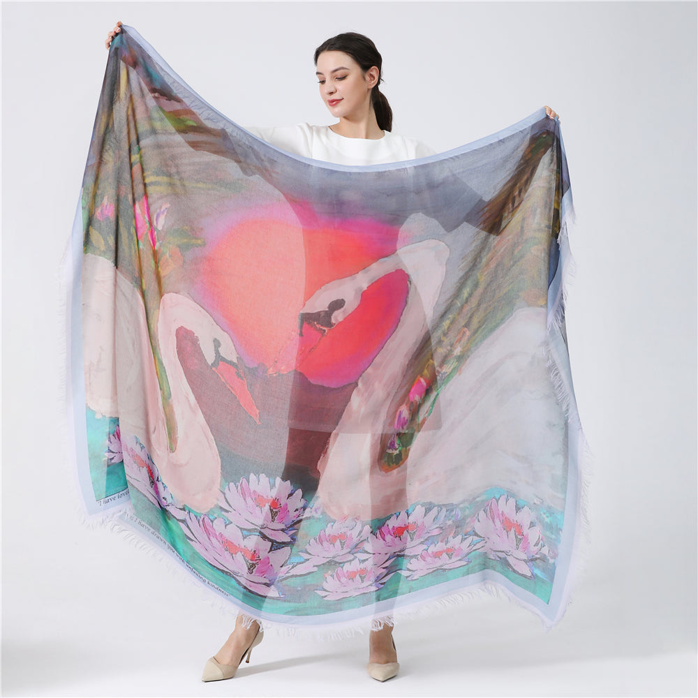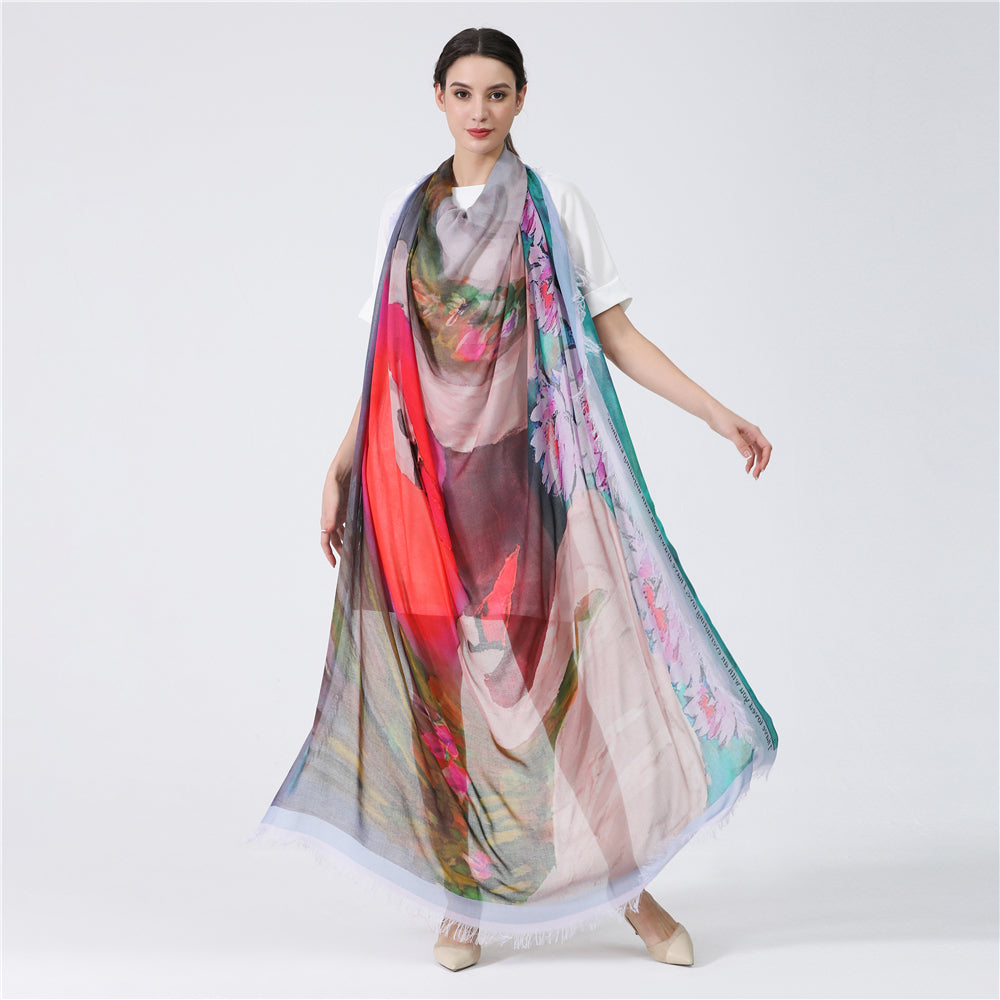 Luxury hand painted forever silk shawl:
