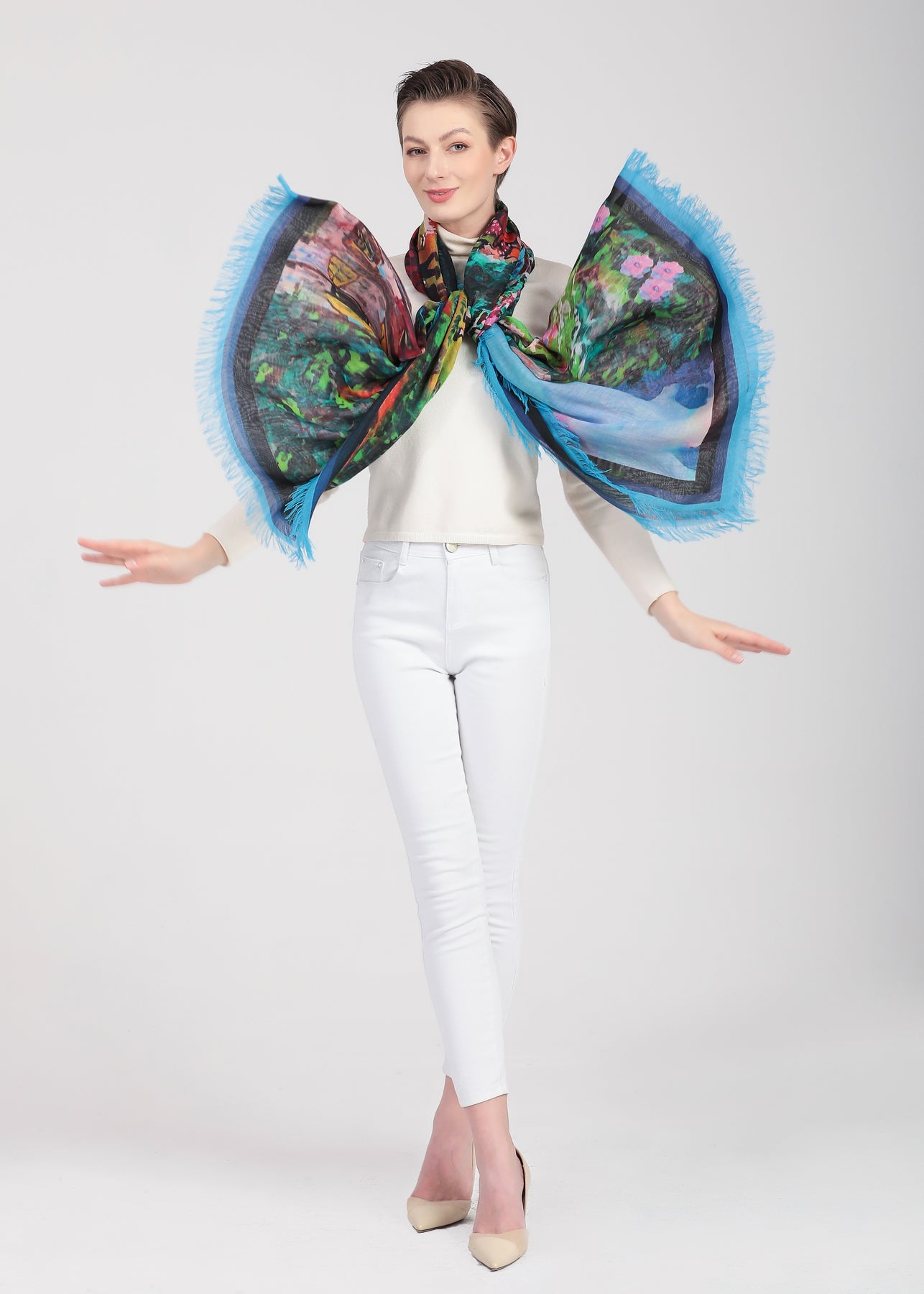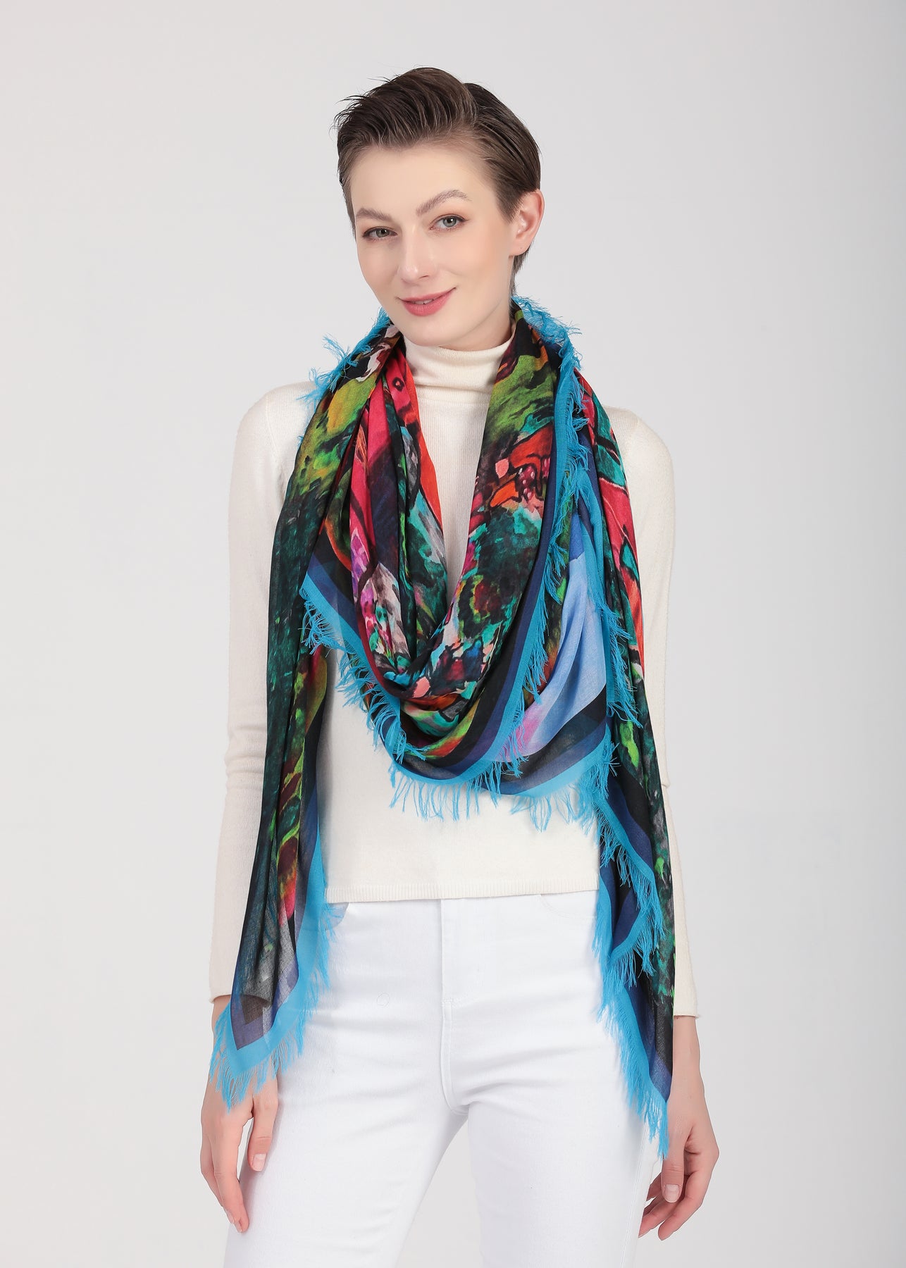 Luxury hand painted forever silk shawl.