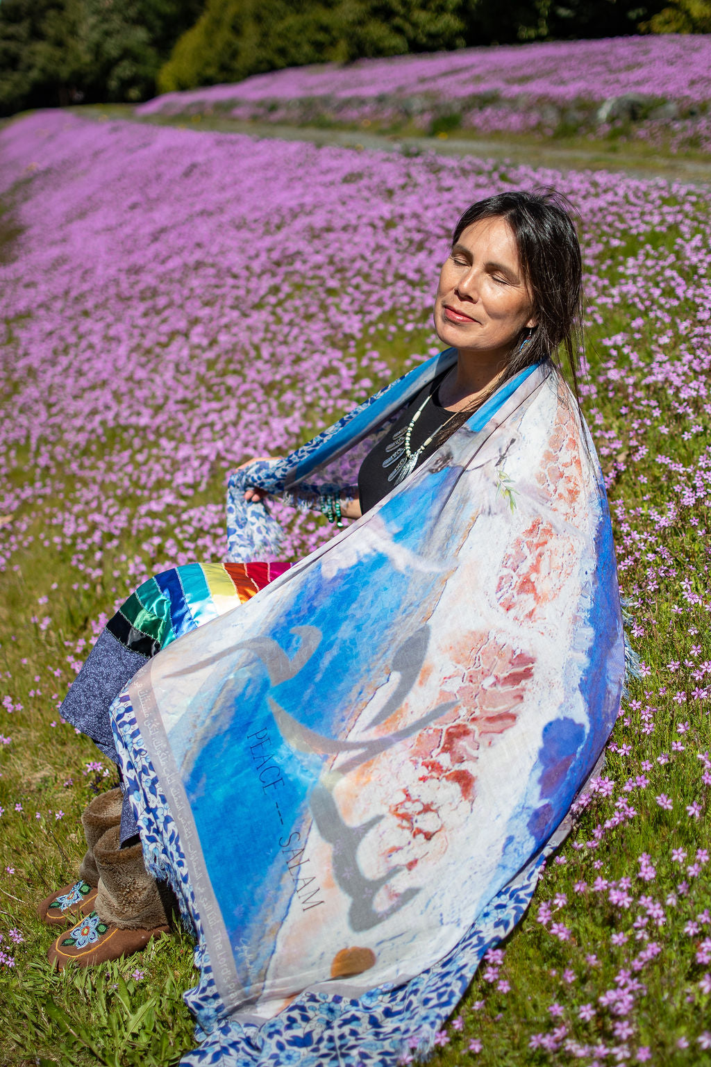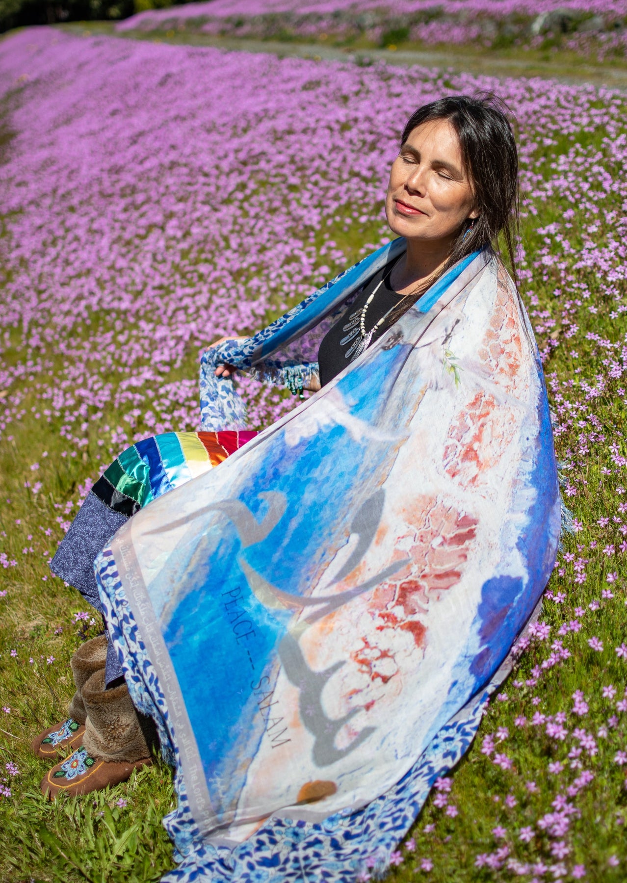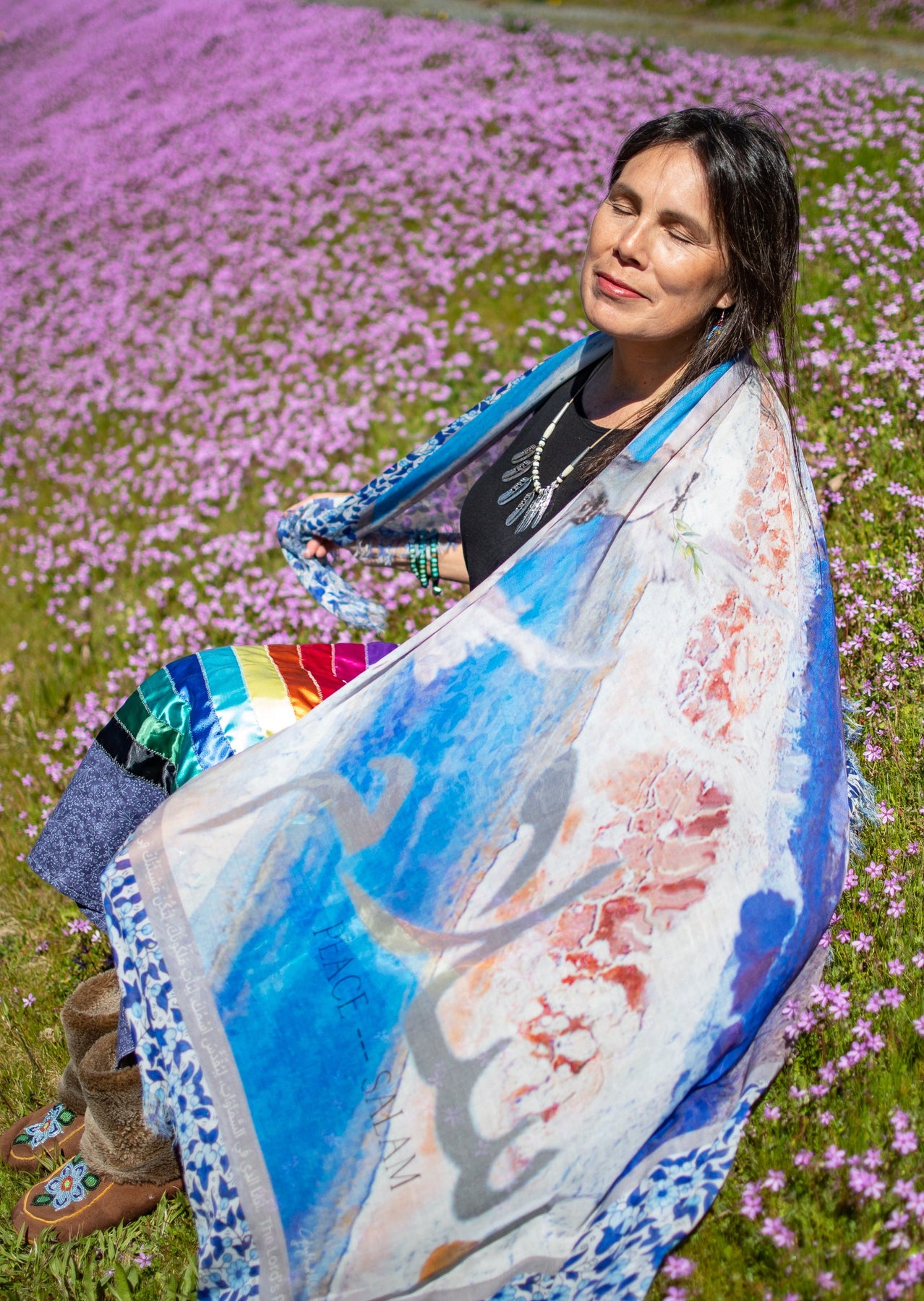 Salam means Peace. Peace be upon you as you are embraced in true love from the inmost place. It is written in your heart. May the peace that surpasses all understanding envelope your every concern. God hears your every prayer and need. Every thing that troubles you, also troubles his heart . His heart is for peace every moment of your life. Be still and know that He is God. This scarf has been designed for our brothers and sisters in the Middle Eastern part of the world. The Lords prayer in Arabic is inscribed on this textile, also for you to read in English and Arabic on this card. We continue to stand in the gap and pray for our brothers and sisters in the Middle East who need our prayers. The Lord’s Prayer in Arabic