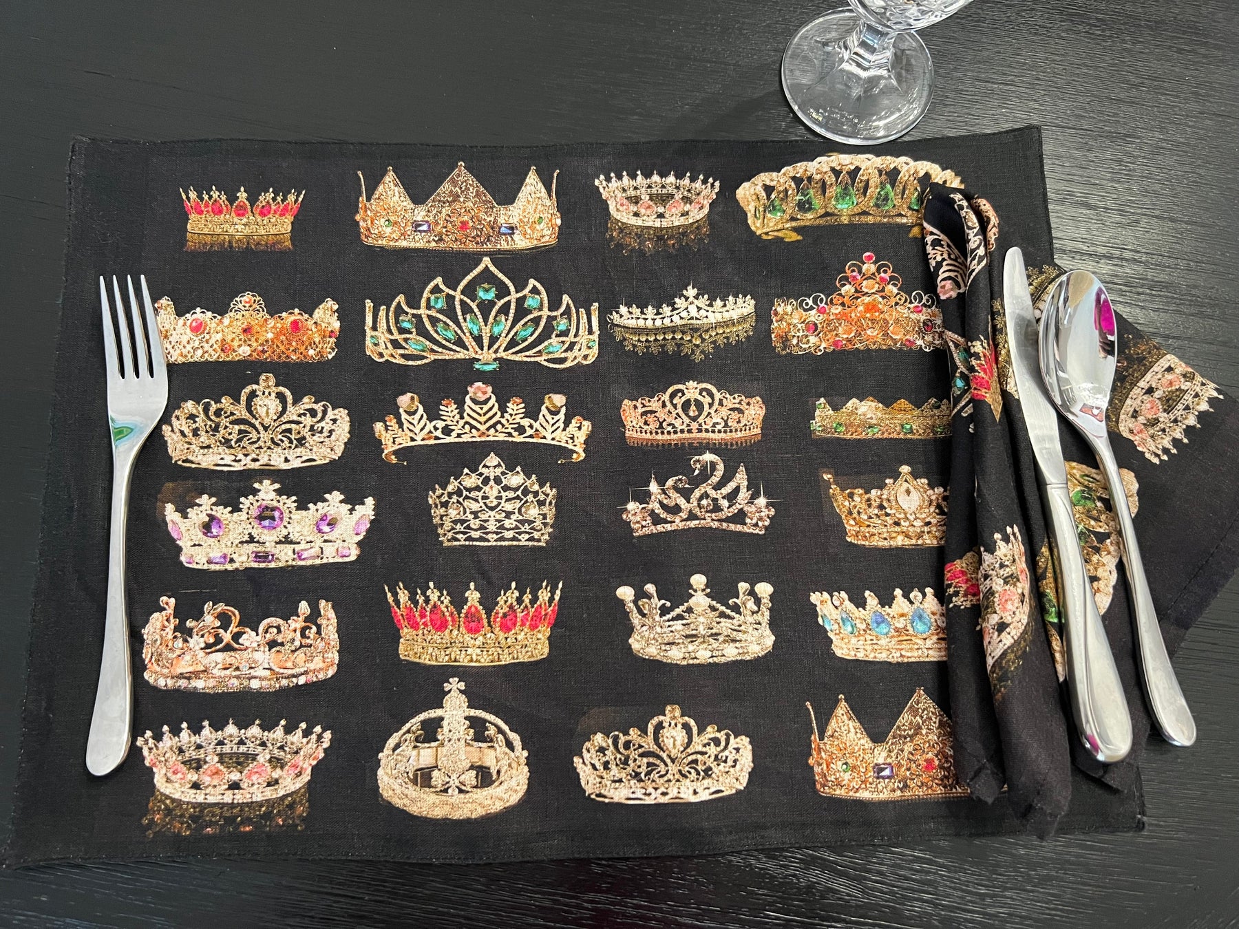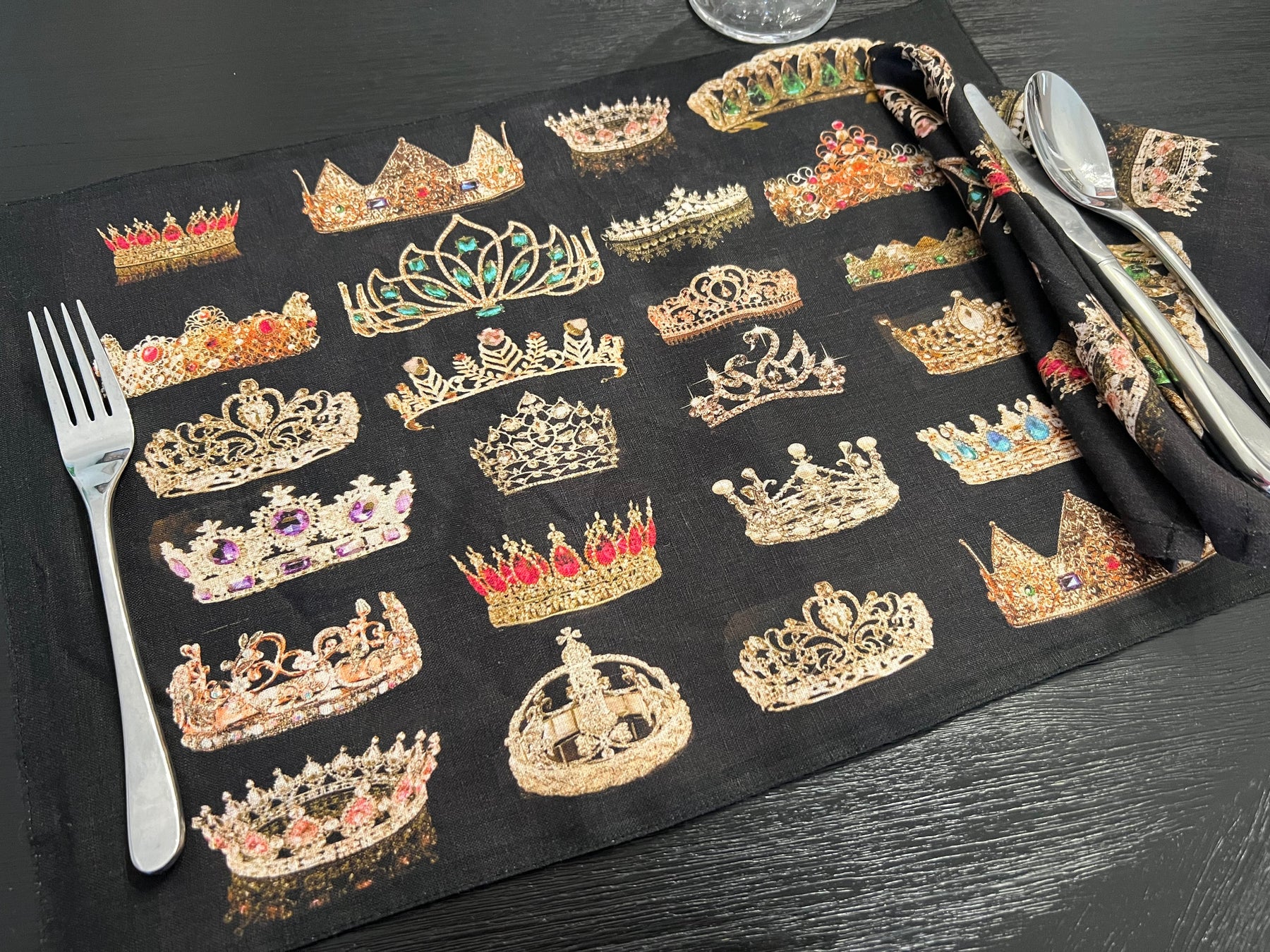D-705LINEN CROWNED PLACESETTING* SETS OF 4* DOUBLE SIDED *ORGANIC LINEN - Placemat 12" x 18"