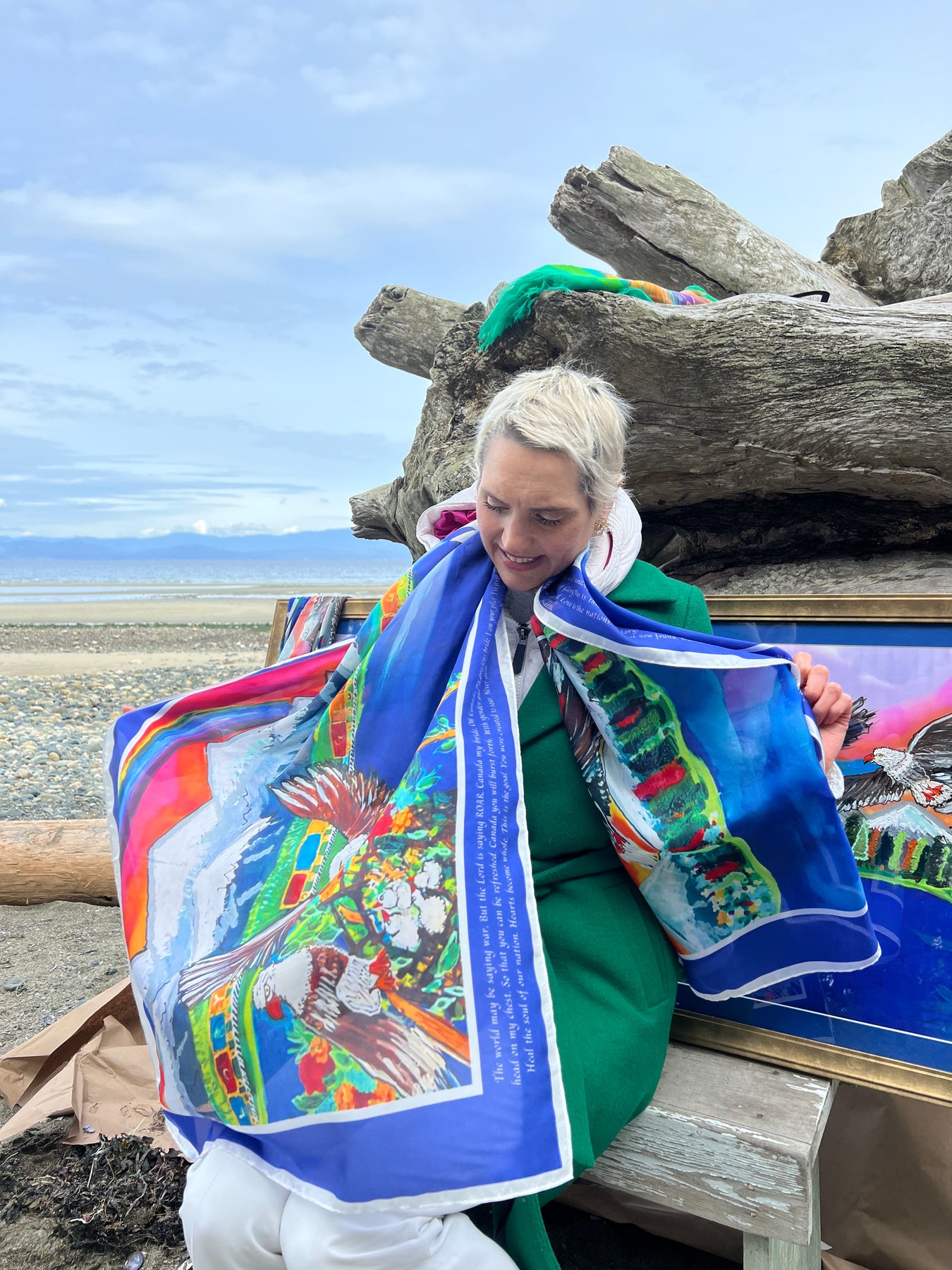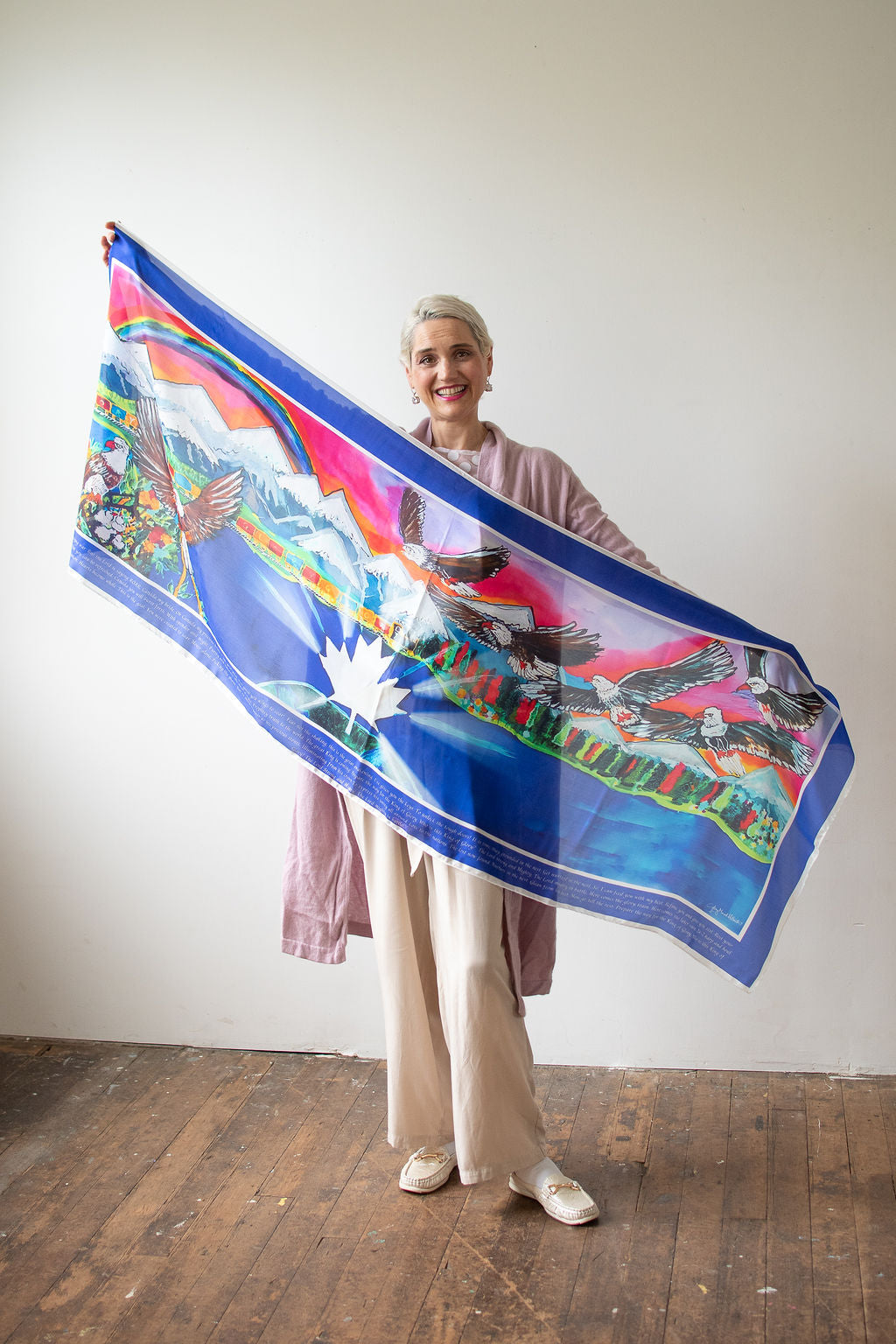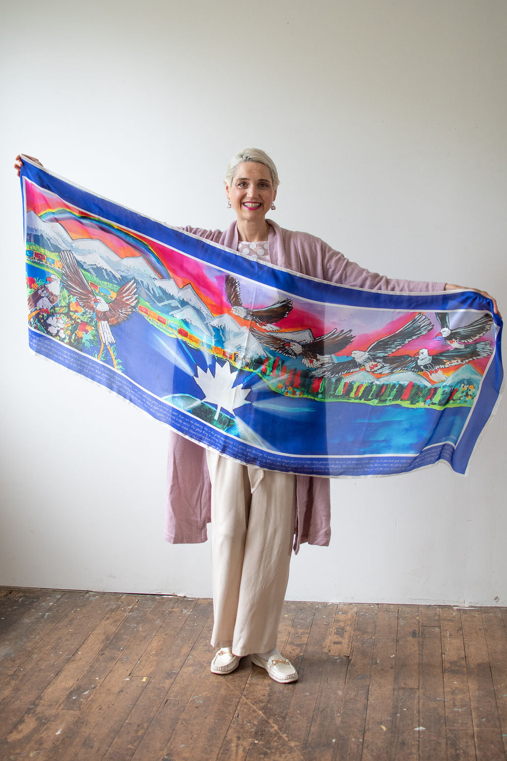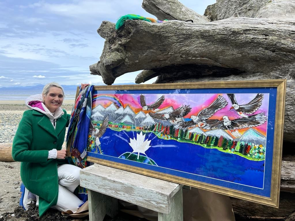 A hand-painted original silk painting! Colors are vivid and actual, this piece will be hung on a wall, or worn around your shoulders. A prophetic mantle to wear this season!