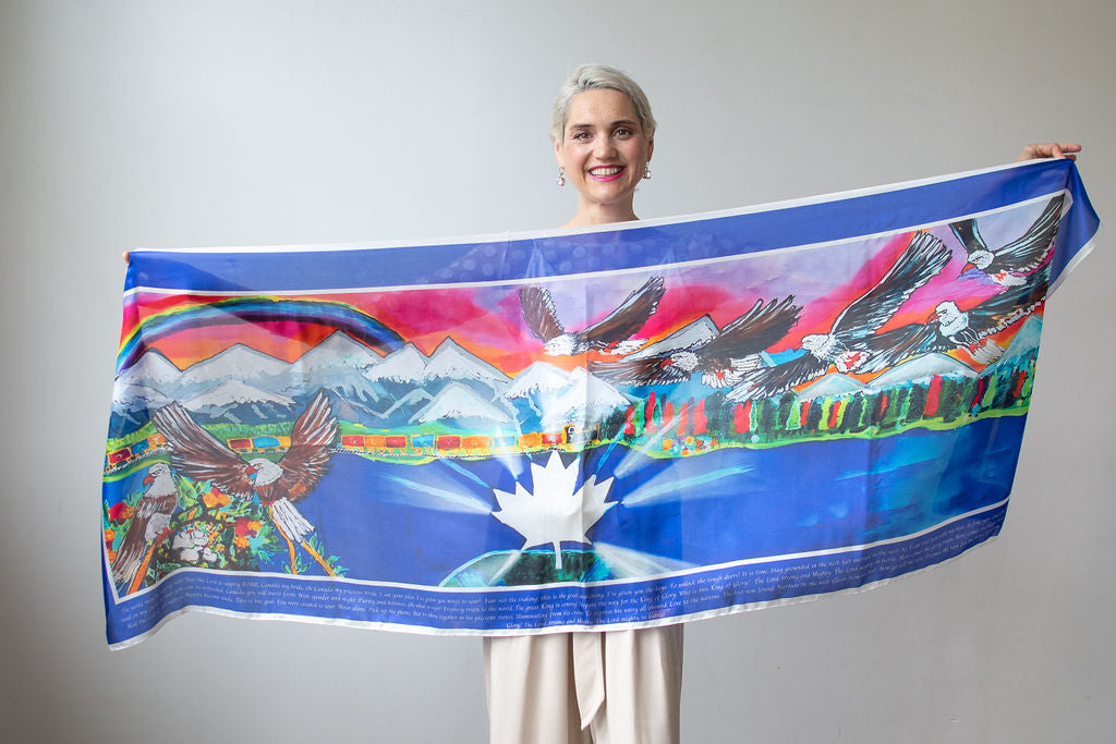 "The world may be saying war, But the Lord is saying ROAR. Canada my bride, Oh Canada my precious bride, I am your pilot. I’ve given you wings to soar! Fear not the shaking, this is the great awakening. I’ve given you the keys. To unlock the tough doors! It is time. Stay grounded in the nest. Get nurture in the nest. So, I can feed you with my best. Refine you and give you zest. Rest your head on my chest. So that you can be refreshed. Canada you will burst forth. With spender and might. Purity and holiness. Oh what a sight! Prophesy truth to the world. The great King is coming! Prepare the way for the King of Glory. Who is this King of Glory? The Lord Strong and Mighty, The Lord mighty in battle. Here comes the glory train. Here comes the later rain. 24-7 harp and bowl Heal the soul of our nation. Hearts become whole. This is the goal. You were created to soar. Never alone. Pick up the phone. But to shine together as his precious stones. Illuminating from his crown. To express his unity all around. Love to the nations. The lost now found. Nurture in the nest. Glean from his best. Now go tell the rest. Prepare the way for the King of Glory. Who is this King of Glory? The Lord Strong and Mighty, The Lord mighty in battle!" -- Cydney