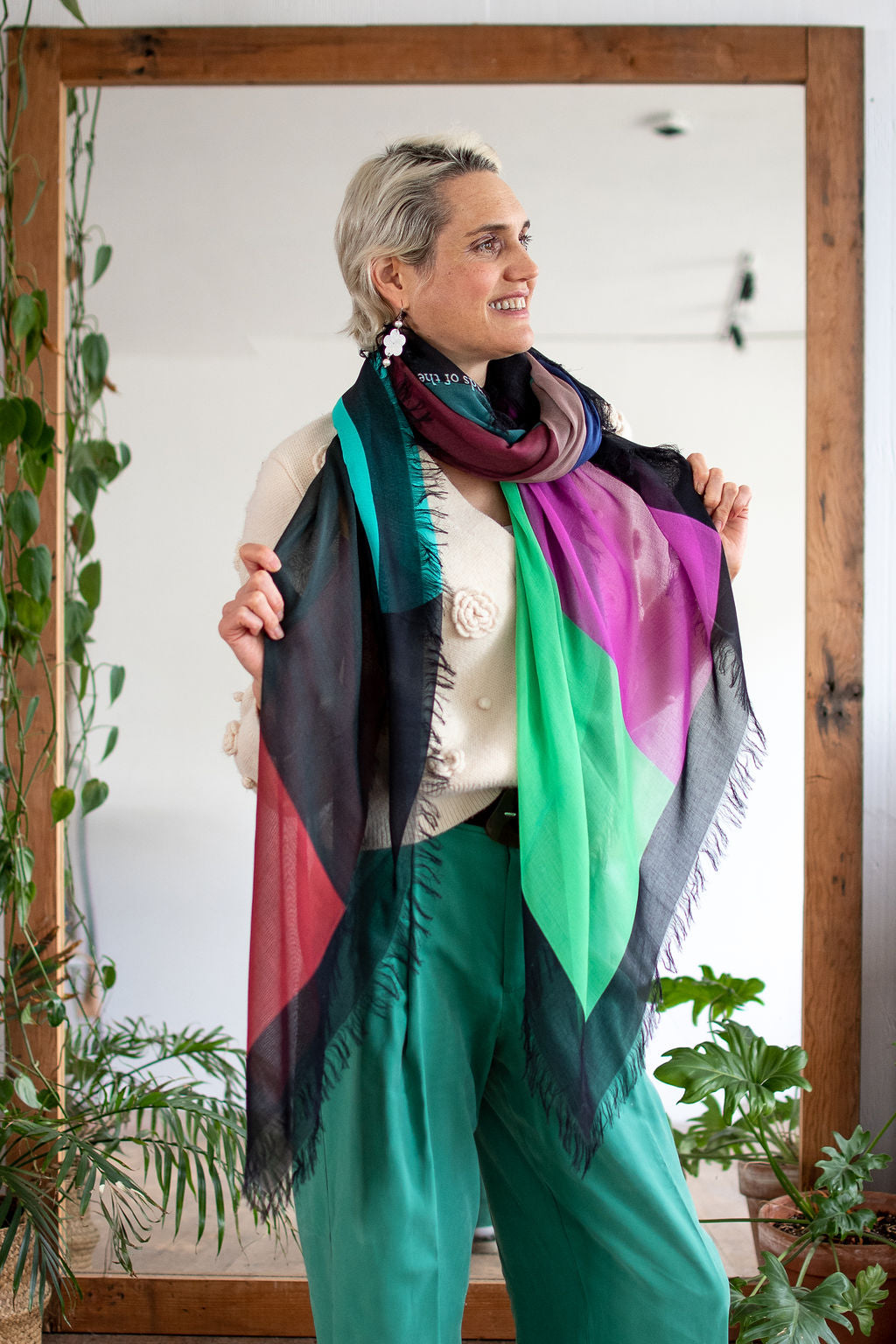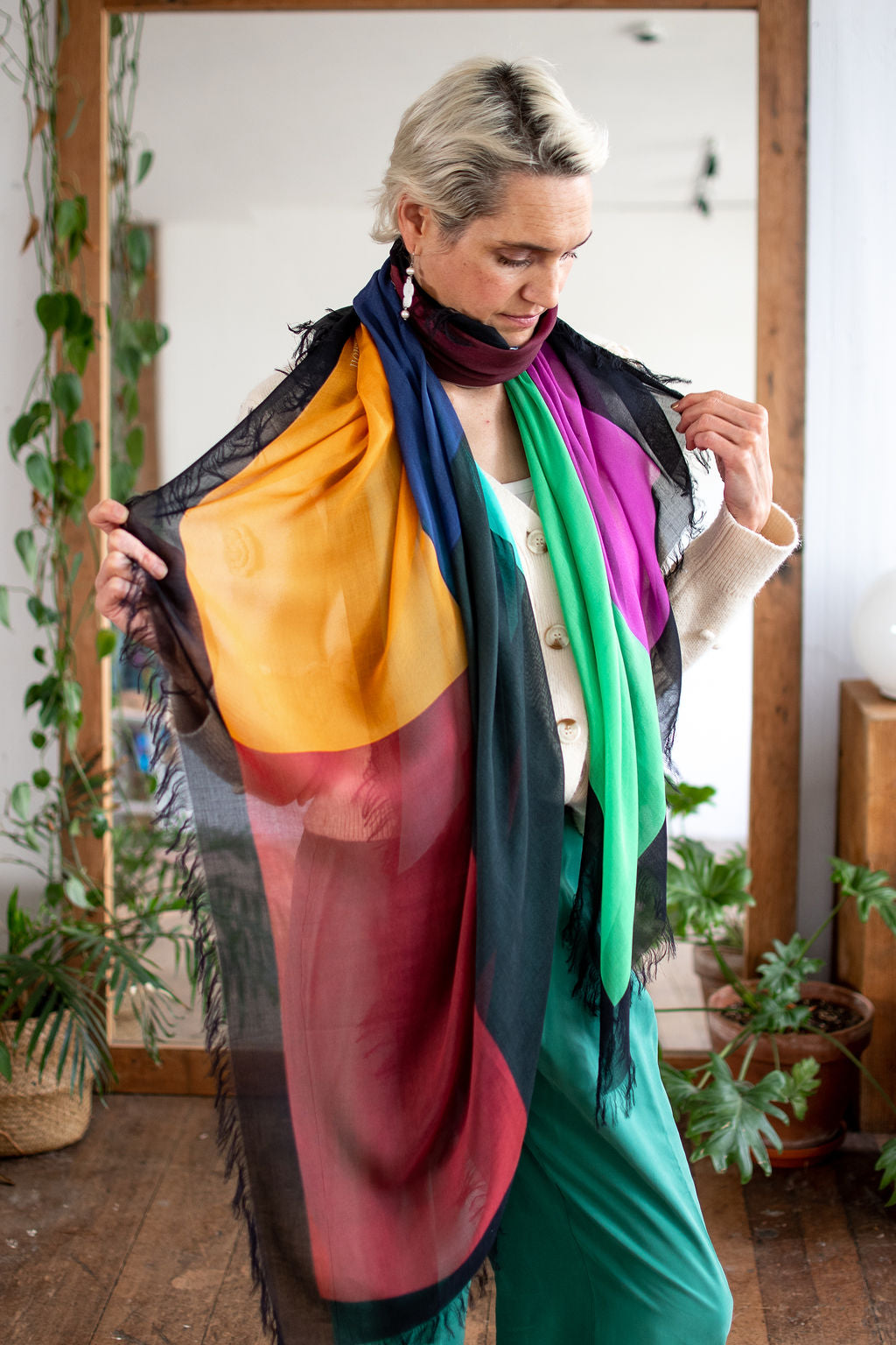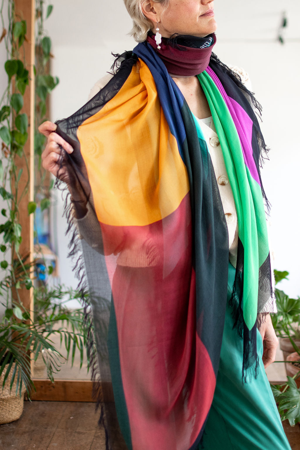 • Mammoth in size; may be styled in numerous ways or worn as a love wrap