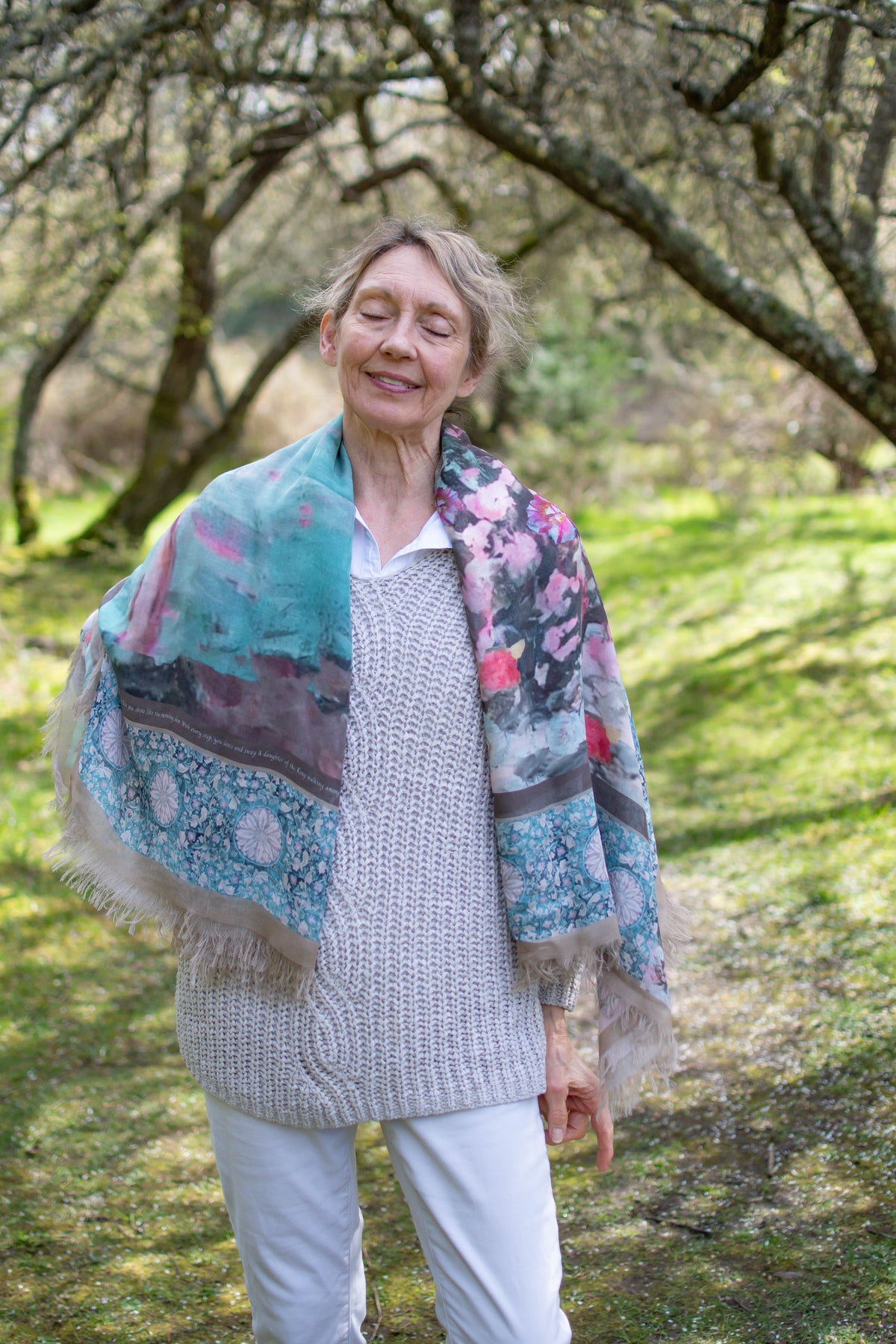 • Each scarf comes with a handmade luxury silk collectable pouch to store your scarf and promise card in a keepsake place (when you are not wearing it)