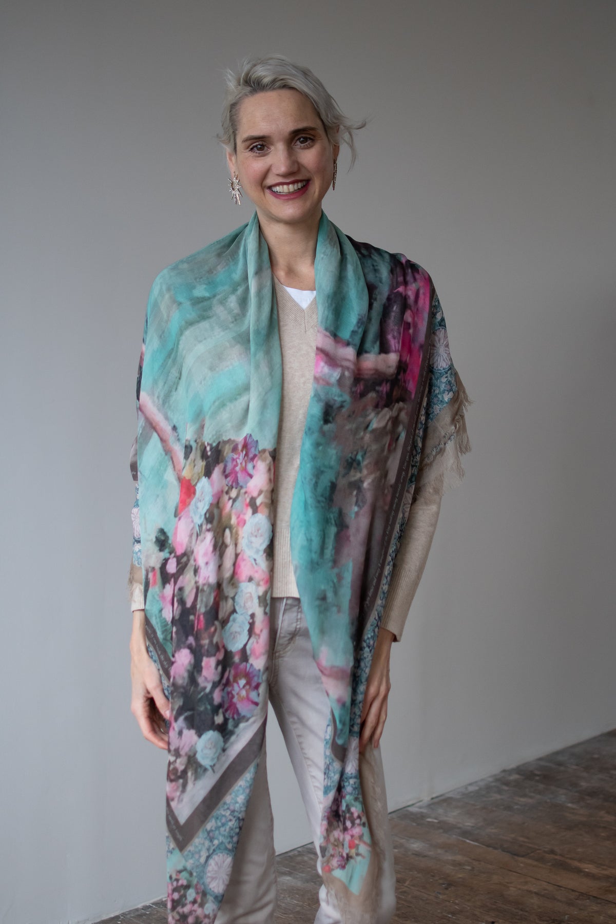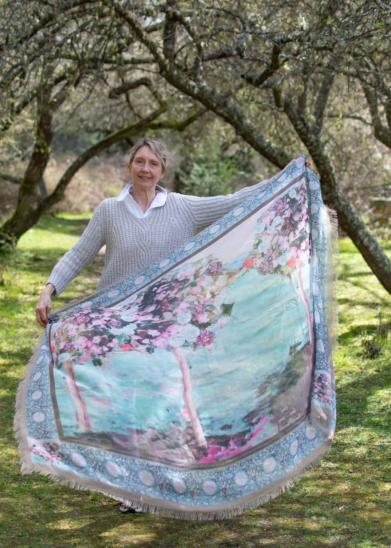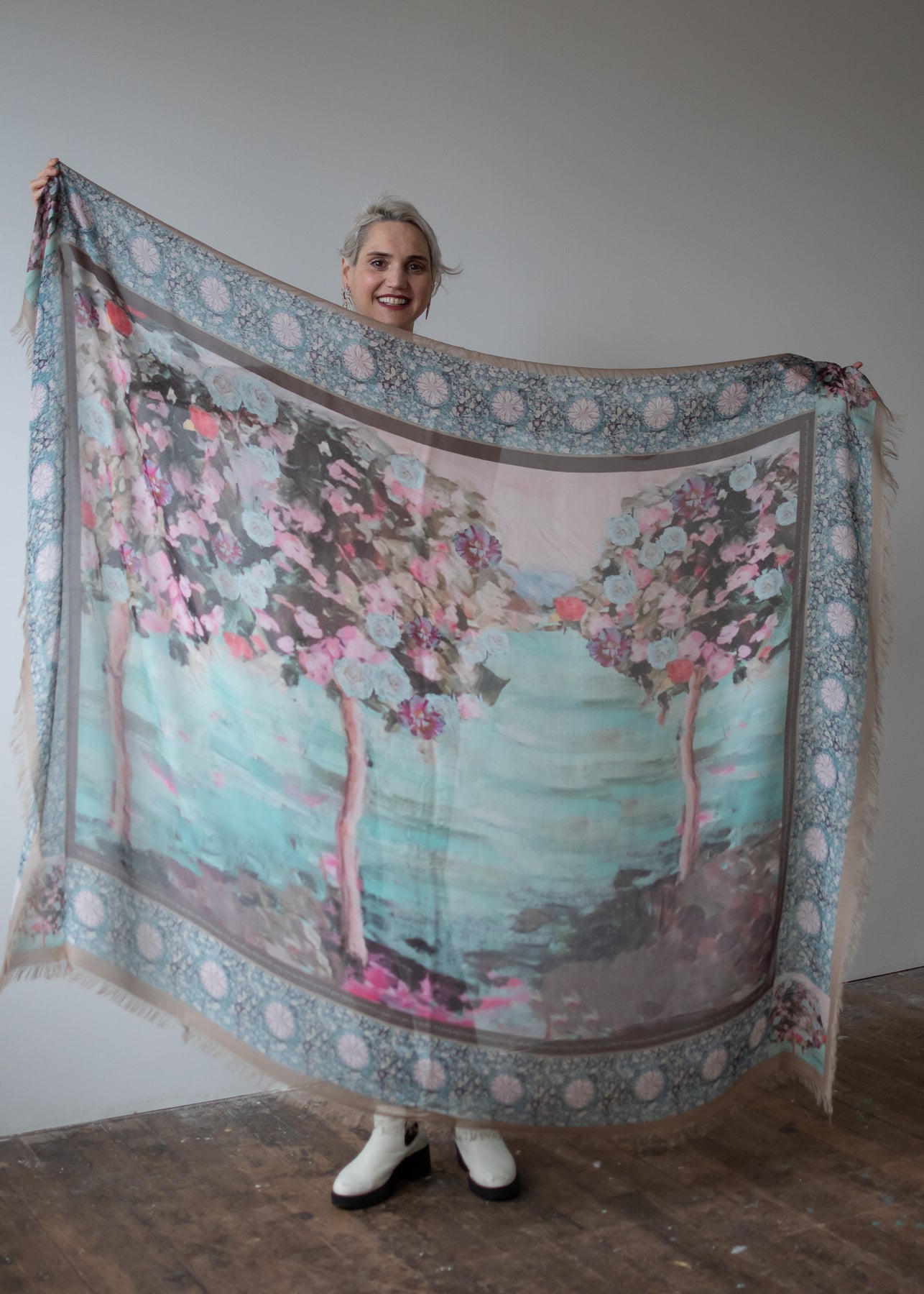 Luxury hand painted forever silk shawl: