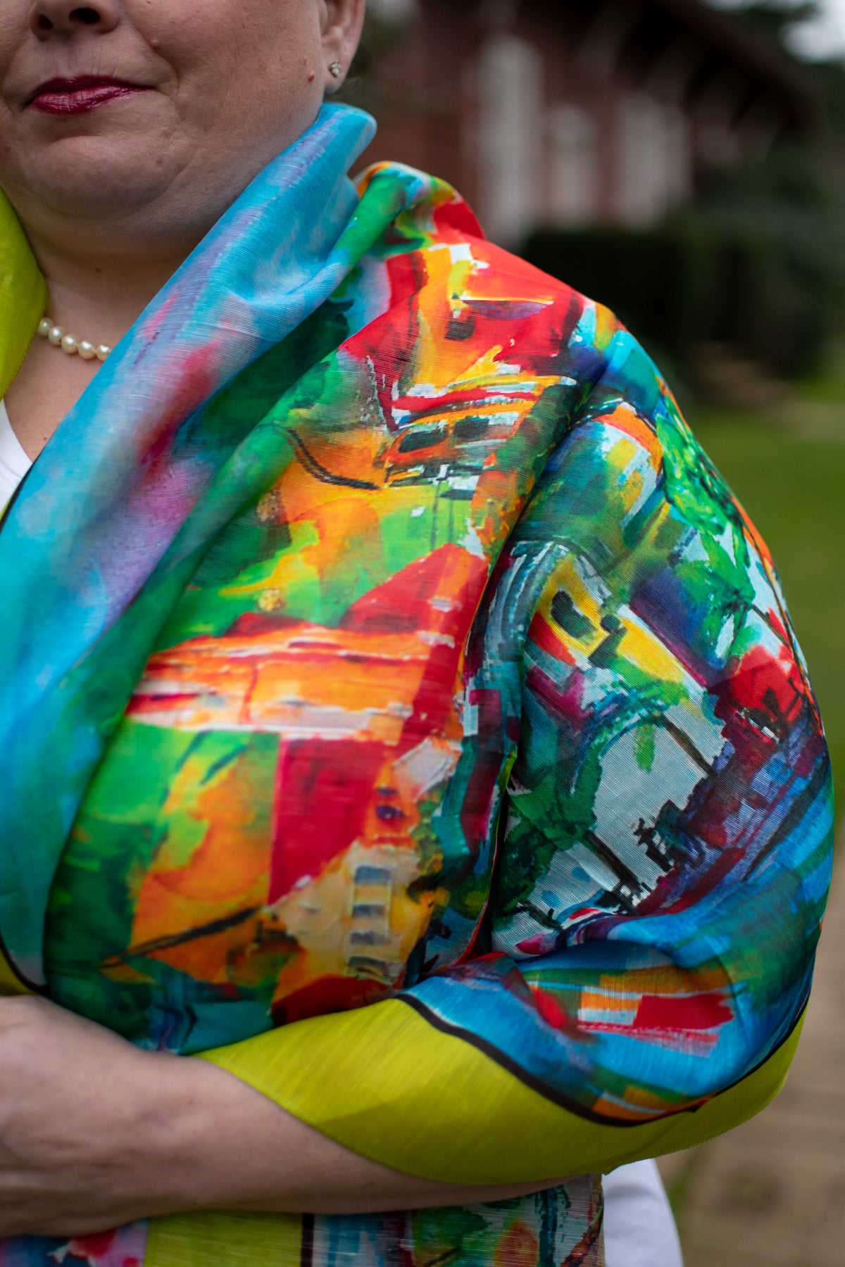 • A versitile scarf to be worn many ways! See tutorial page how to SCRUNCH it and give the scarf a whole new effect.