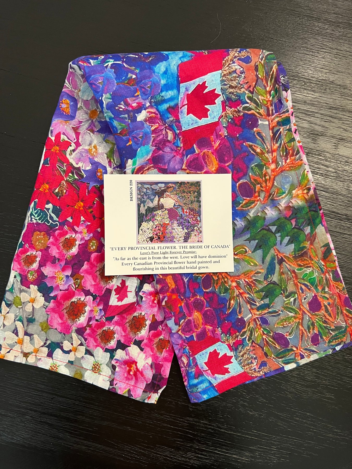 As far as the east is from the west, love will have dominion. Every Provincial flower is painted in this luxury scarf from the east to west!!! Do you know your provincial flowers?