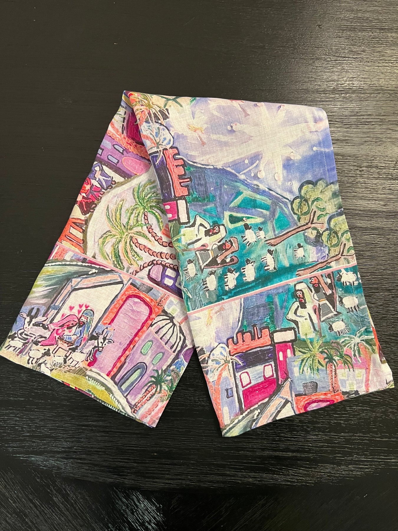 D-605LTT PINK BETHLEHEM PEACE ON EARTH- CATCH THE INEXPRESSIBLE JOY OF CHRISTMAS! ORGANIC LINEN TEA TOWEL