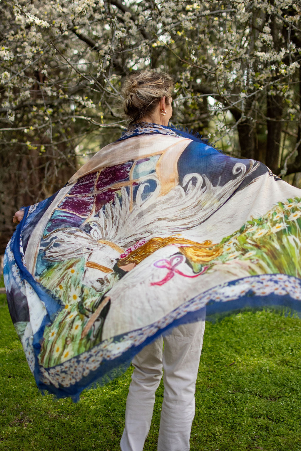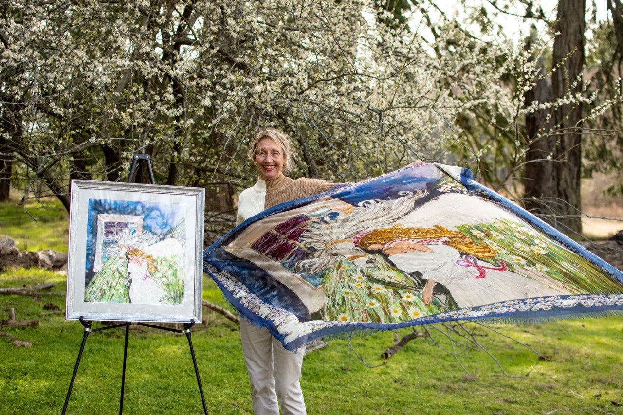 • The art is now re-produced for production by Love’s Pure Light Luxury Silks Canada