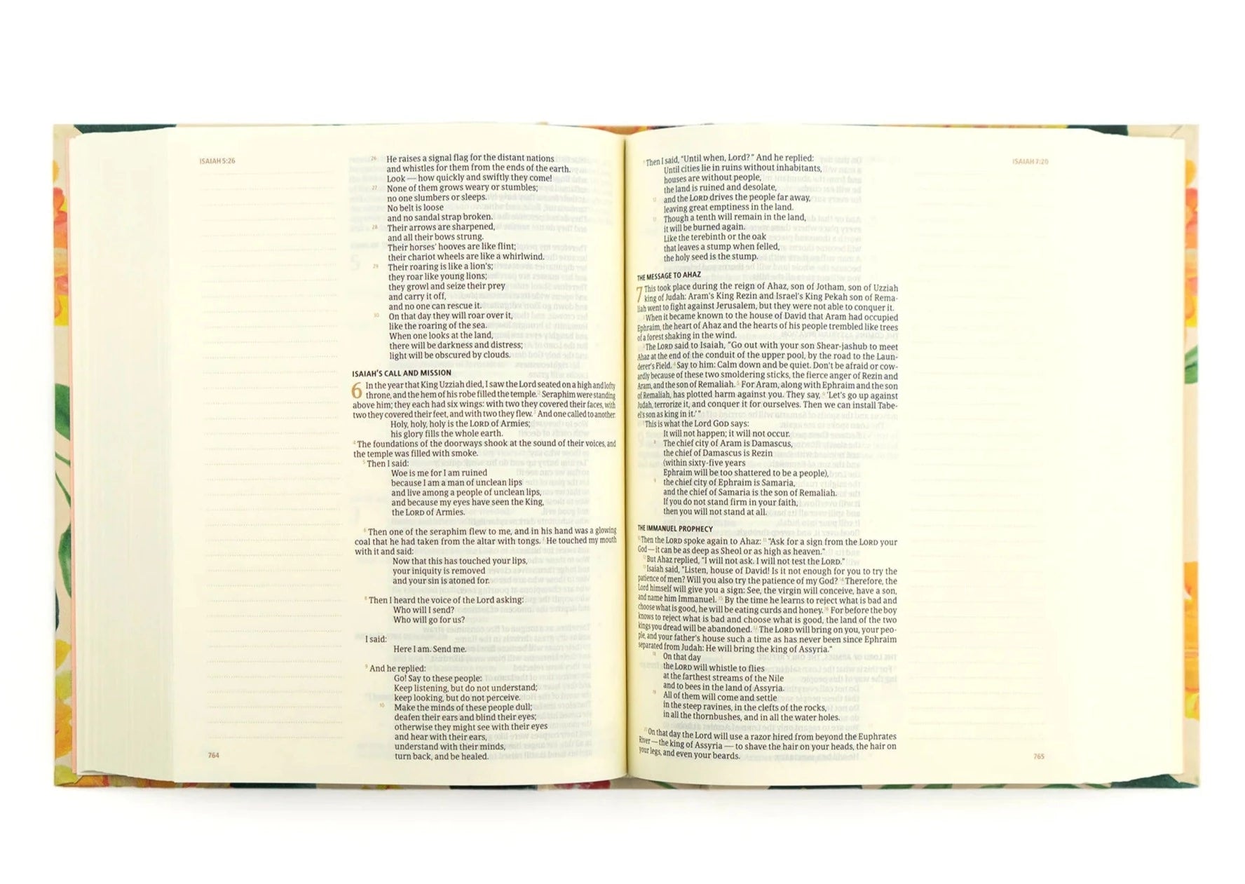 This edition (CSB Notetaking Bible) features a matching slipcase and a wonderful reminder from Hebrews 10:23. The front cover of the Bible says, “He who promised is faithful,” and the back cover says, “Let us hold on to the confession of our hope.” We hope this new, beautiful edition of the Savannah Bible will be loved by so many.
