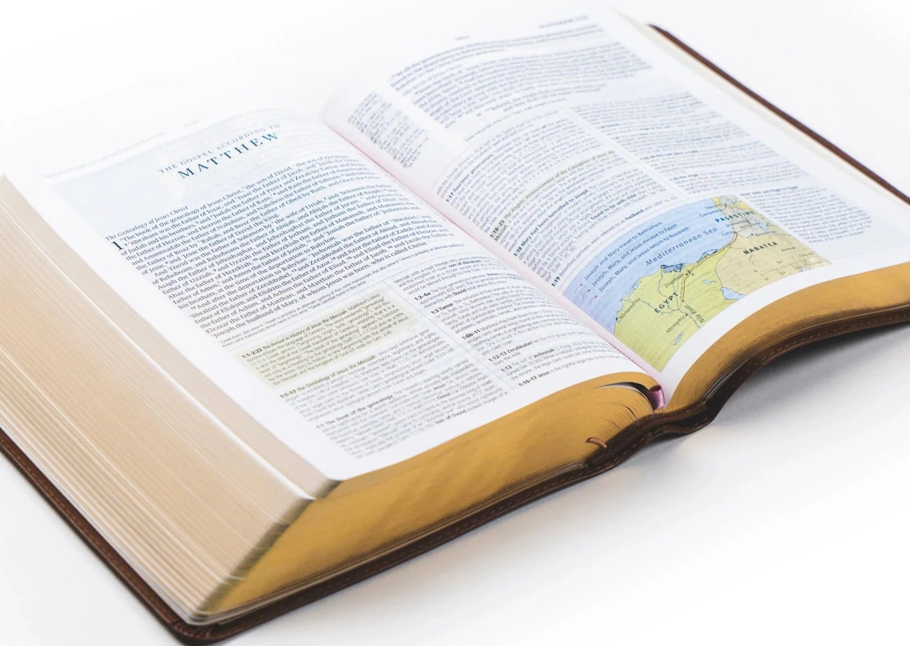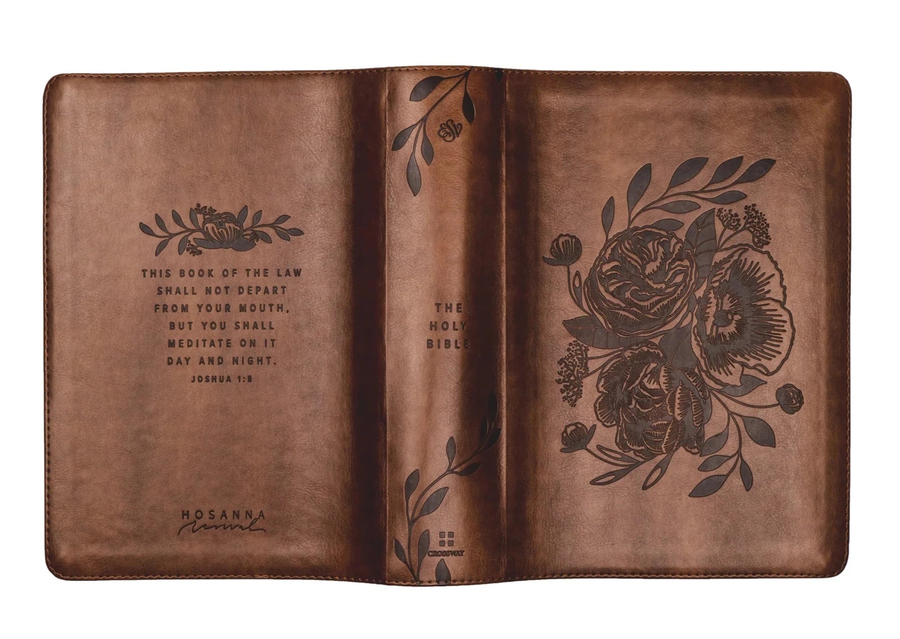 The inspiration for this beautiful leather-like Bible comes from the beautiful city of Aurora, Colorado, nicknamed “The Gateway to the Rockies.” Aurora is surrounded by large meadows filled with gorgeous flowers with the Rocky Mountains looming large in the background. The front cover of our very first leather-like ESV Study Bible features pressed floral artwork, and the back cover displays Joshua 1:8, which says, “This book of the law shall not depart from your mouth, but you shall meditate on it day and night.”