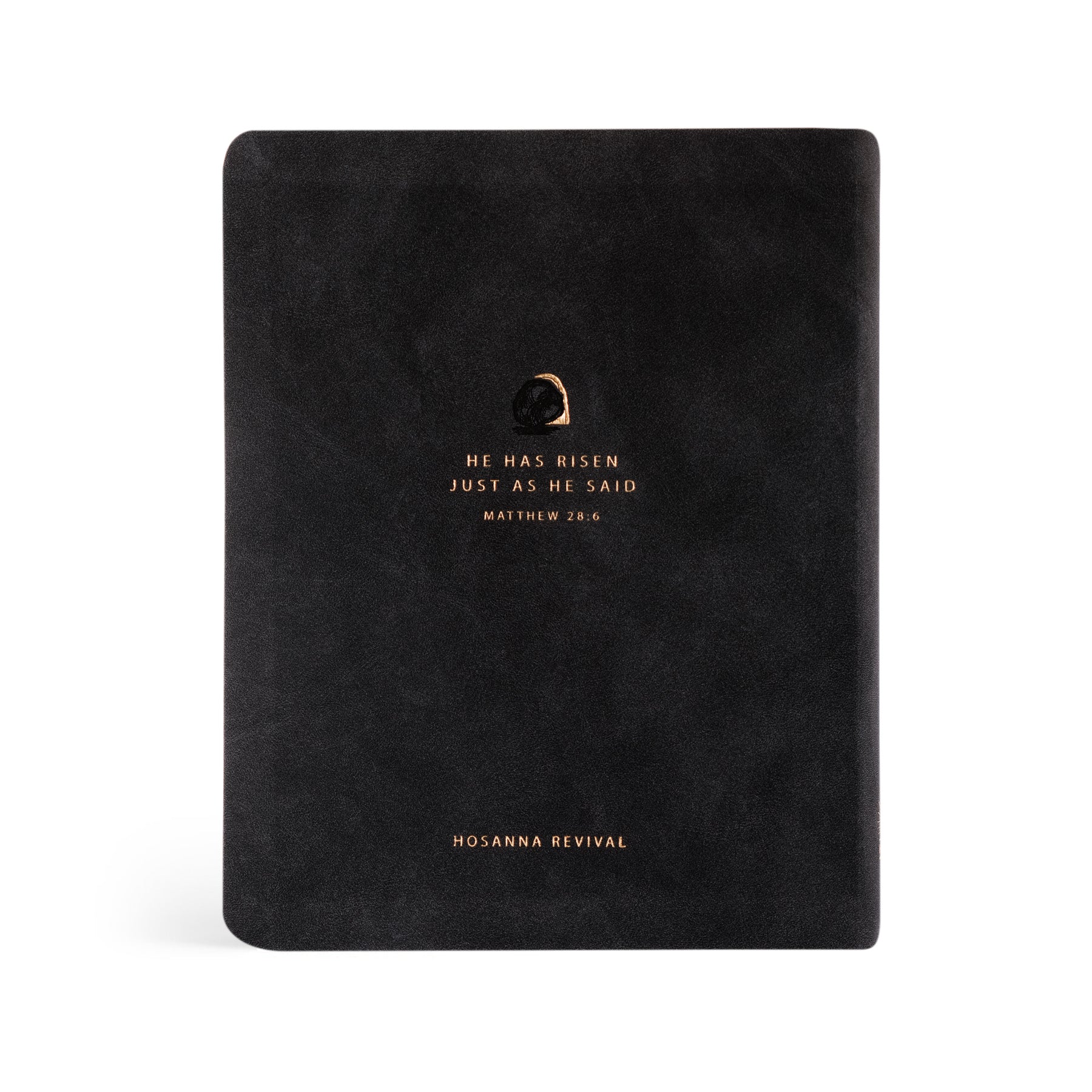 This black leather-like Bible is based on the beloved city of Jerusalem in Israel, where history unfolds in the Old and New Testaments and where the last week of Jesus’s life was spent. May we never forget the unashamed, powerful ministry that took place in the city that saw Jesus's arrest, trial, crucifixion, entombment, and resurrection. A gold-foiled design of Jesus’s open tomb is placed on the cover of this Bible, symbolizing his victory over death and defeating every act of evil that has ever been and will ever be. The back of the Bible features Matthew 28:6, “He has risen just as he said,” a verse that declares the power and sovereignty of God. Our prayer is that this verse reminds you of God’s trustworthy character and the victory he has over your life!