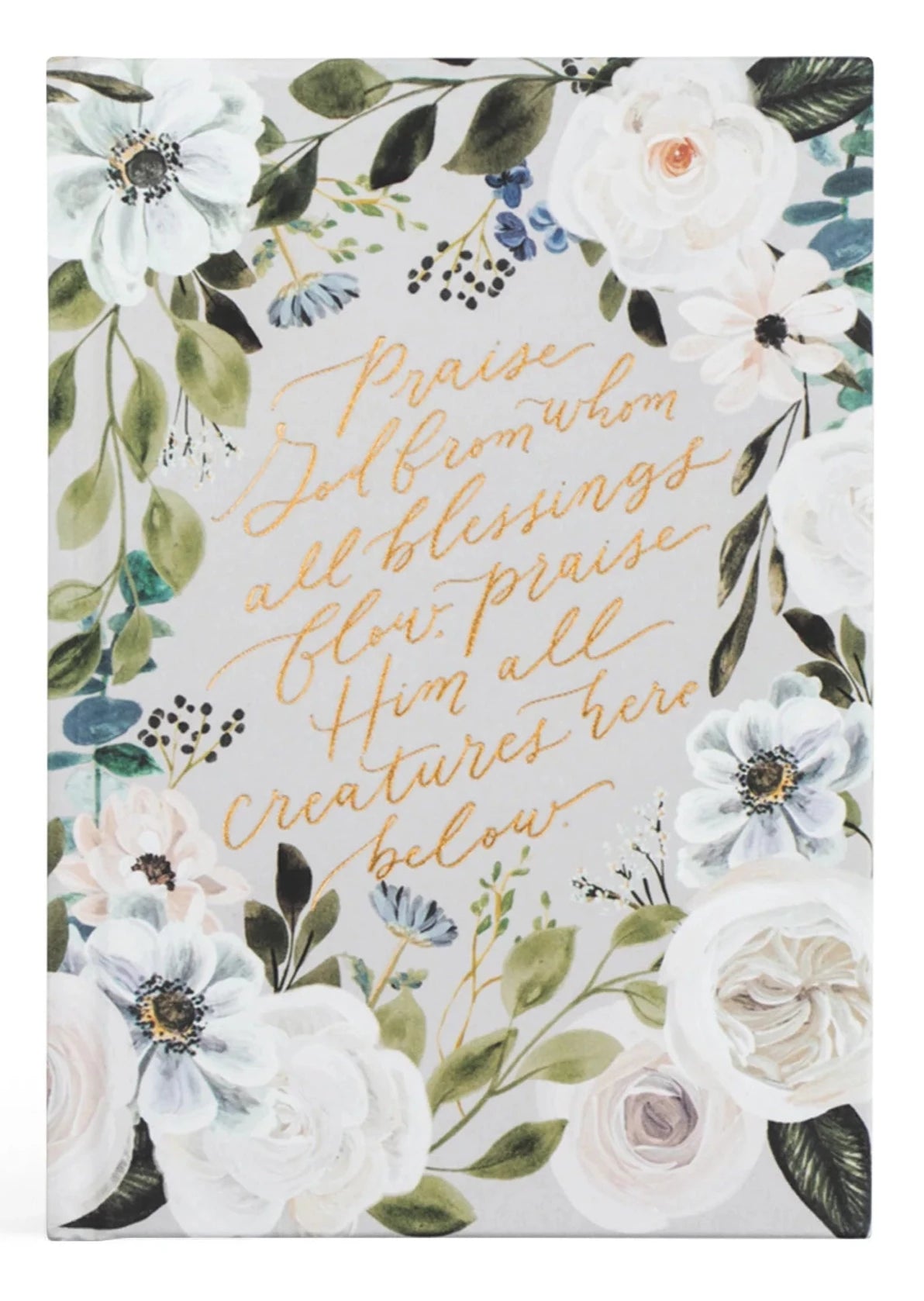Inspired by the natural eucalyptus and blooms of Victoria, Australia, we are so excited to offer this beautiful floral notebook that matches our refreshed Victoria Bible! Delicate gold script covers the front and back covers with the beloved Doxology, “Praise God from whom all blessings flow. Praise him all creatures here below. Praise him above ye heavenly hosts. Praise Father, Son, and Holy Ghost.” These cherished words ring out true in our lives—may we remember this truth as we cling to our communion with our Savior!