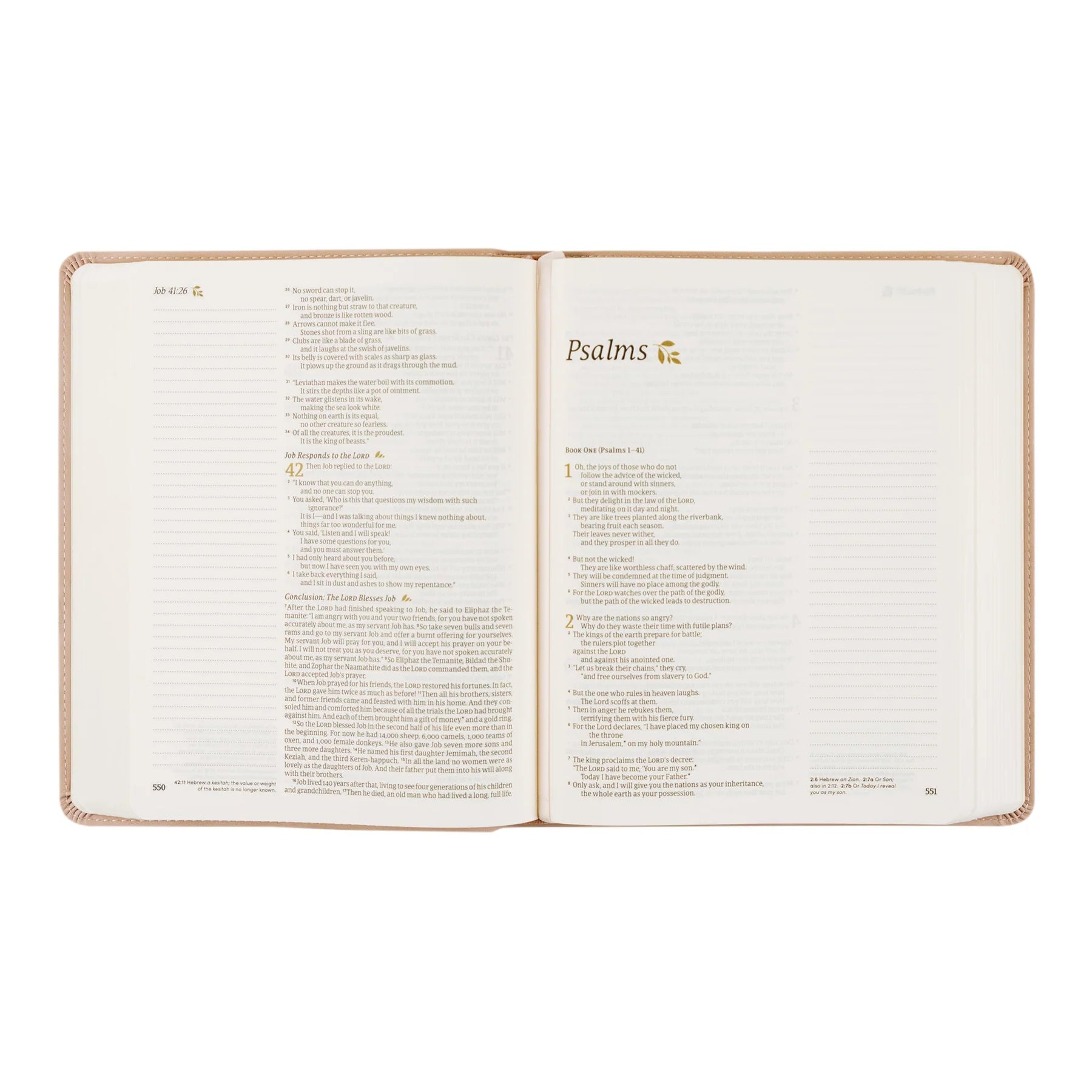 This blush pink Bible was also inspired by the rich history of the word Shiloh in Scripture. Known as a central place of worship for God’s people, we see the rich history of our Lord and his covenant with us. As we remember his work, may we find fullness of joy in him—and life evermore!