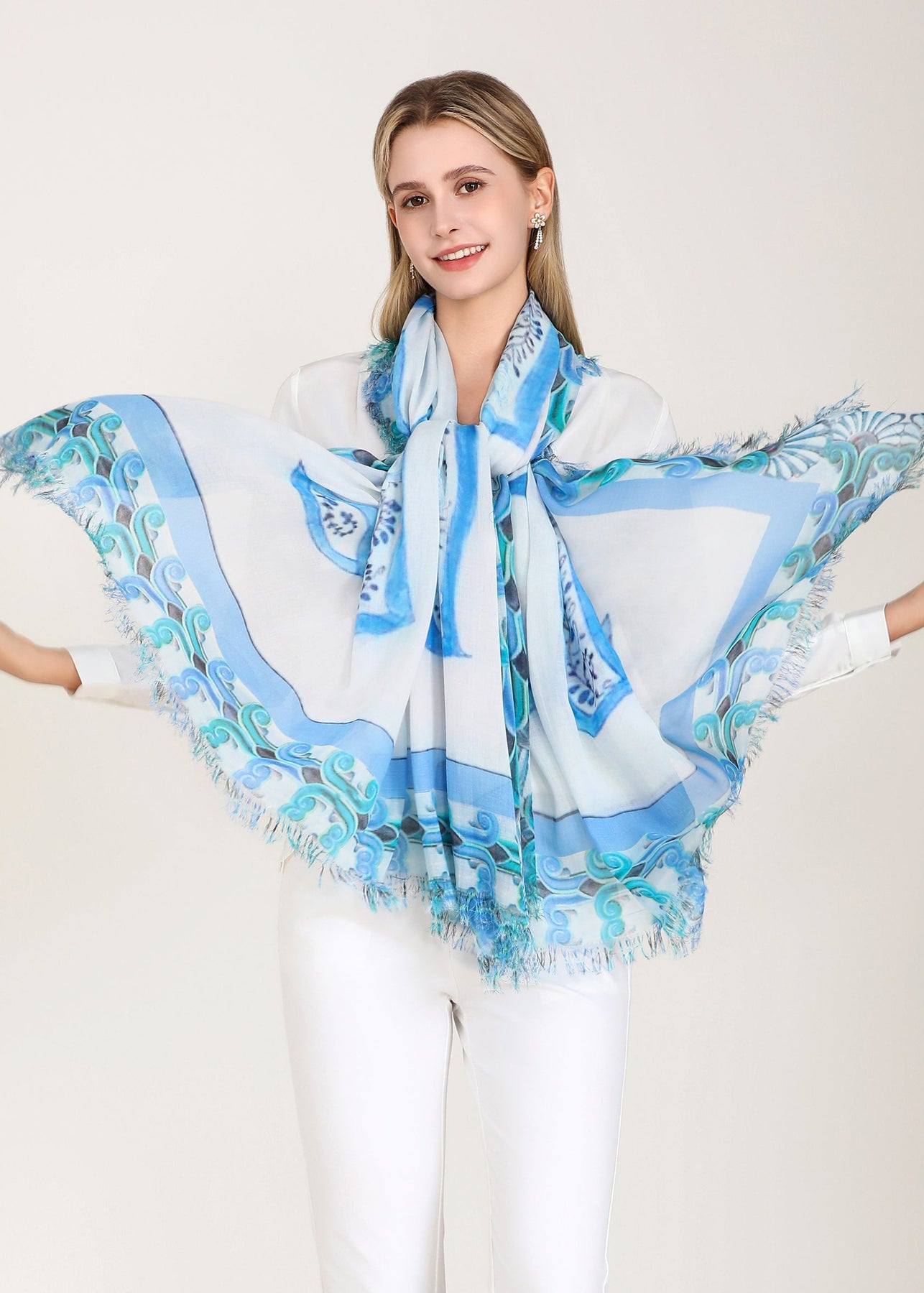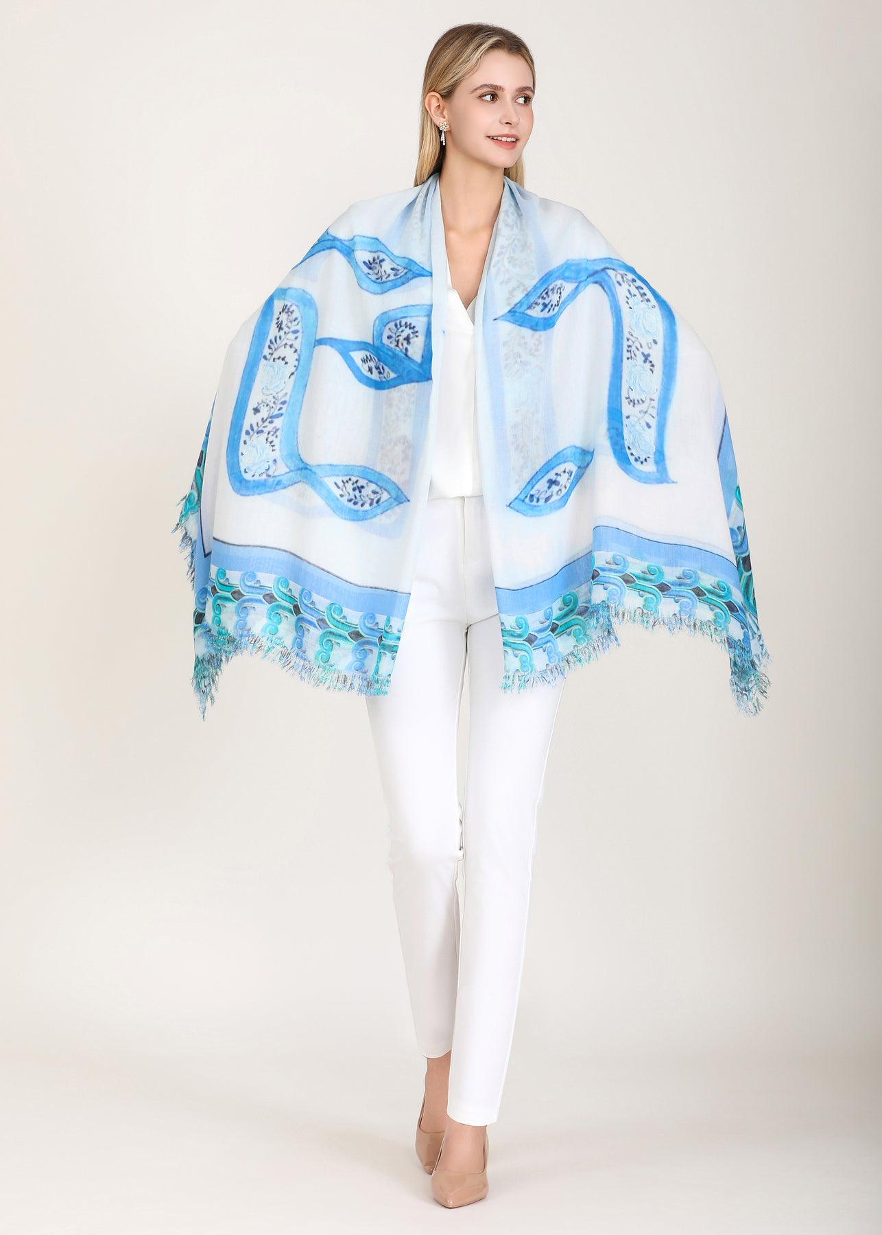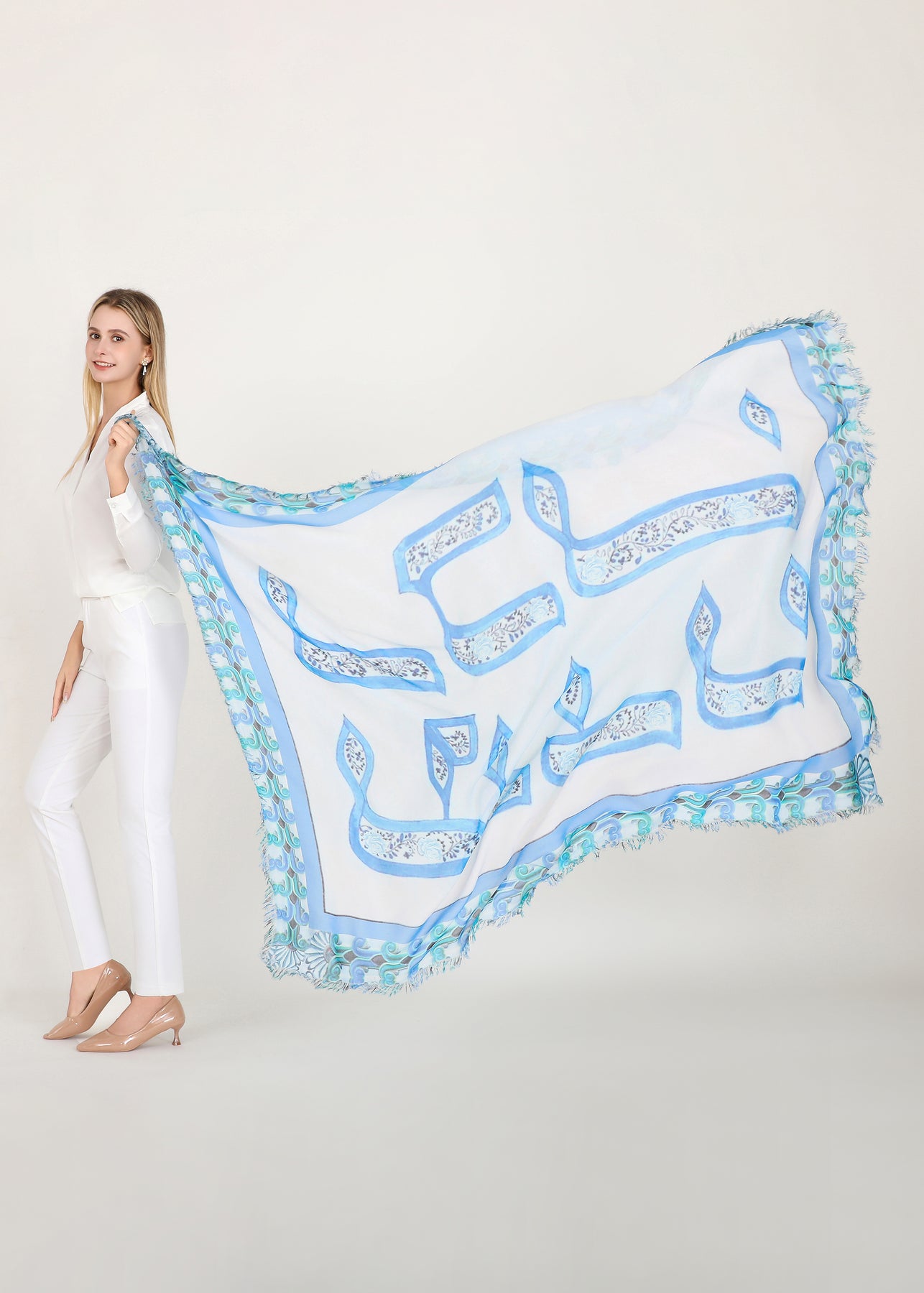 Luxury hand painted forever silk shawl:
