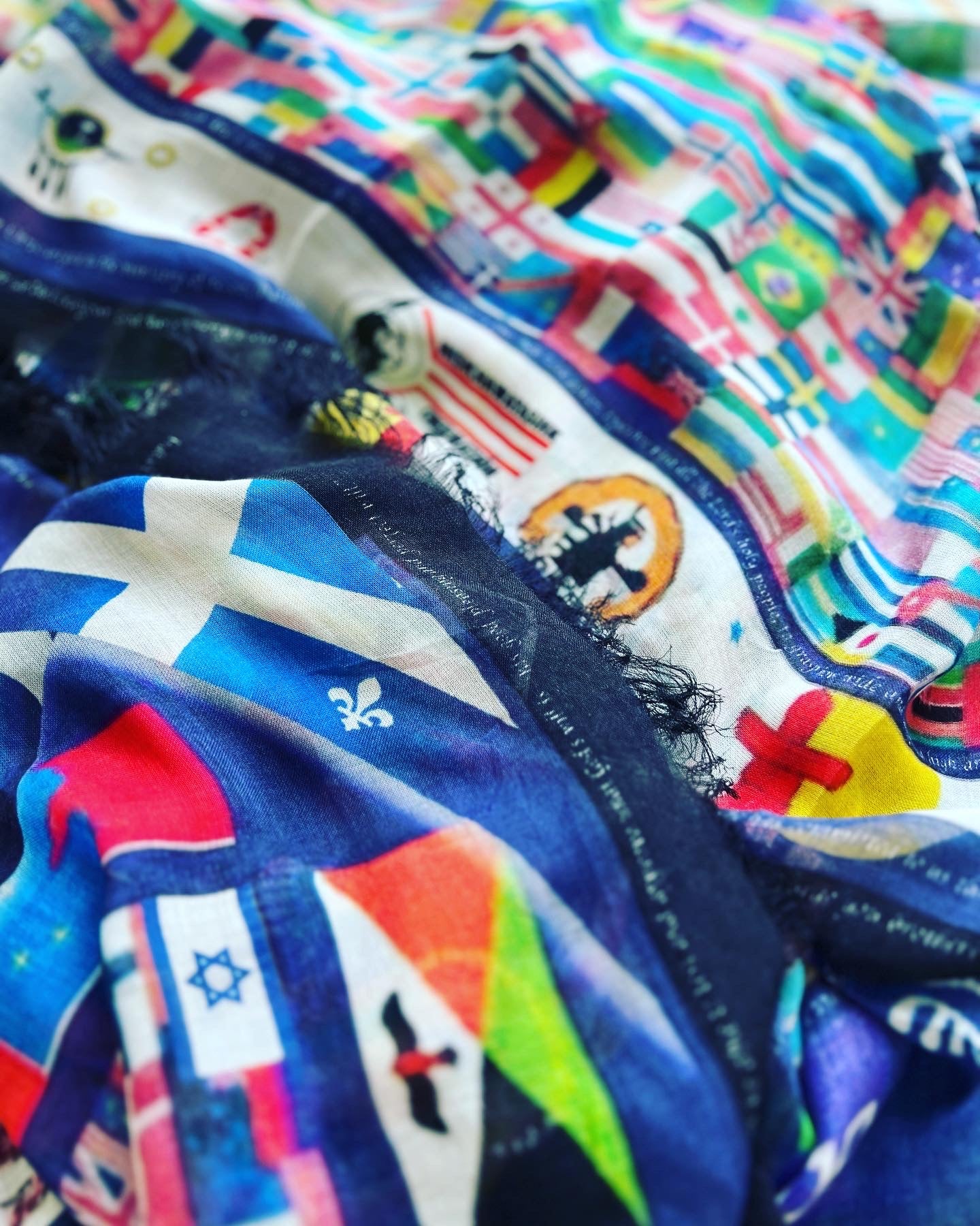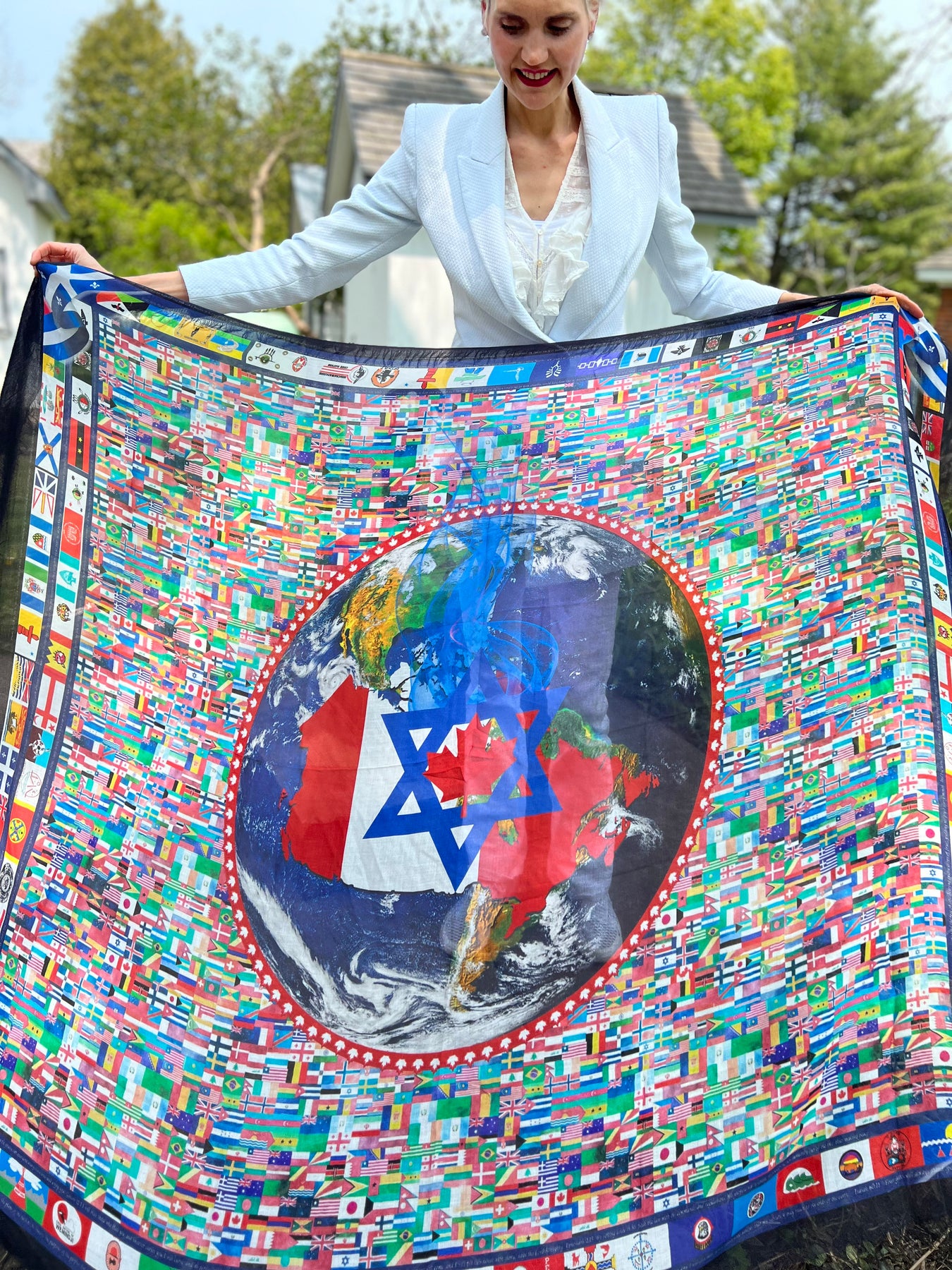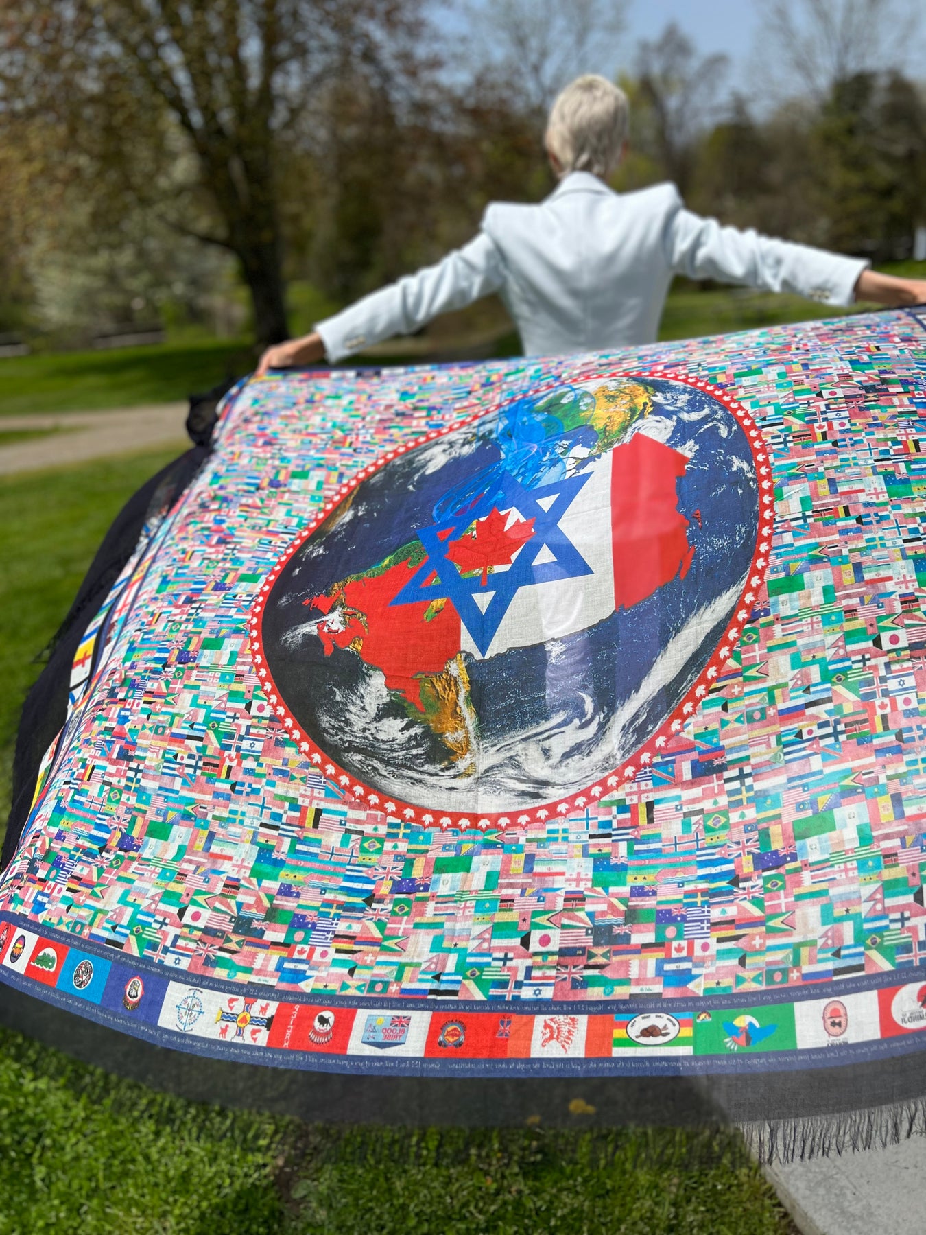 This is a luxury prayer shawl featuring all first nations flags of Canada and America