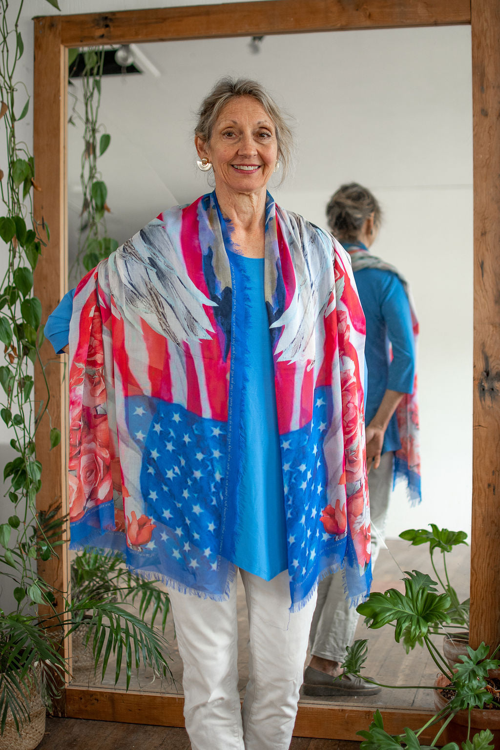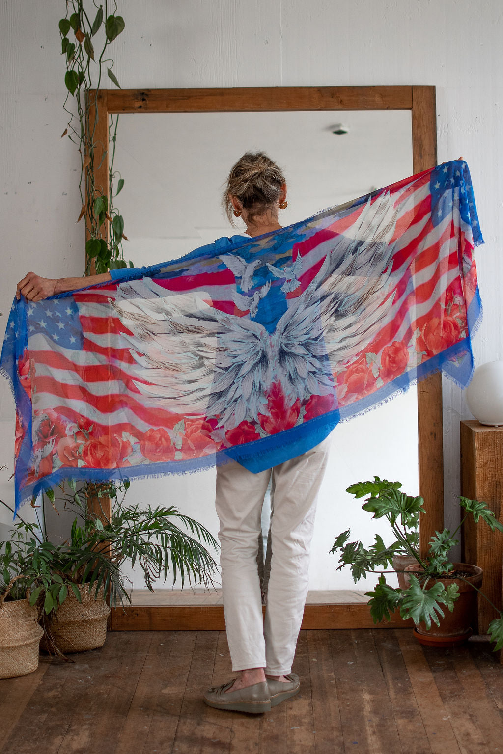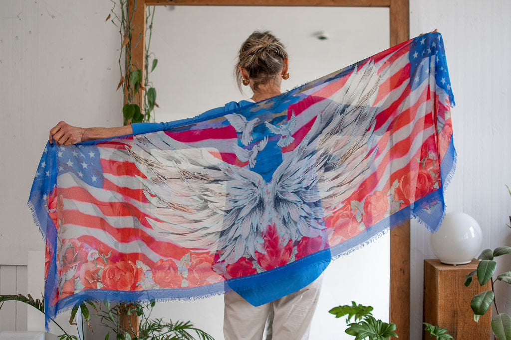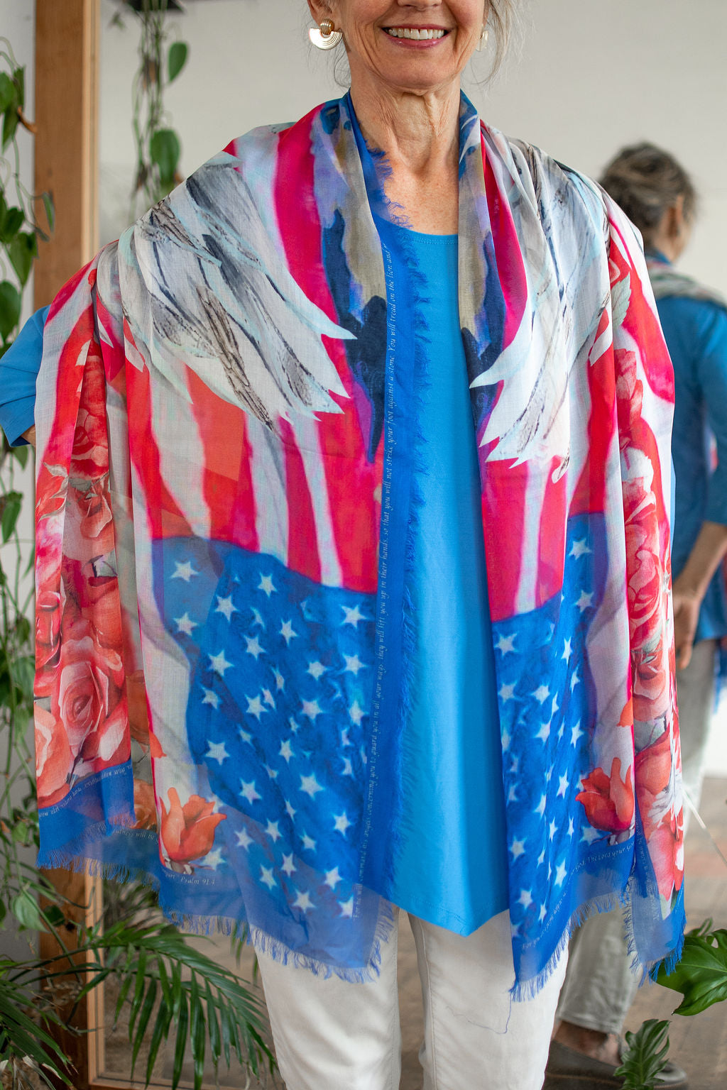 God has promised great things for the United States of America. This beautiful mantle is to remind you that you are a chosen one. You are Gods treasured possession. His love for you will never fail. No matter what you are going through, his eyes are on you! He has promised you a crown of beauty for ashes, the oil of joy instead of mourning and a garment of praise instead of a spirit of despair. You are an oak of righteousness a planting of splendor. You will rebuild the ancient places long devastated, and you will renew the cities once ruined. For he will command his angels concerning you to guard you in all your ways; they will lift you up in their hands, so that you will not strike your foot against a stone. You will tread on the lion and the cobra; you will trample the great lion and the serpent. He will cover you with his feathers, and under his wings you will find refuge. Remember this one thing: His faithfulness will be your shield and rampart. Be blessed as you are adorned with this mantle to stand on guard and in the gap for your nation. You will see the goodness of God in the land of the living.