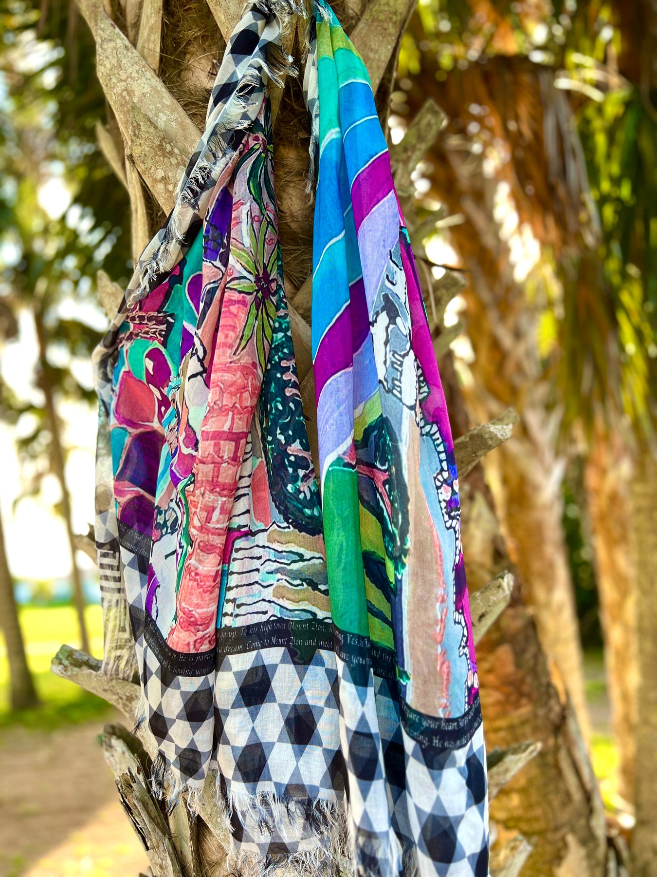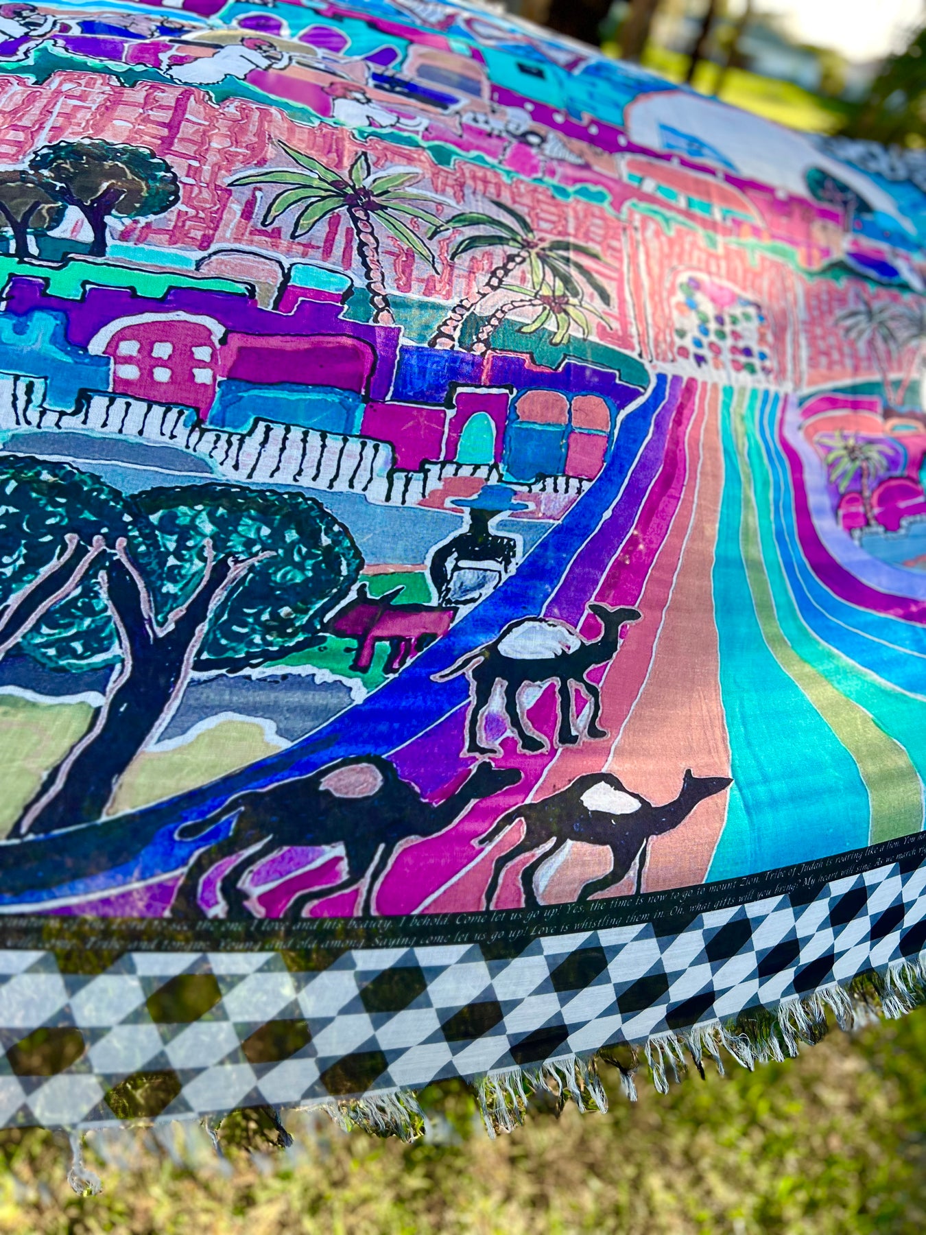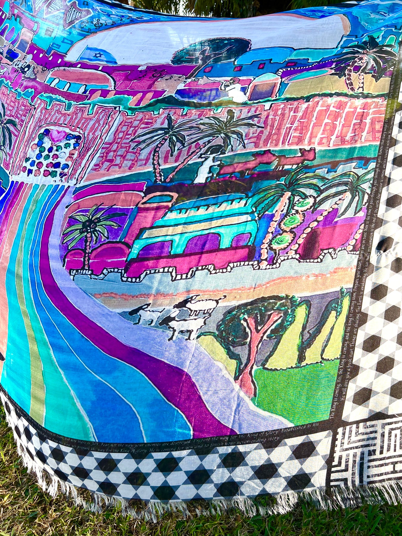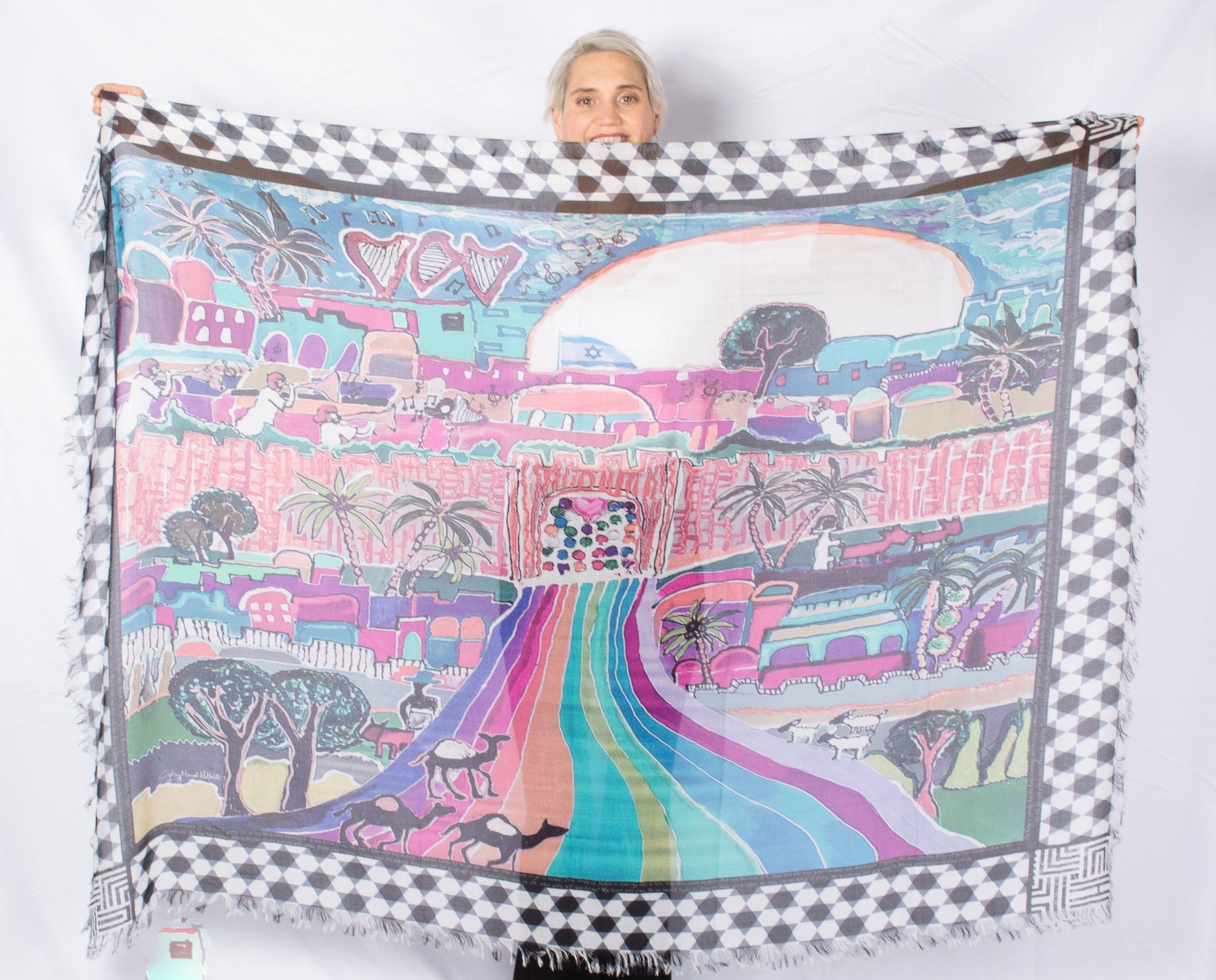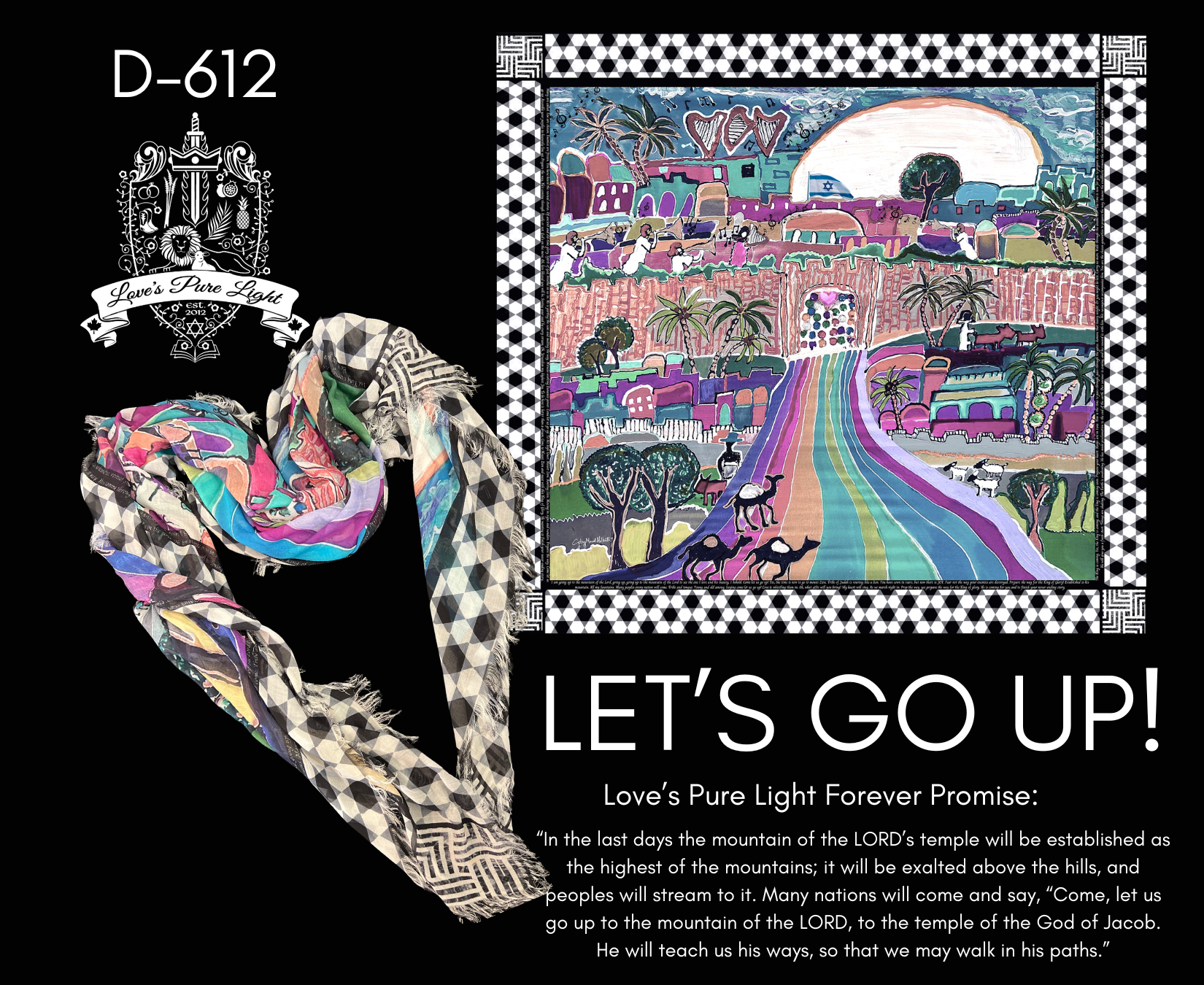 This scarf is dedicated to my dear friends in Jerusalem Tom and Kate Hess of the Jerusalem house of prayer. An exclusive Love's Pure Light piece part of our FAITH and Prayer Shawl Collection. This is a great scarf for someone who needs a boost of faith and the call! Prepare the WAY! Let us go UP to the mountain of the Lord!  Be encouraged for the days ahead with this magnificent shawl to adorn your heart and life!