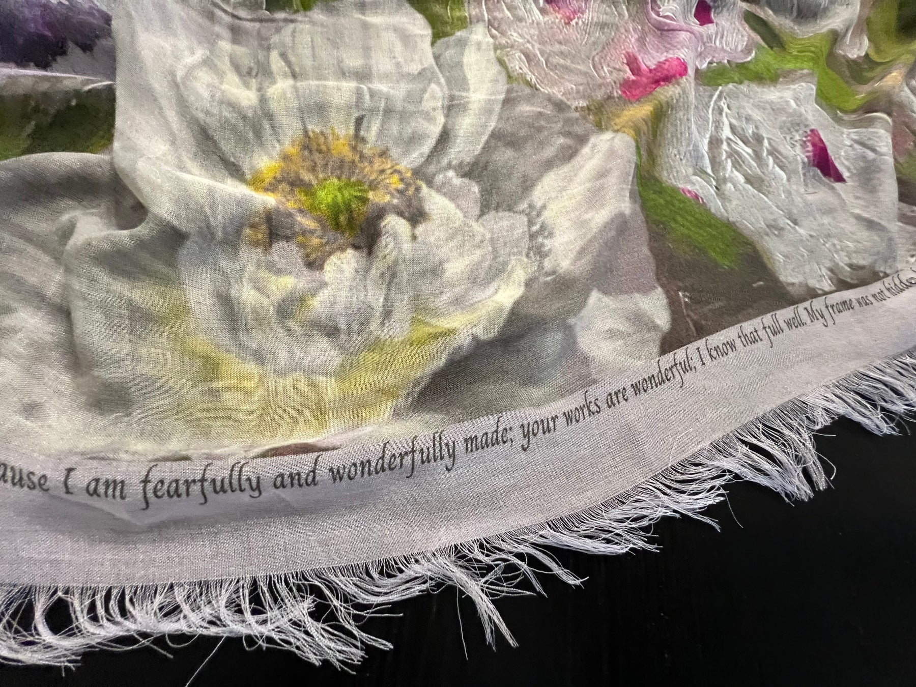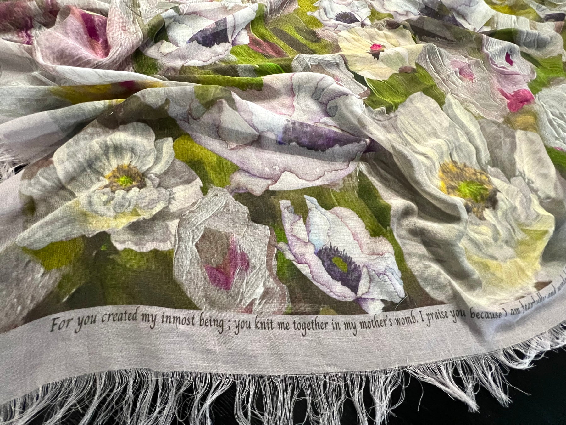 • Each scarf comes with a handmade luxury silk collectable pouch to store your scarf and promise card in a keepsake place (when you are not wearing it)