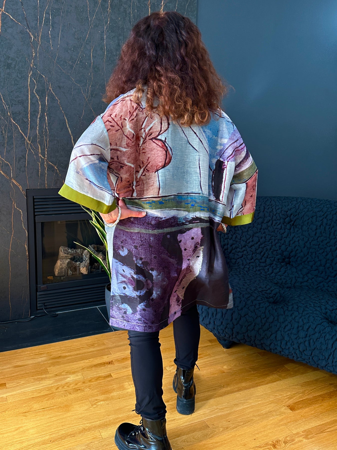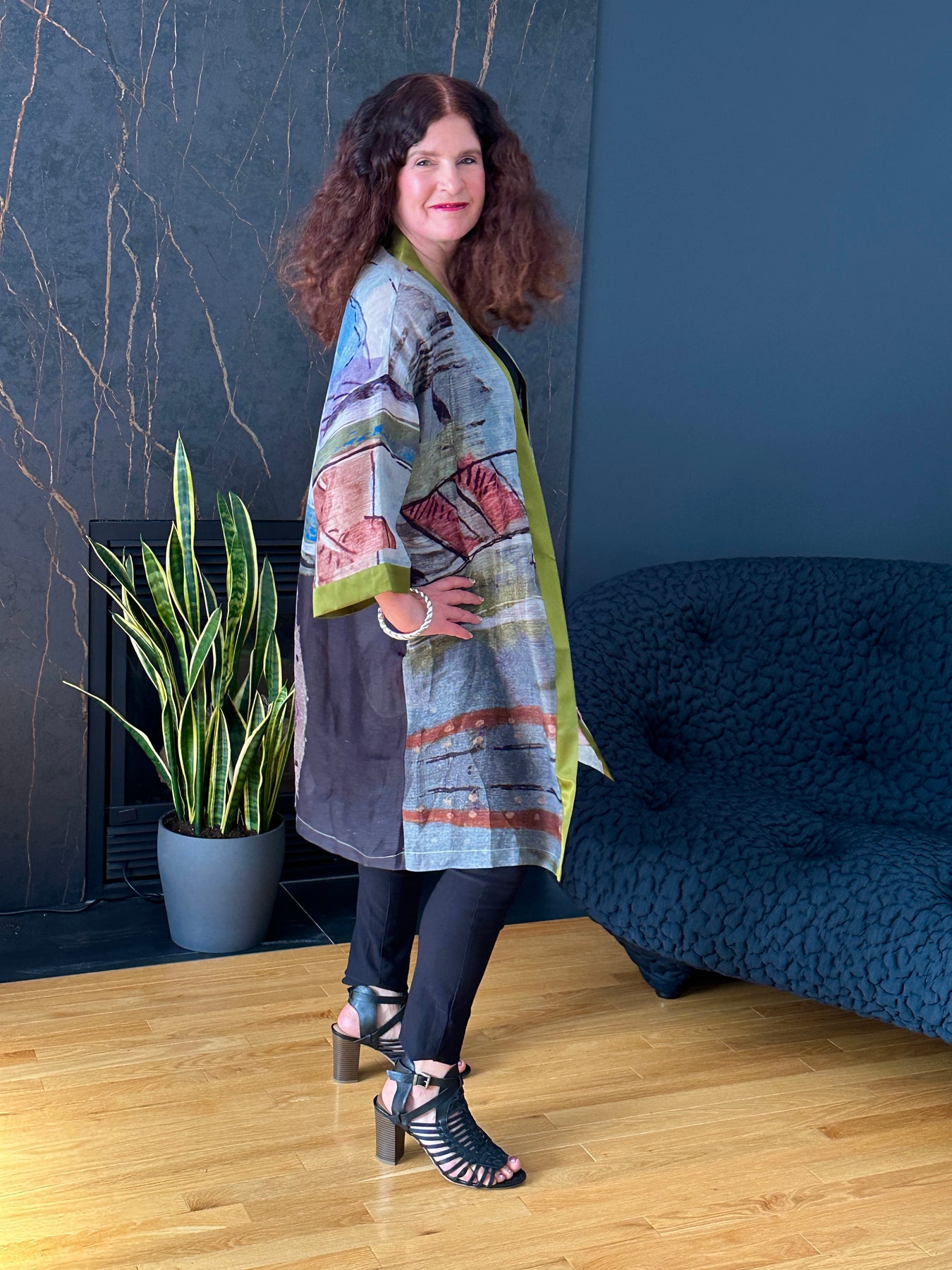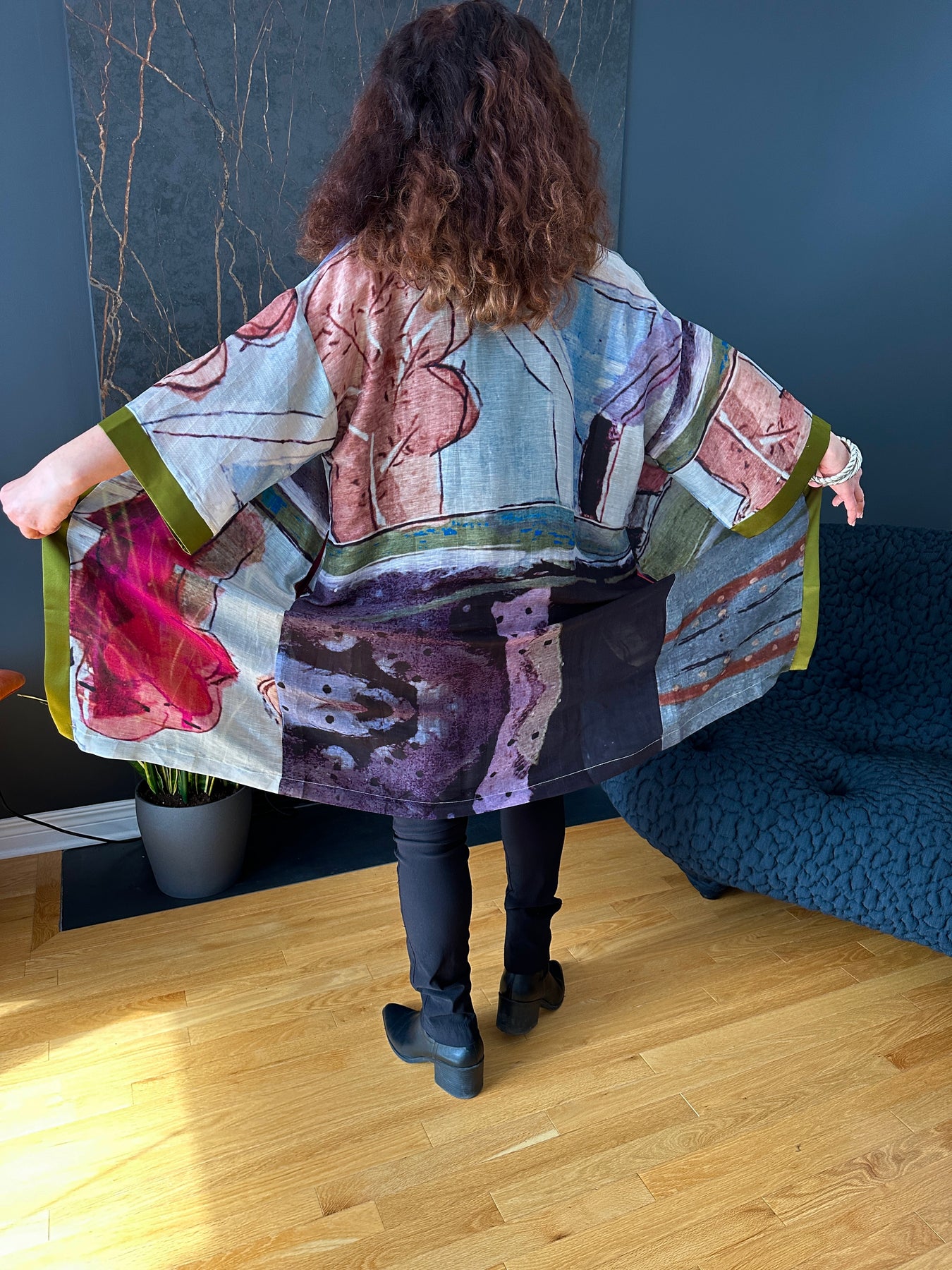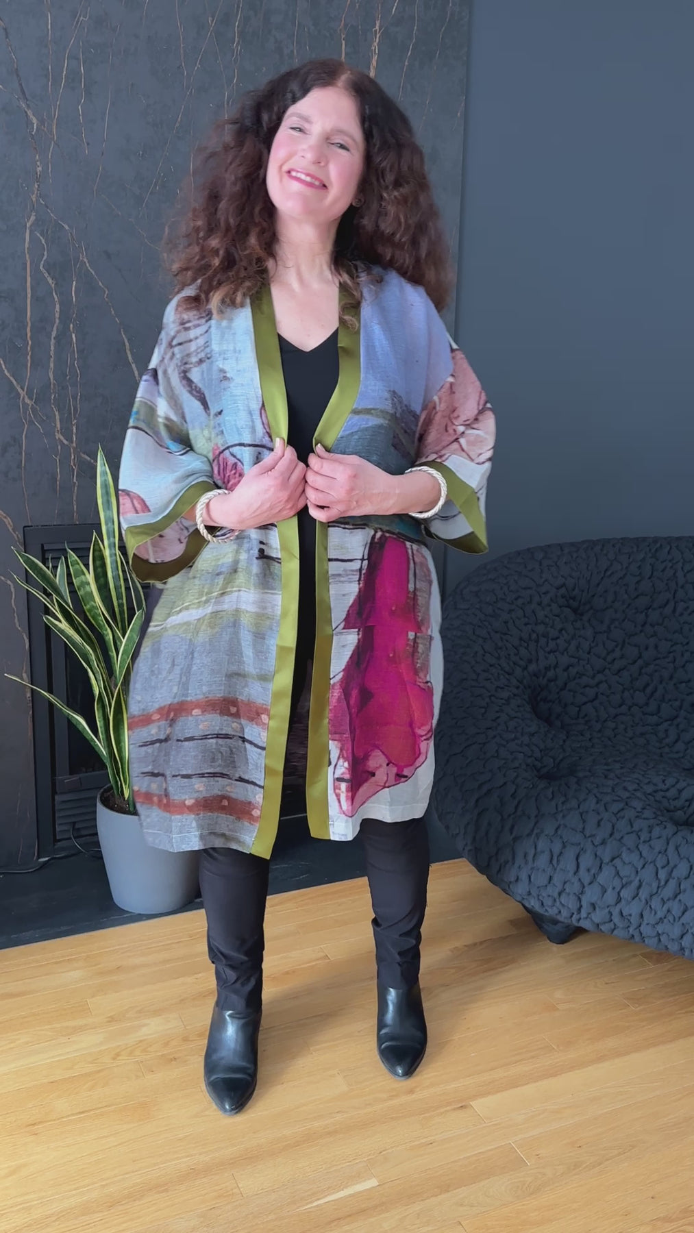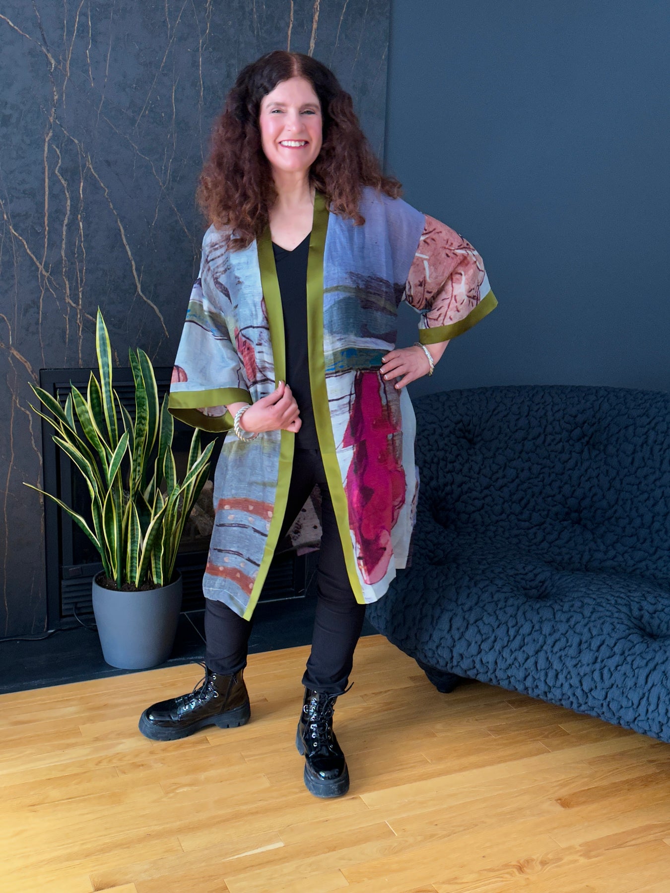 D-489C KIMONO - LET RIGHTEOUSNESS AND PRAISE SPRING UP - WITH OLIVE GREEN SILK TRIM