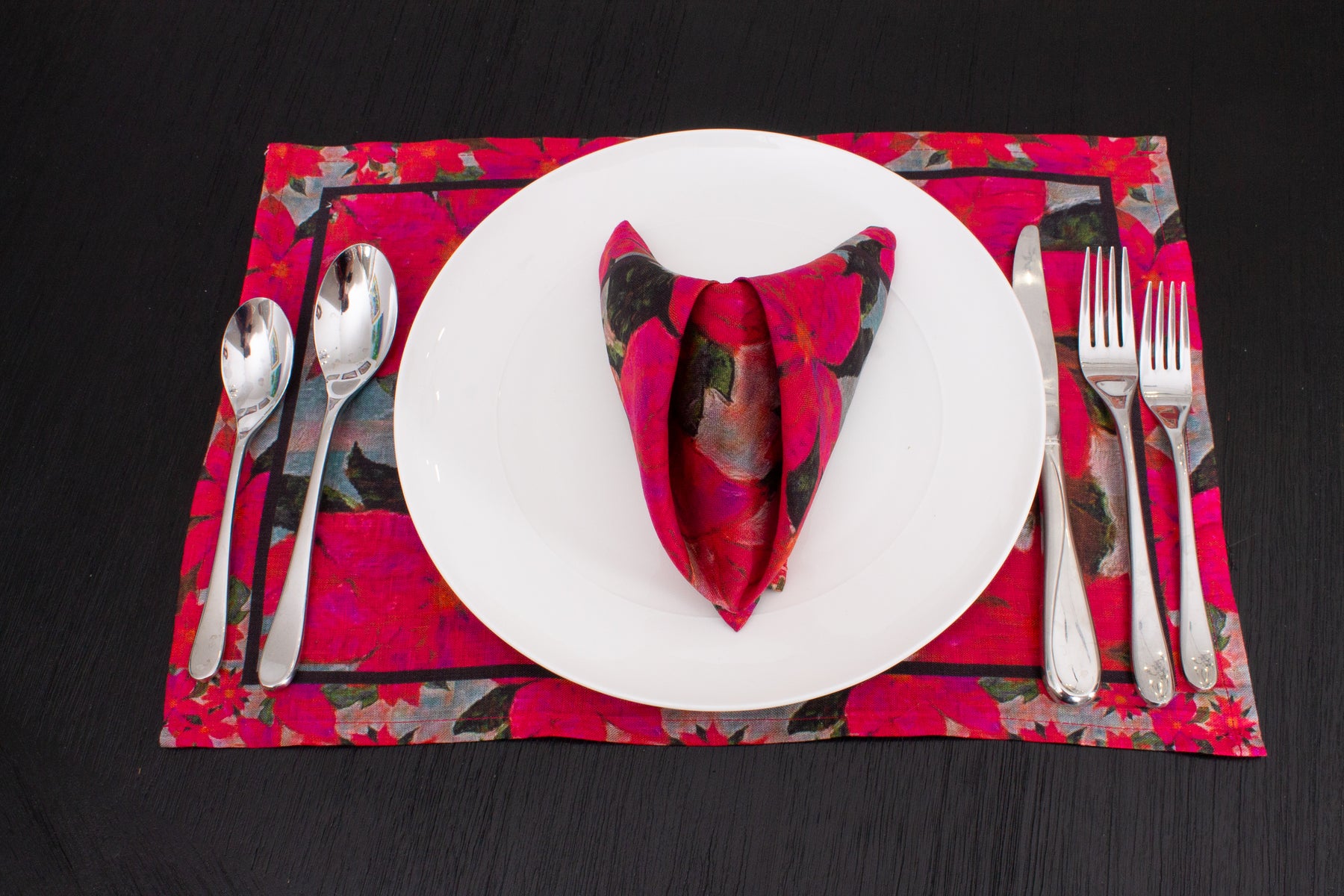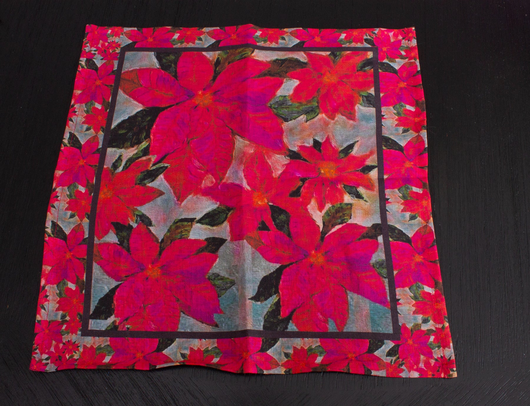 D-368 POINSETTIAS OF PEACE - Organic Linen Napkin 16" x 16"