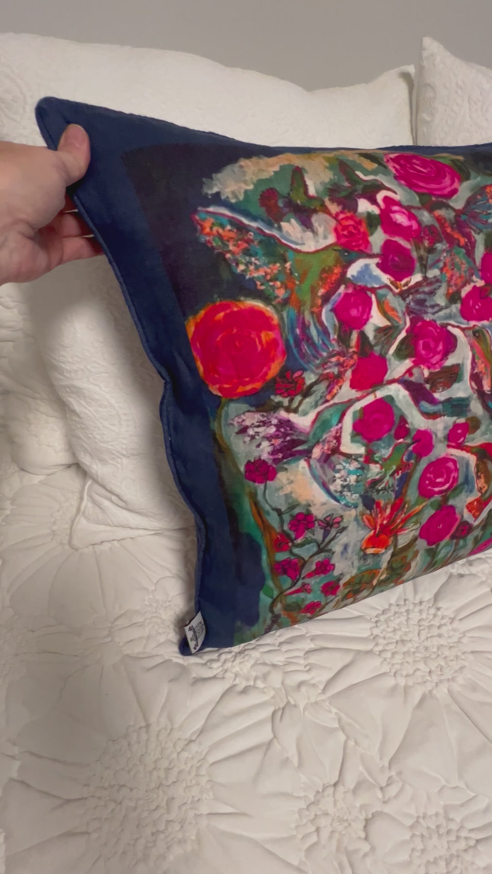 D-112B LOVE'S EYE IS ON THE SPARROW - HUMMINGBIRD - Large Luxury Organic Linen Sham, 22" x 22"