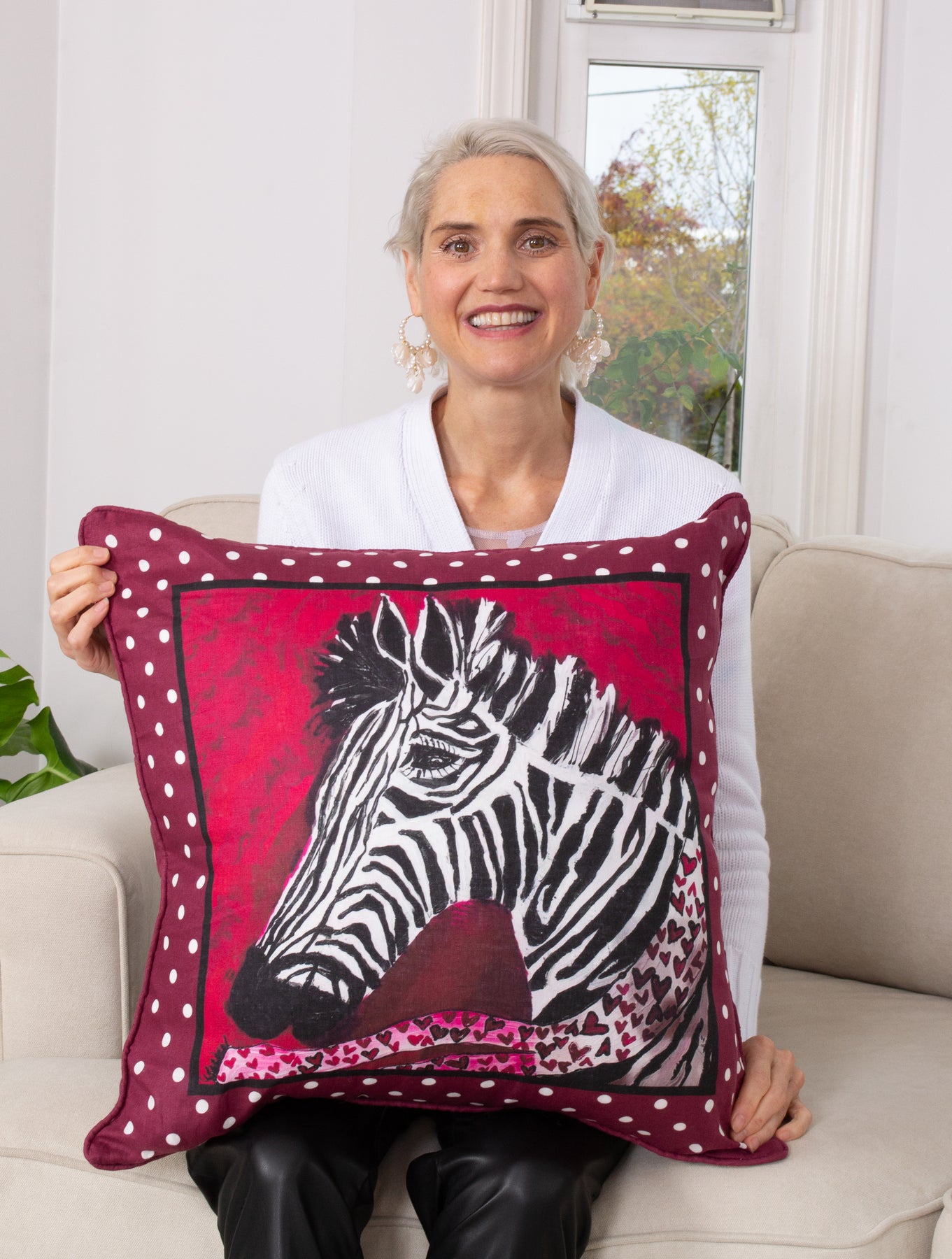 D-184 HEALING STRIPES - RED ZEBRA - Large Luxury Organic Linen Sham, 22" x 22"