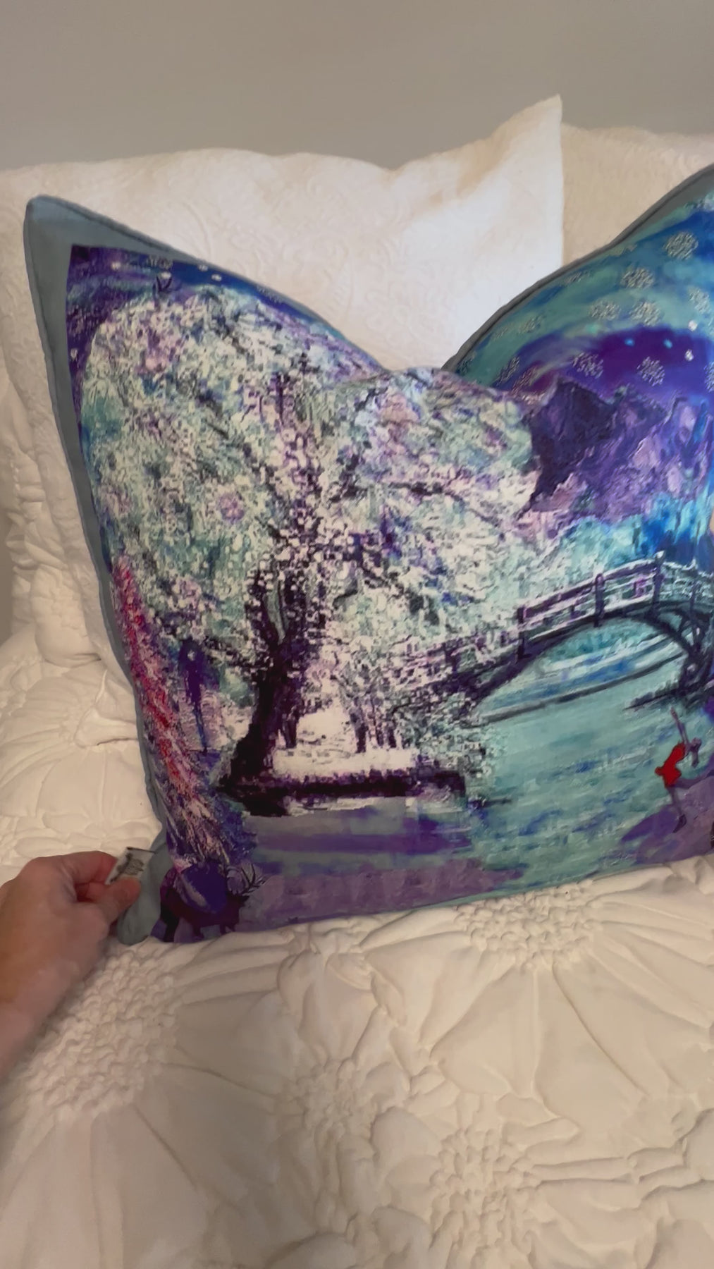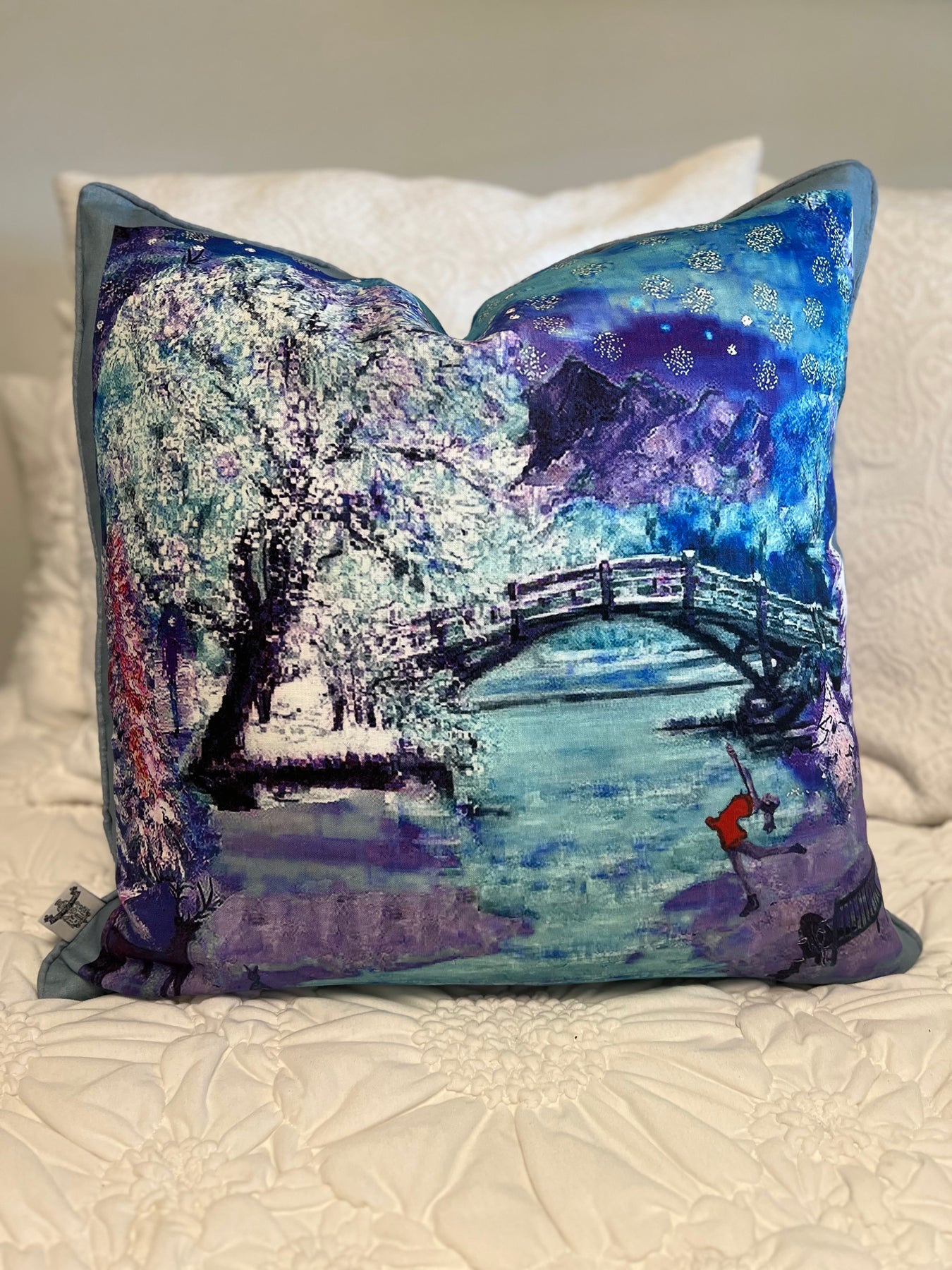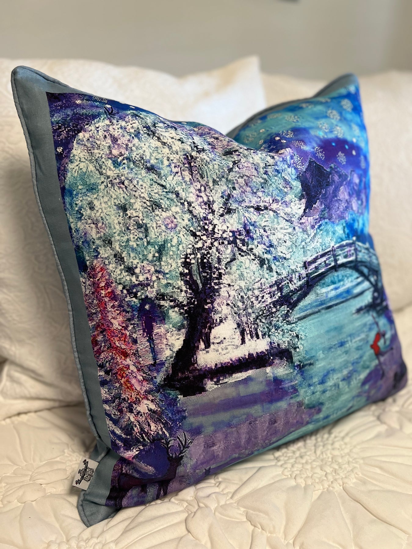D-187 A WINTER WONDERLAND - Large Luxury Hand Painted Organic Linen Sham, 22" x 22"