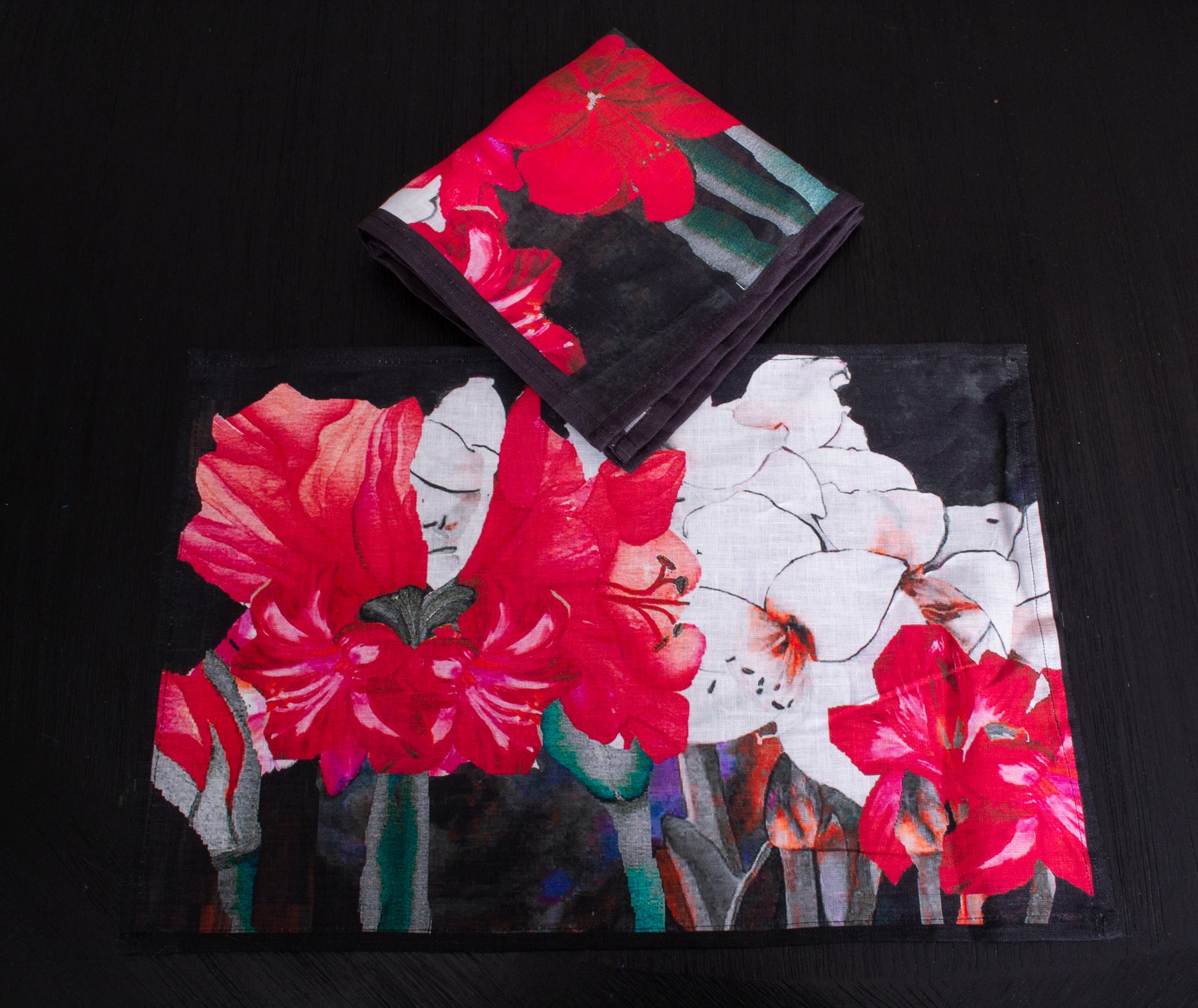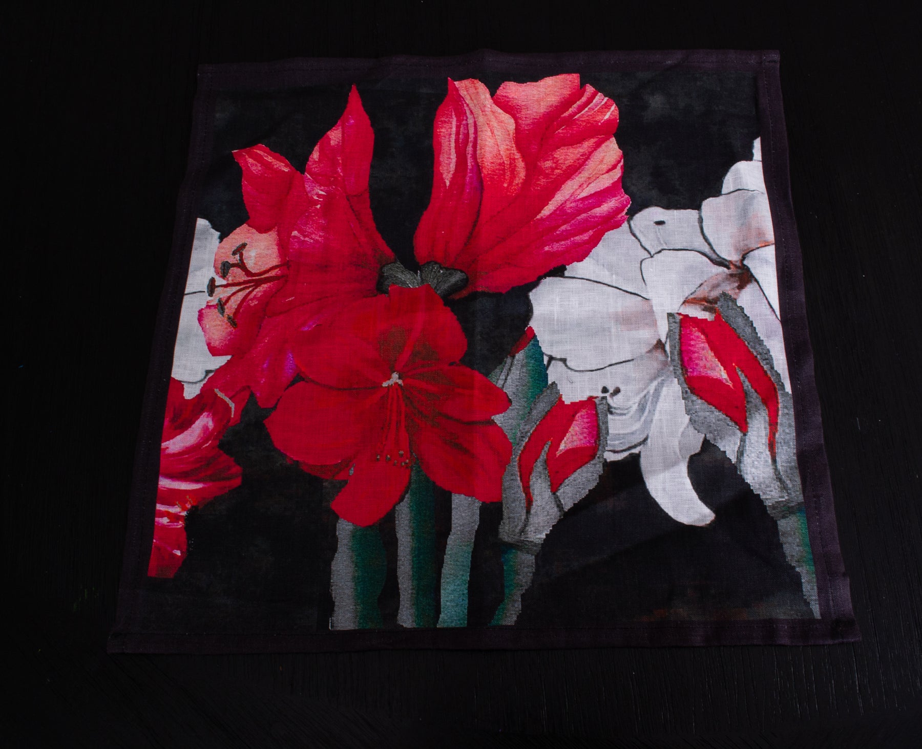 D-192 AMARYLLIS BLOOM - Organic Linen Napkin 16" x 16"