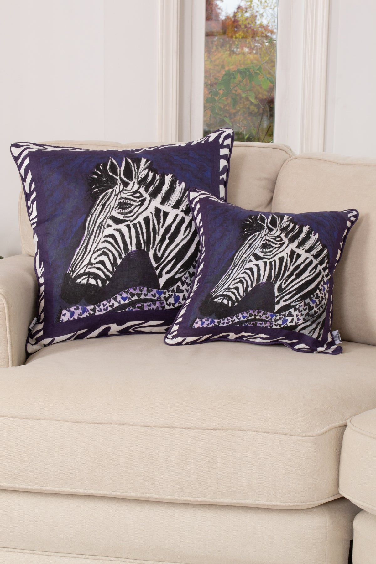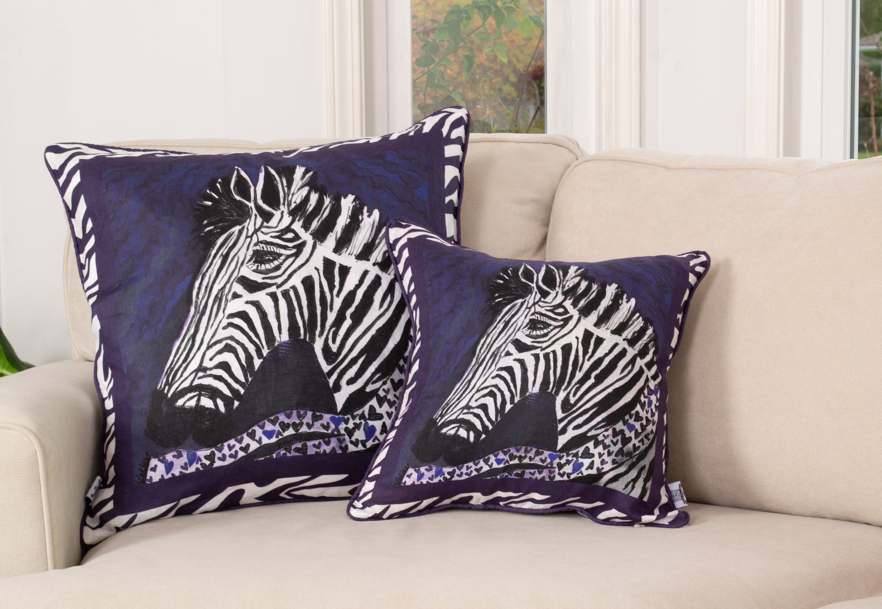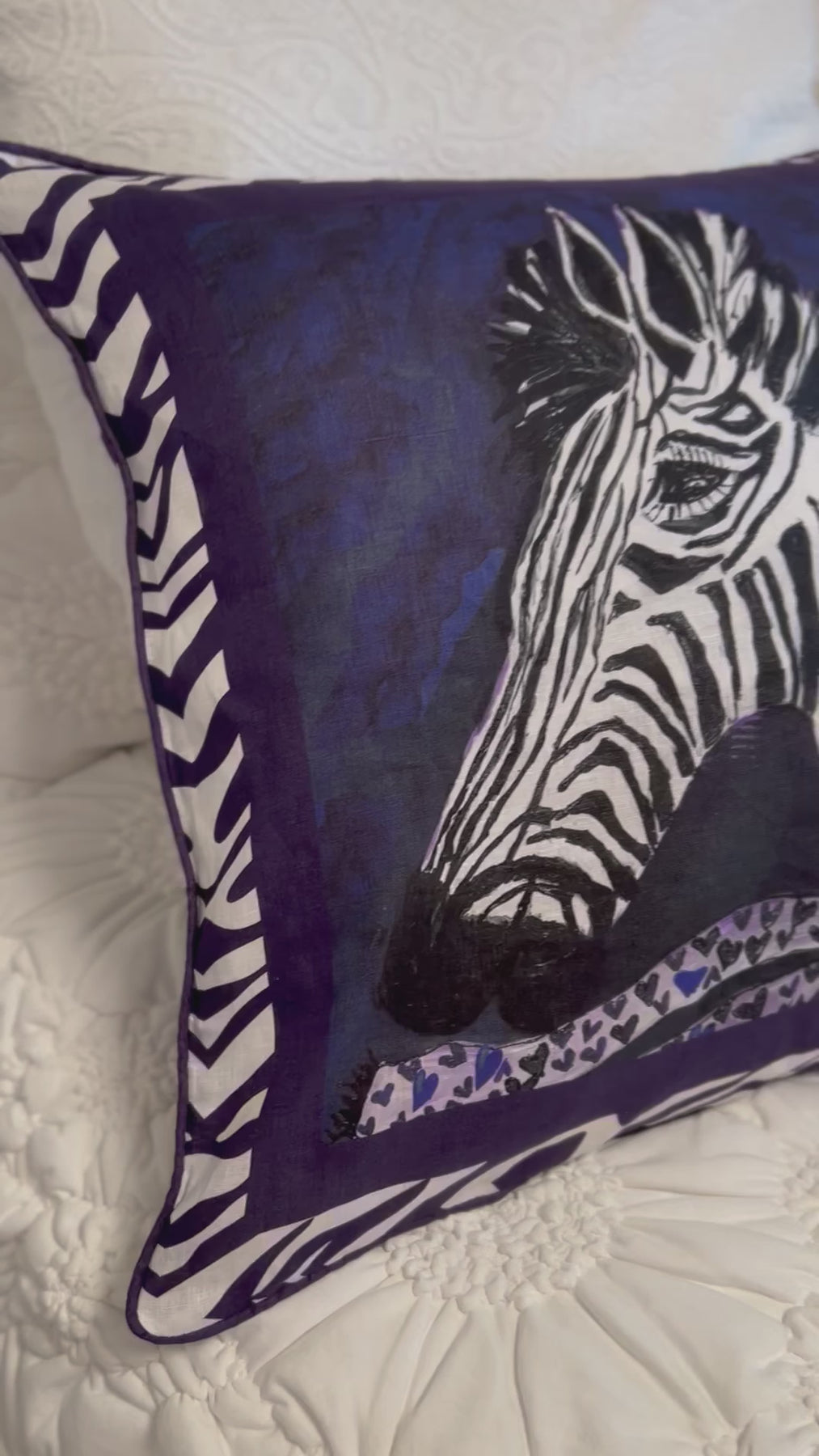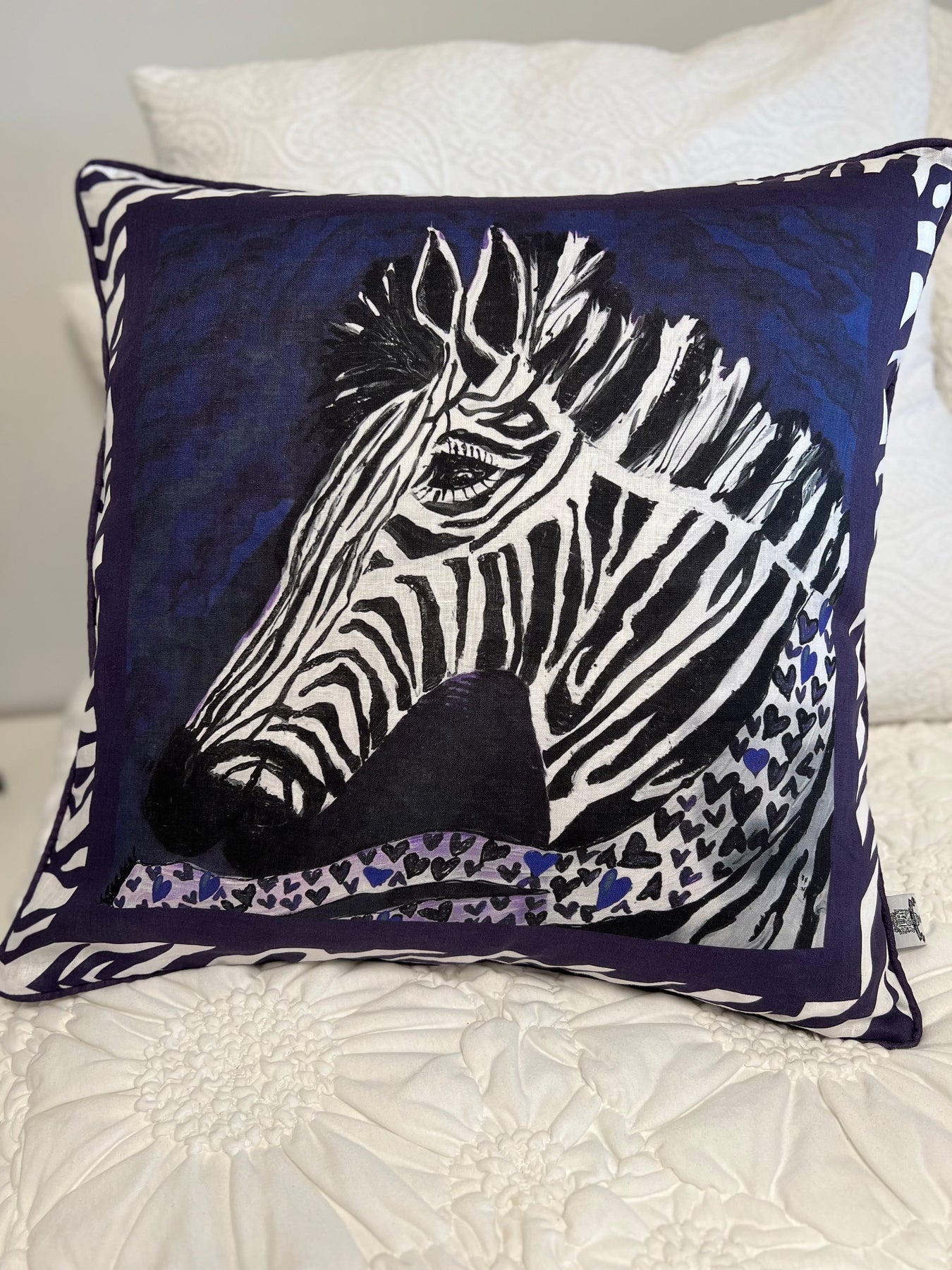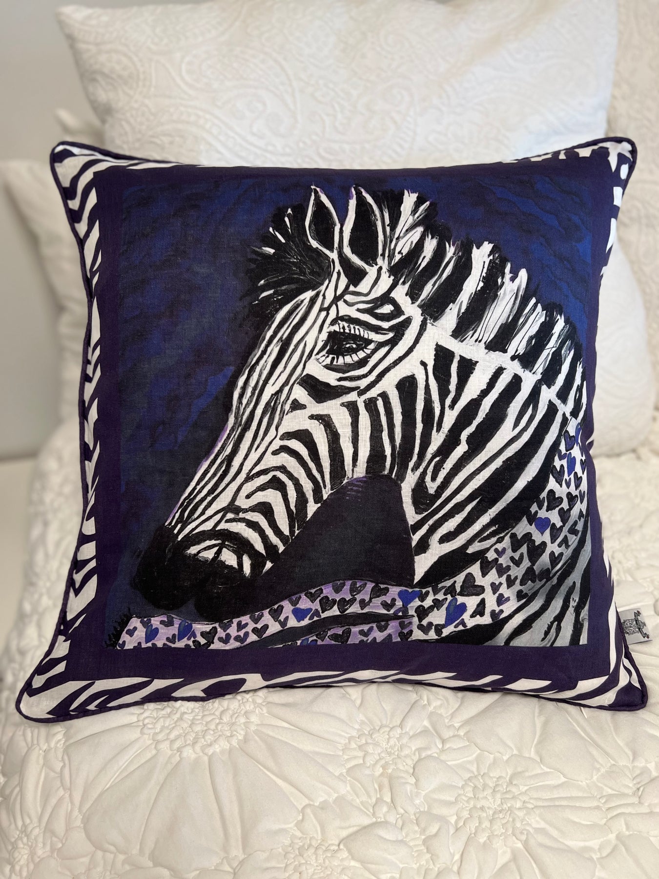 D-373 HEALING STRIPES - BLUE ZEBRA - Large Luxury Organic Linen Sham , 22" x 22"