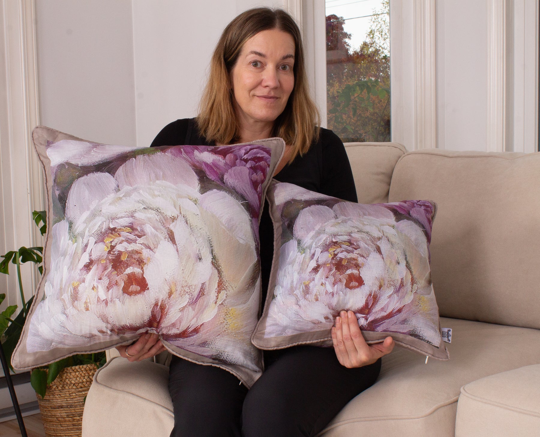 D-454 PLUNGE INTO A PEONY PILLOW - Small Luxury Organic Linen Sham, 16" x 16"