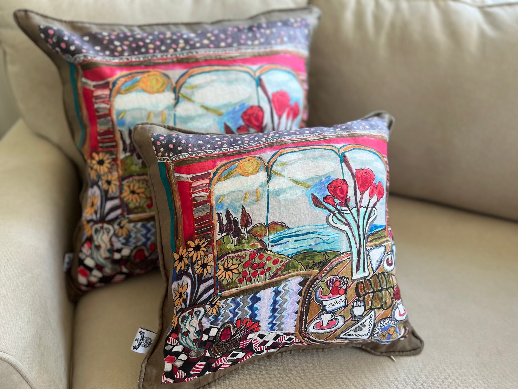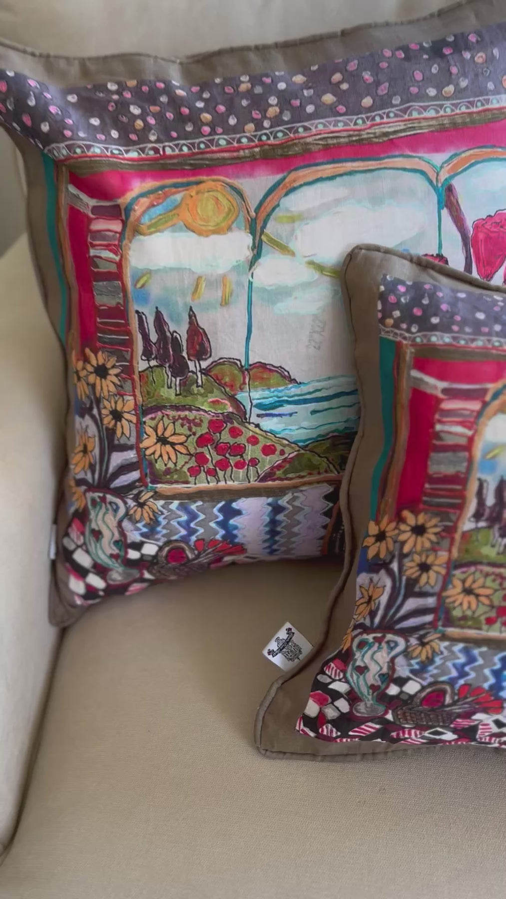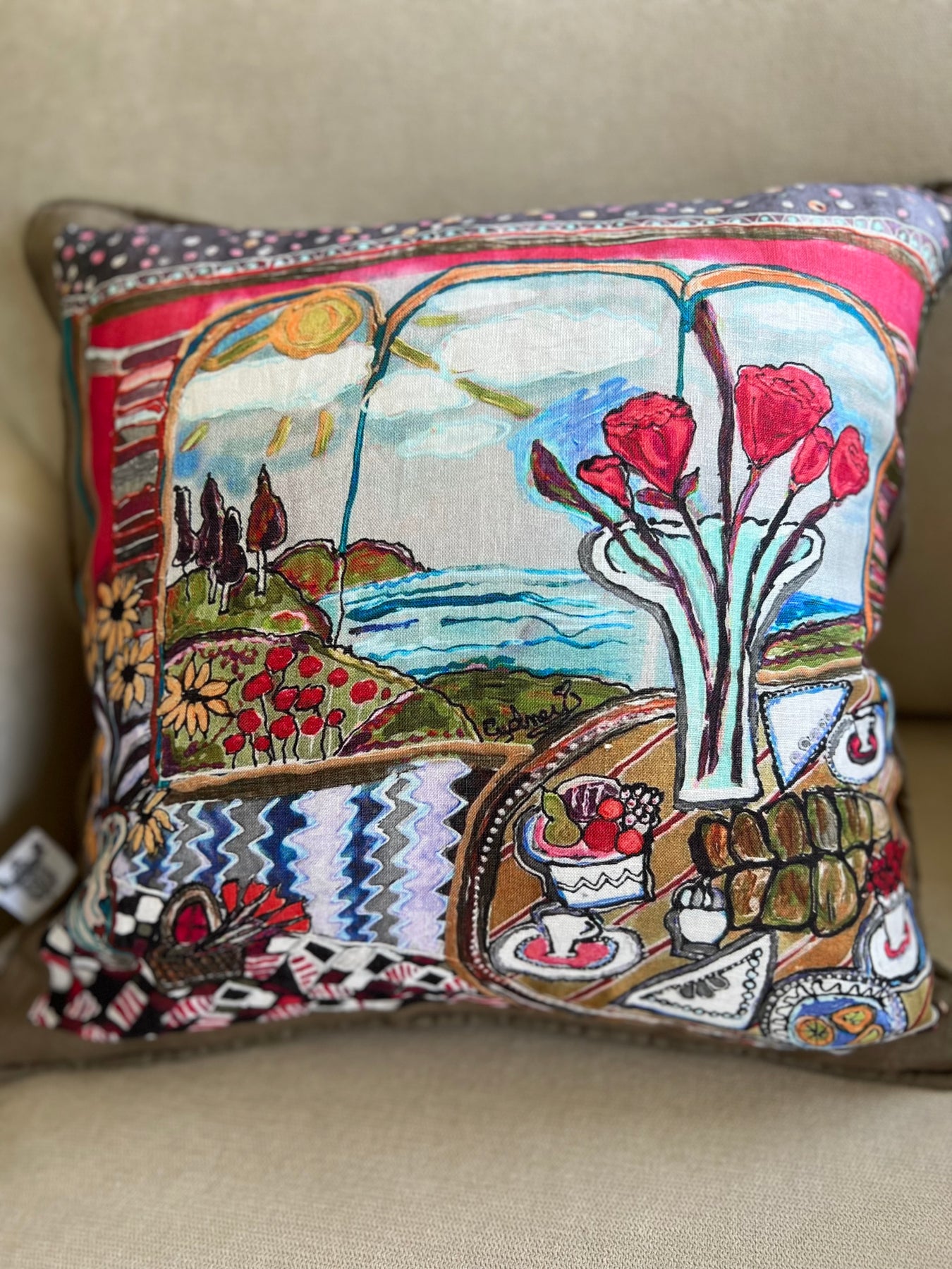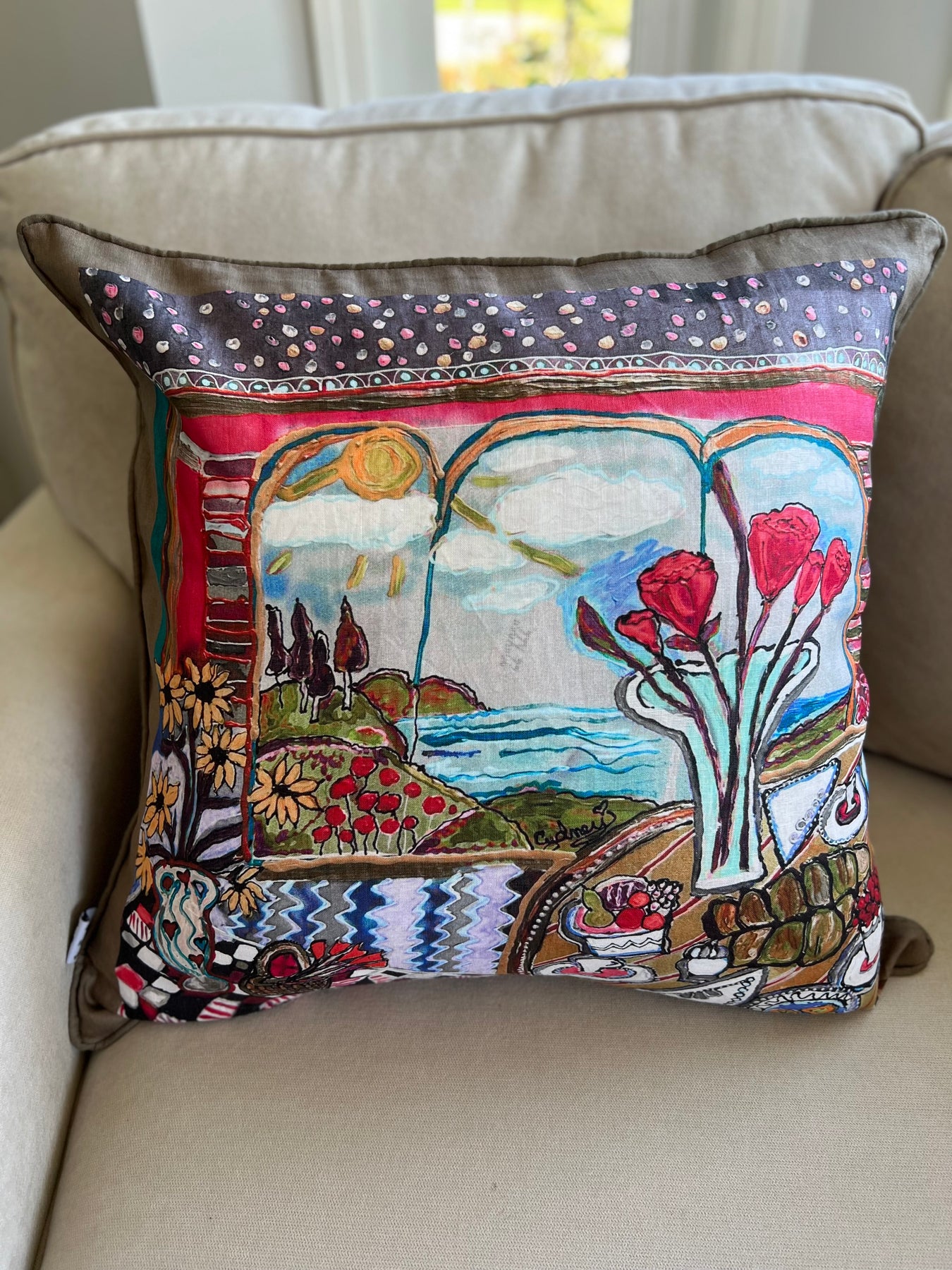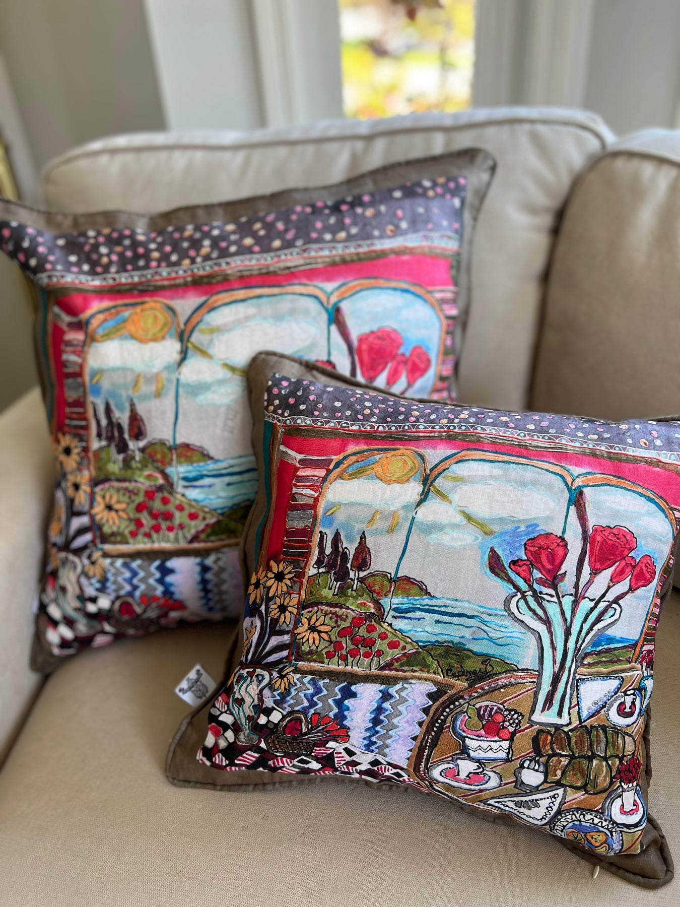 D-598 COME TO THE TABLE MUTED BROWNS-Large Luxury Organic Linen Sham, 22" x 22"