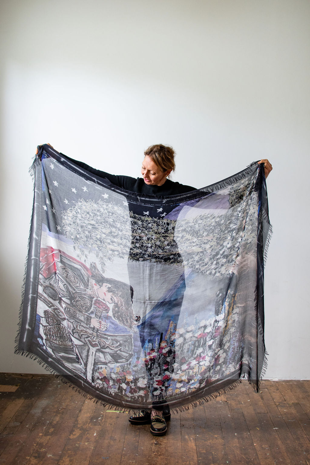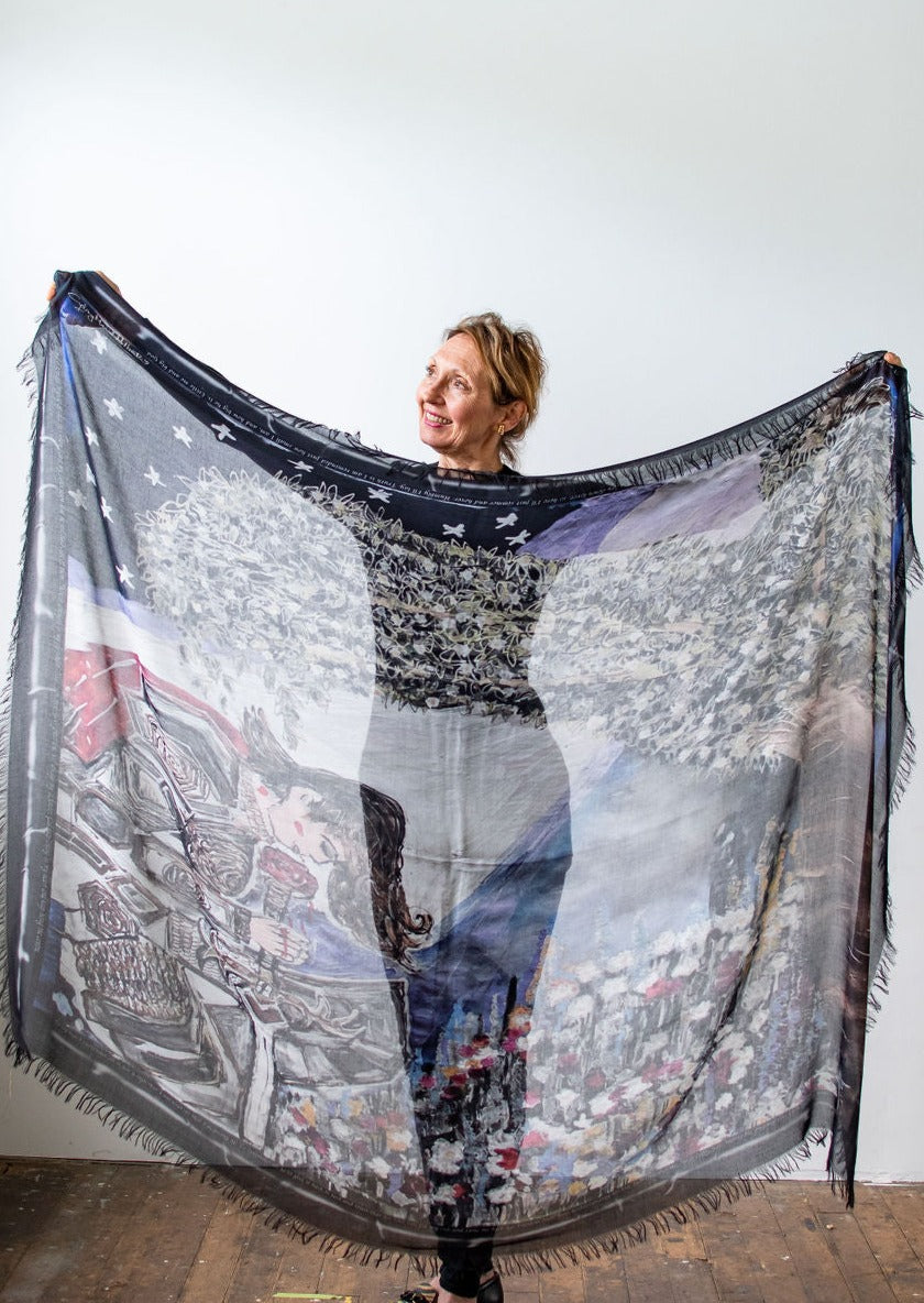 Luxury hand painted forever silk shawl by Cydney
