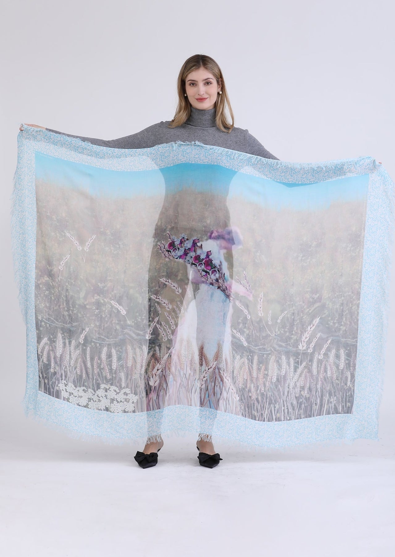 • Mammoth in size; may be styled in numerous ways or worn as a love wrap