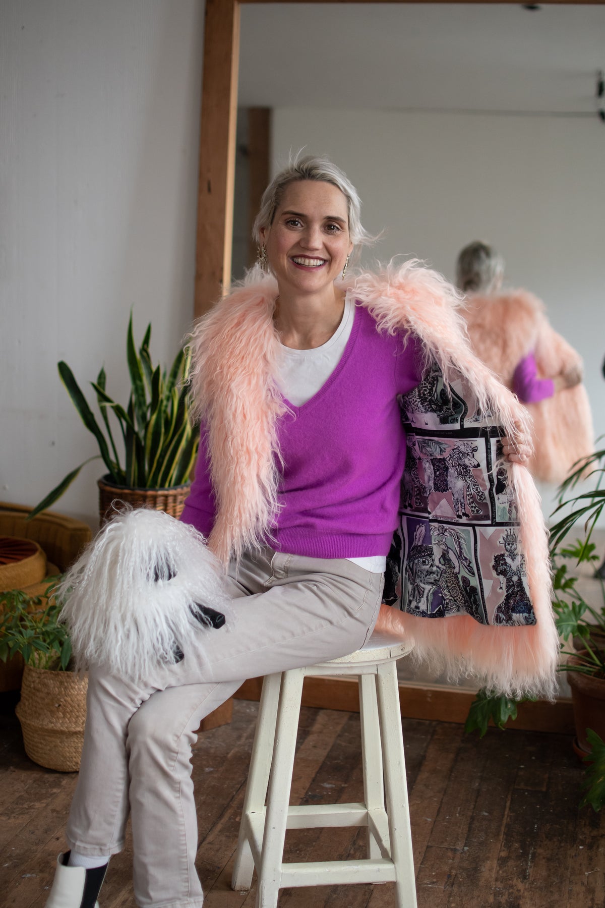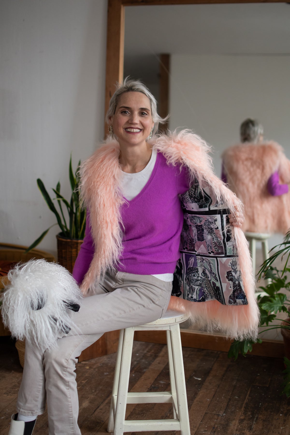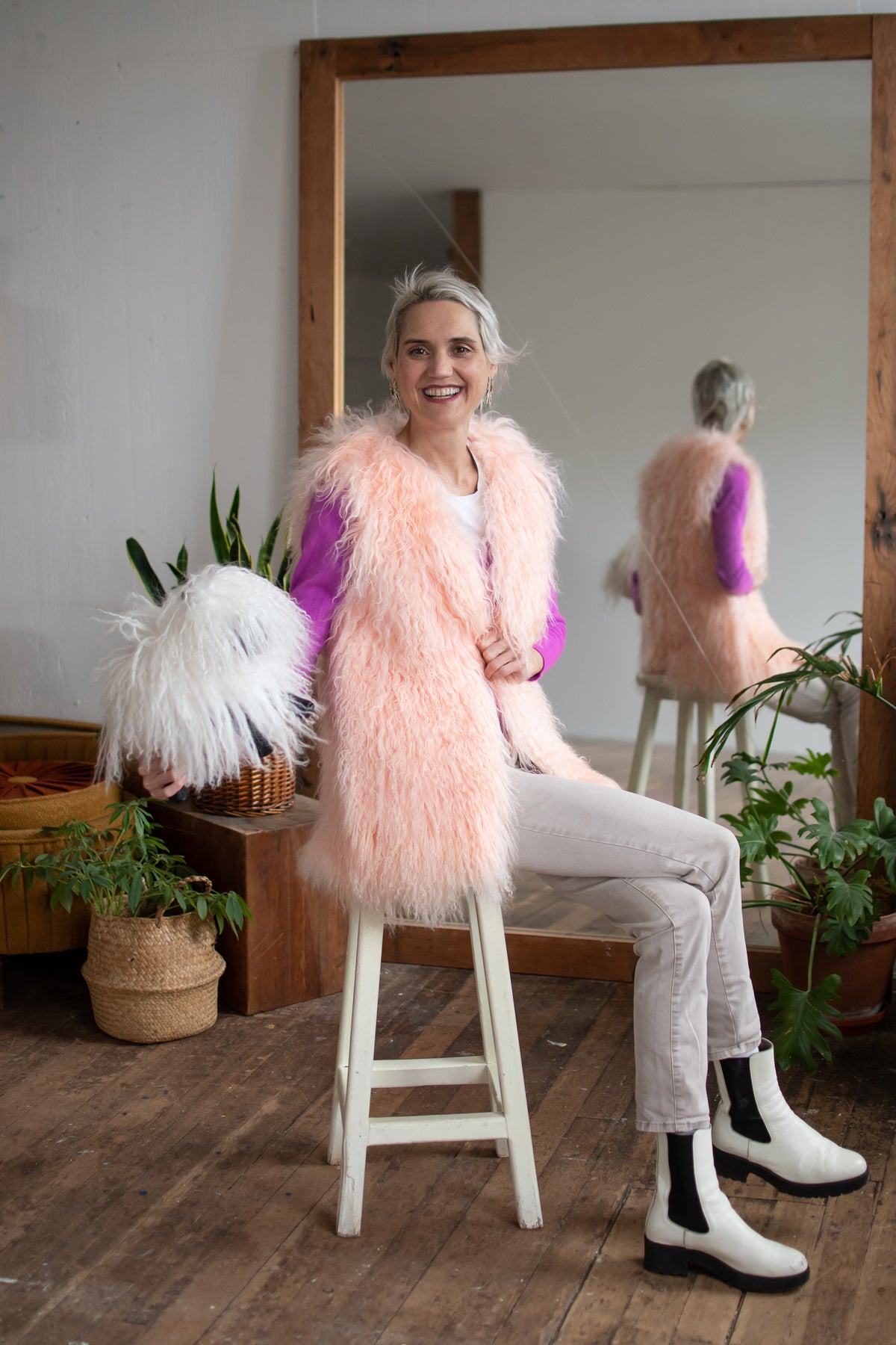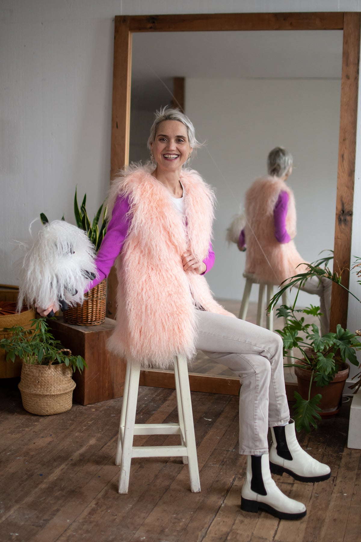 MONGOLIAN SHEEPS WOOL VEST SIZE MEDIUM LONG PINK