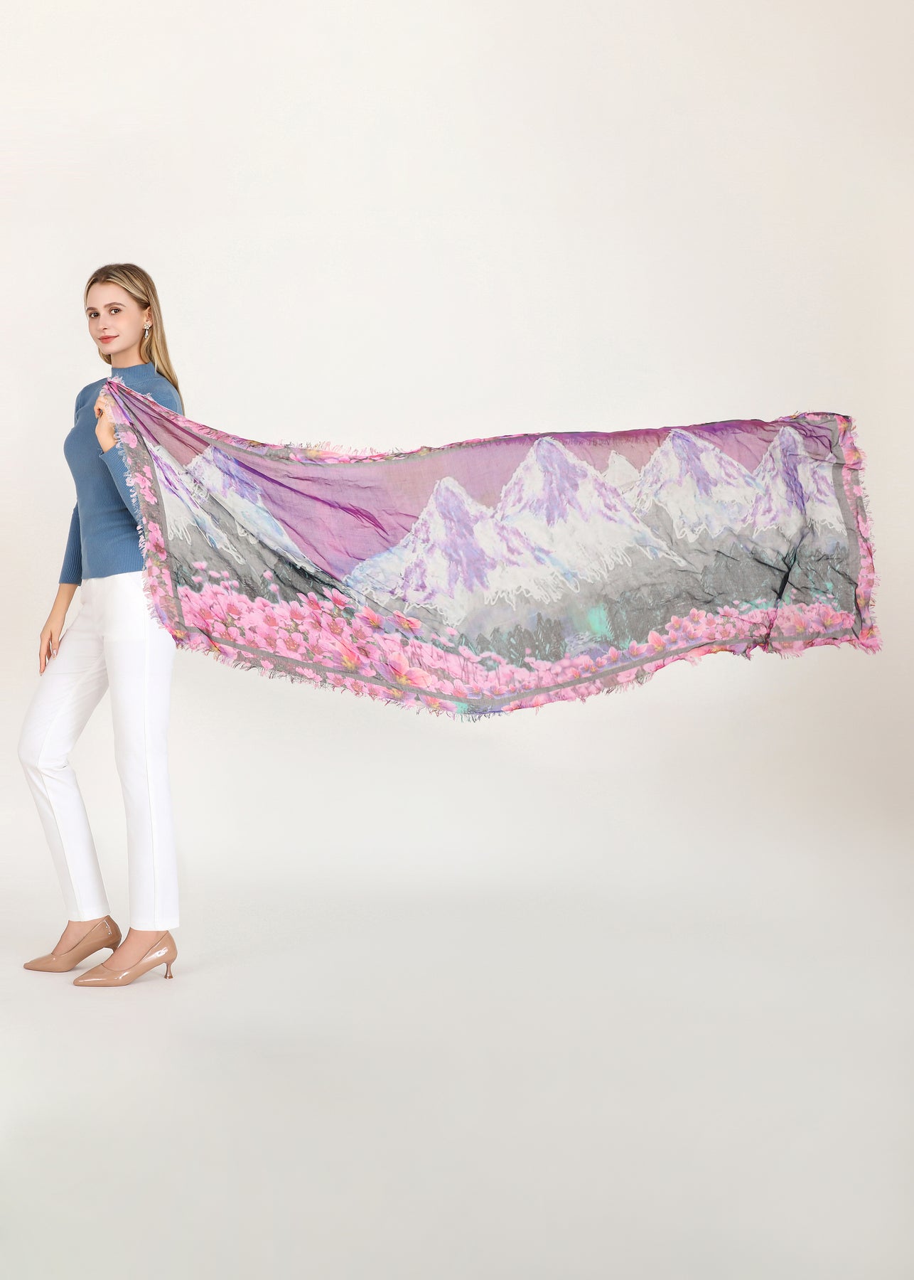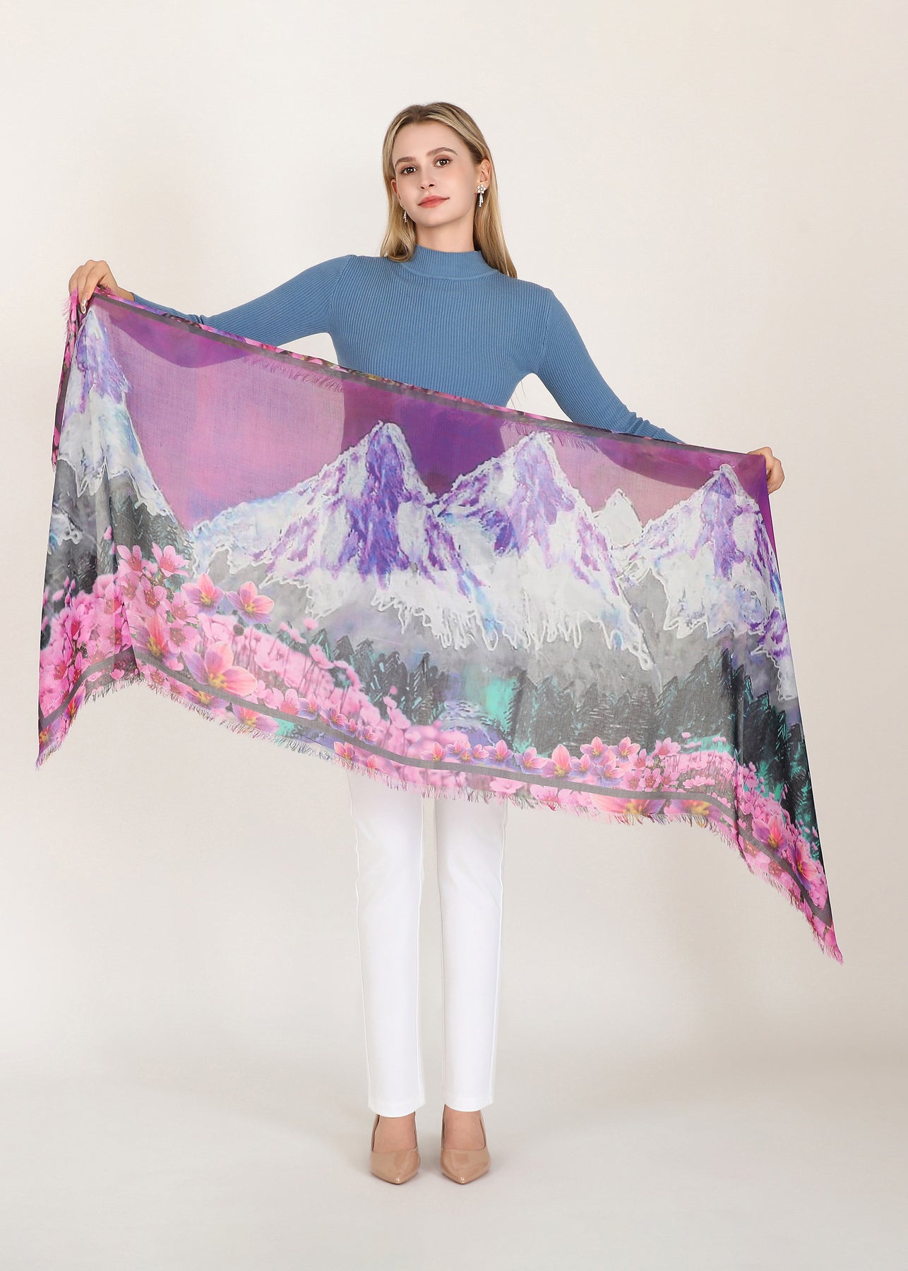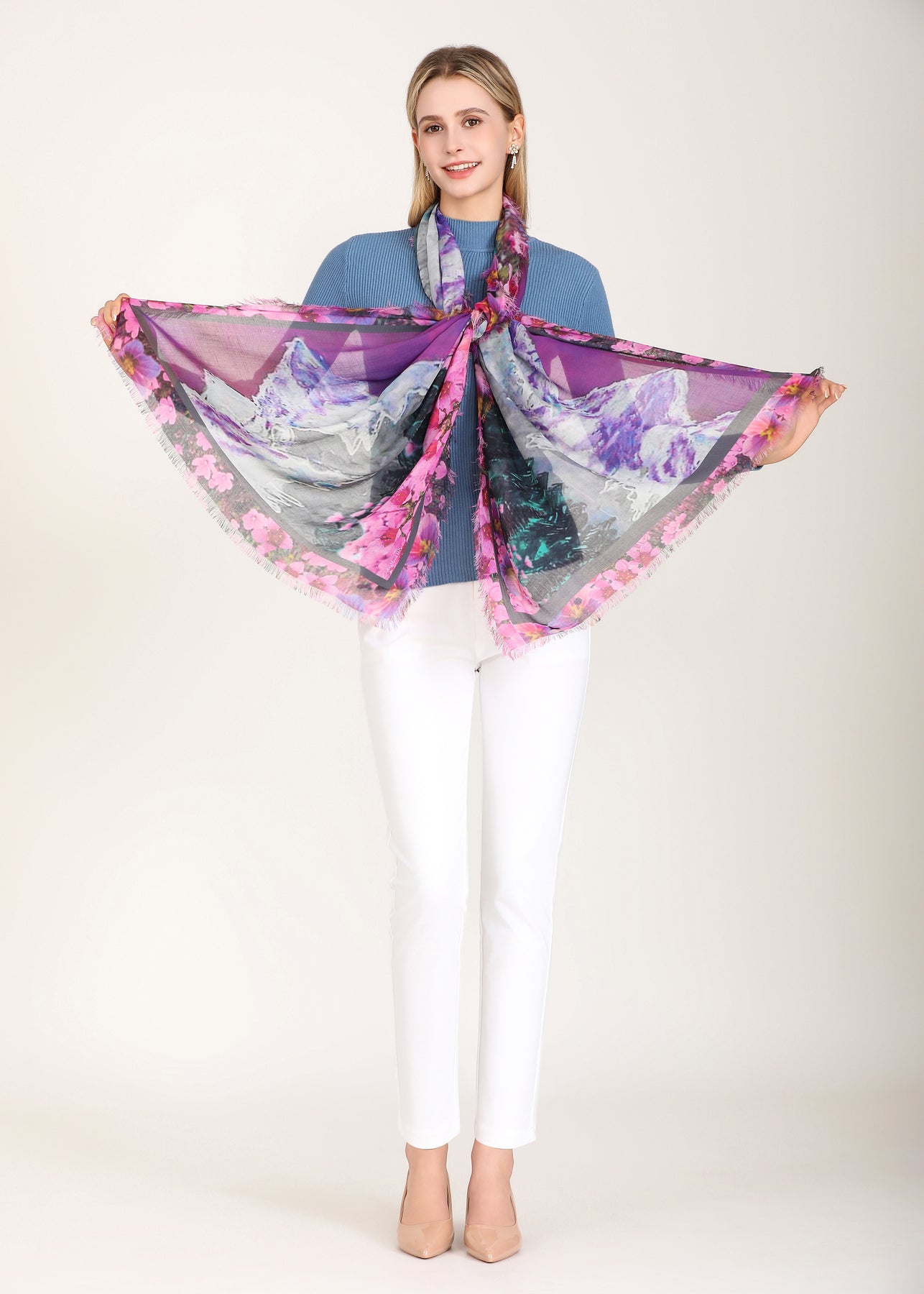 D-829OSM OBLONG SILK MODAL PROVINCIAL FLOWER OF NUNAVUT – PURPLE SAXIFRAGE