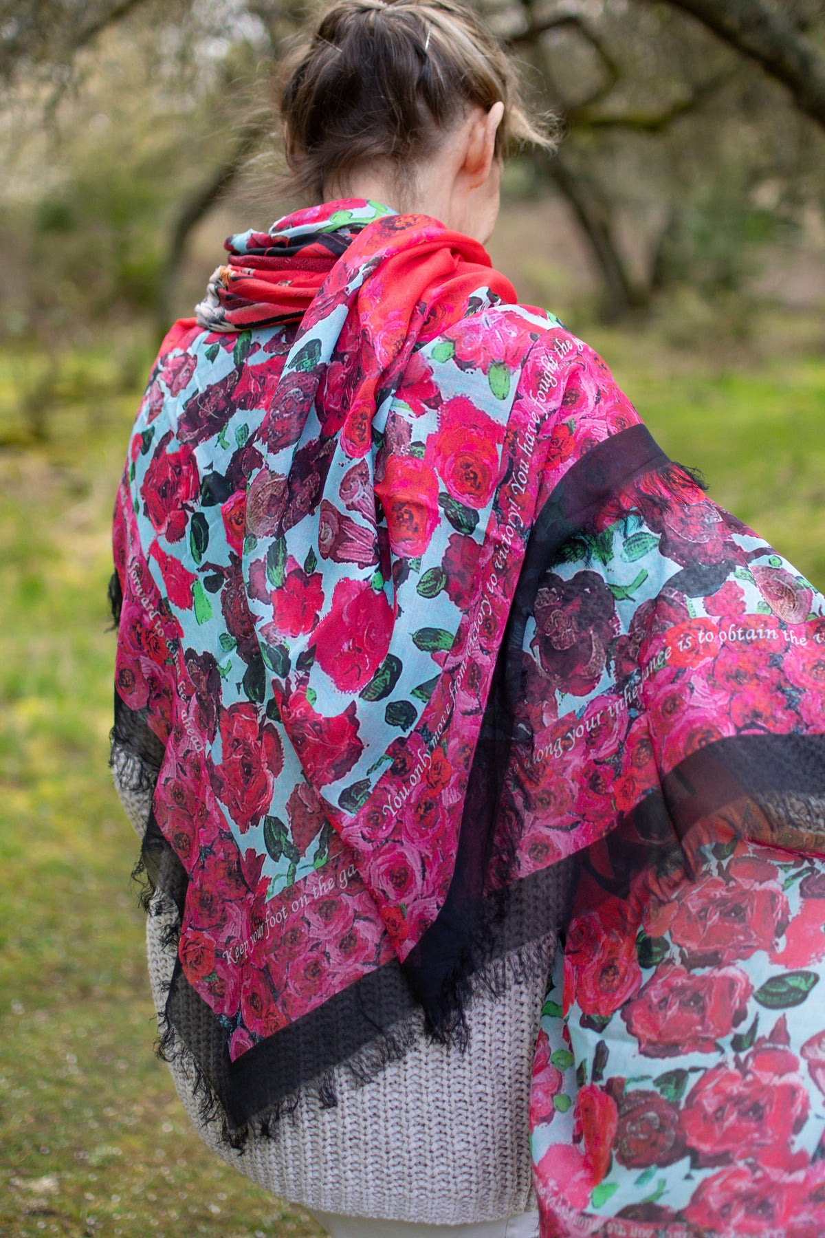 Luxury hand painted forever silk shawl: