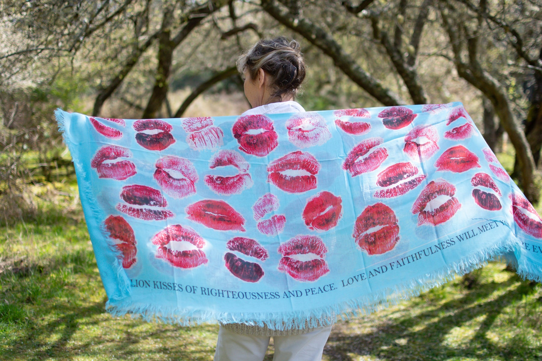 This is a silk textile of one million kisses. Each kiss represents the love and faithfulness you express simply by living your life. Righteousness and peace kiss each other each and every day because you have things content in your heart. You are just as happy with little as you are with much because you have a heart set and grounded in the right place you put all your hope in. Nothing can move you nothing can shake you. You are a faithful steward and count these kisses as the millions of thank you for your obedience as one who always chooses love before fame, love before business, love before the business of life. You are a faithful lover, and because of this your life will only yield its good. Righteousness will always pave its way before you faithful one. Express this pure love in all that you do and all that you are. Heaven continues to blow its faithful kisses back at you!