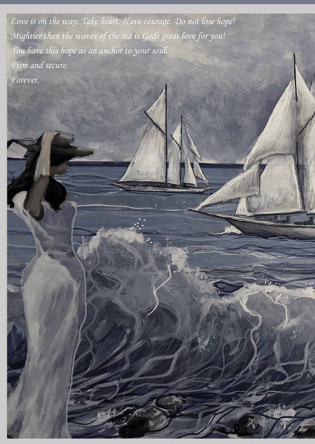 Oh, the wait is sometimes hard but look to the skies and see the surprise, the sun is shining upon you! Love is on the way, take heart, have courage, do not lose hope! Mightier than the waves of the sea is Gods great love for you! You have this hope as an anchor for the soul.